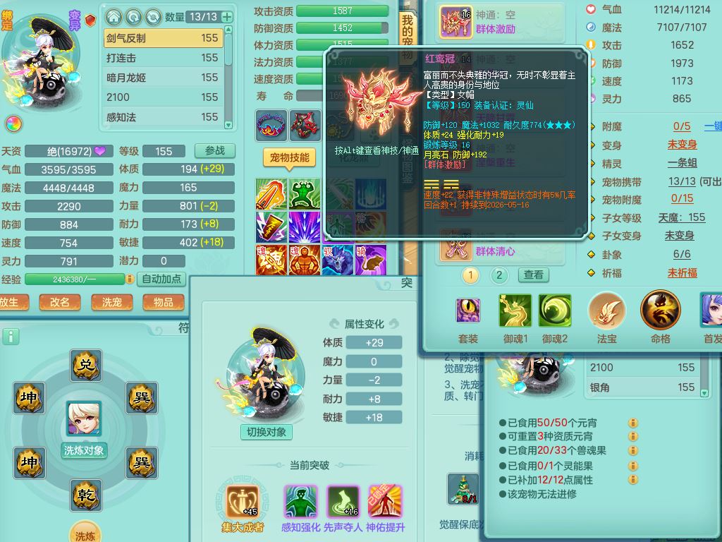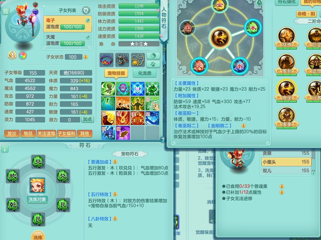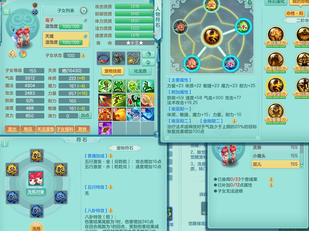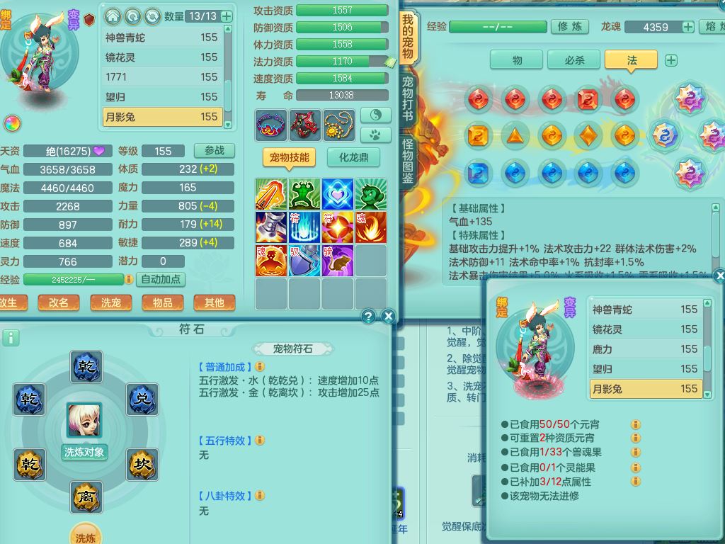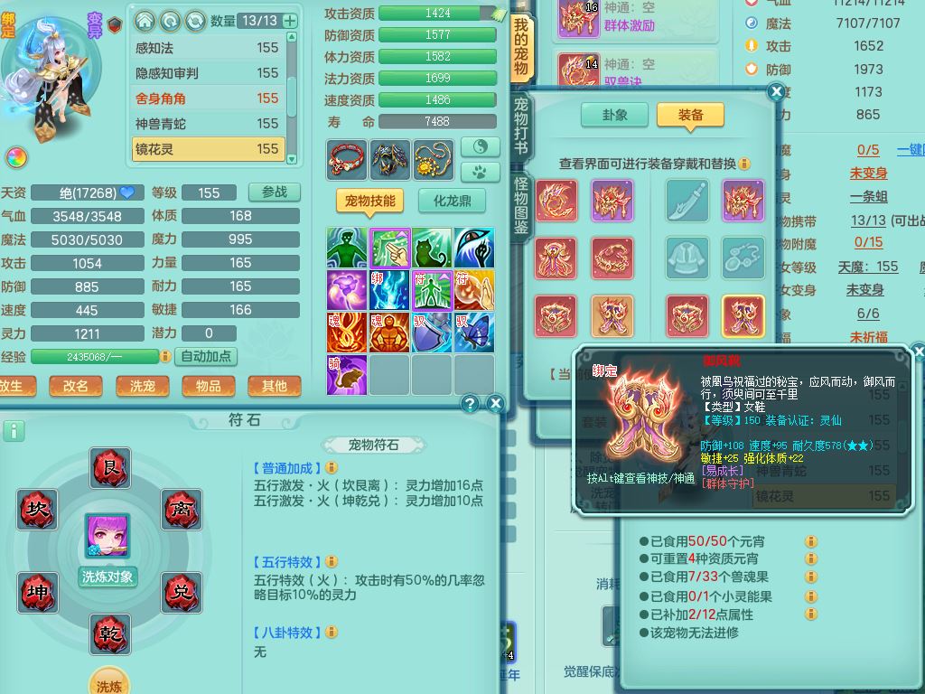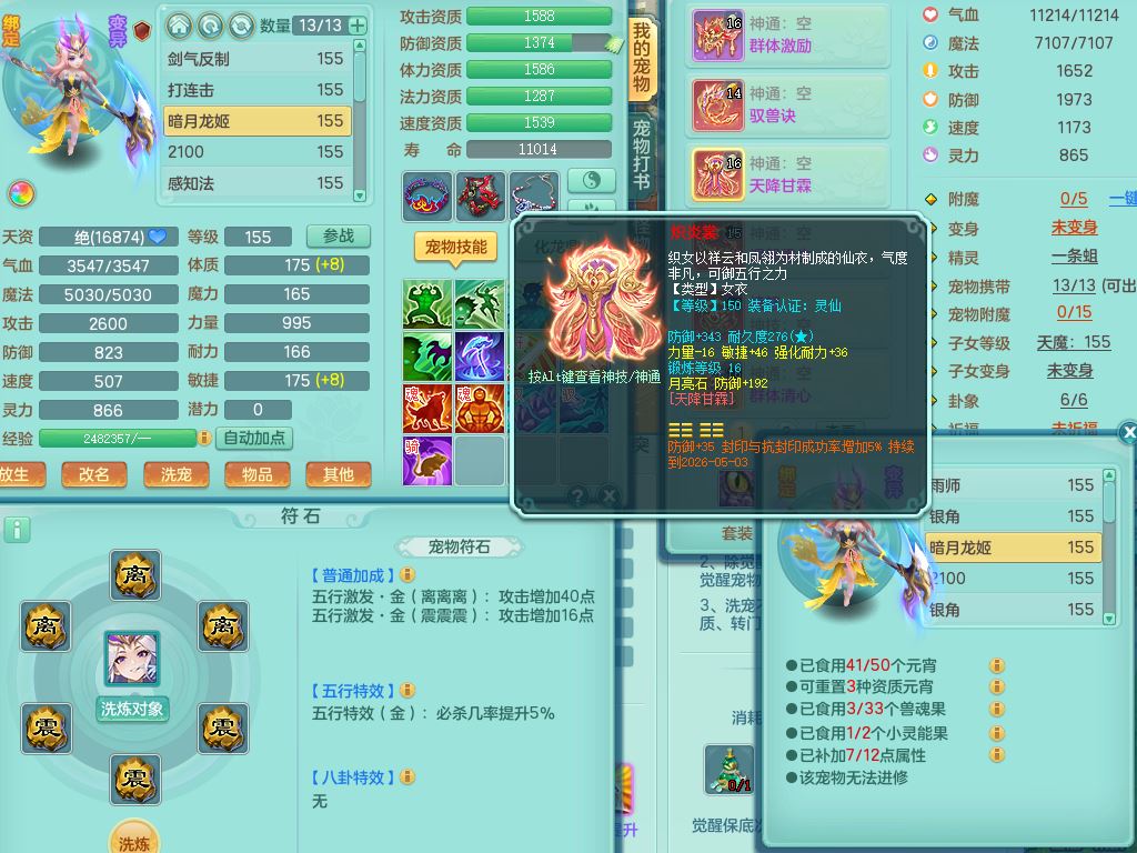 tx9770天下无双159女灵月精灵舞,满级共鸣,1内丹青蛇1特殊(舍身)2觉醒2个4字,2镜花灵(1胚子)1龙姬,愤怒5特,鼎4.5,20天月卡,永久头饰,带150奶粉盘丝