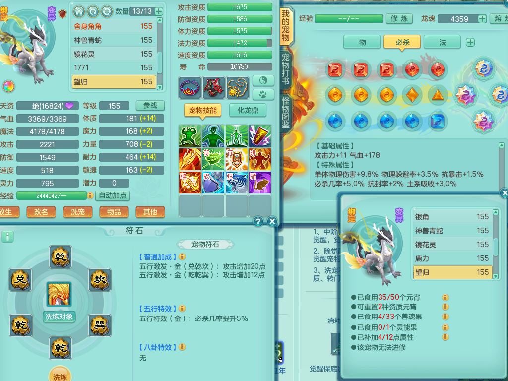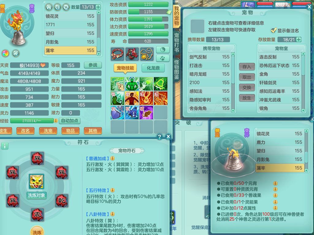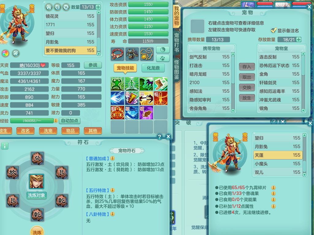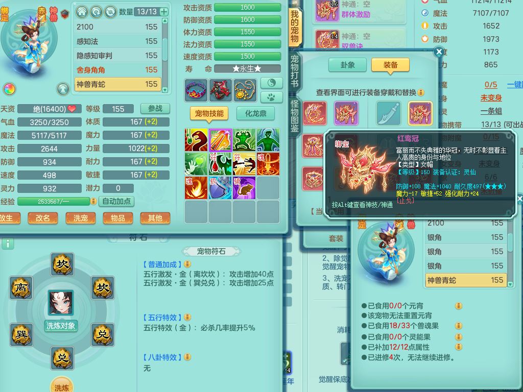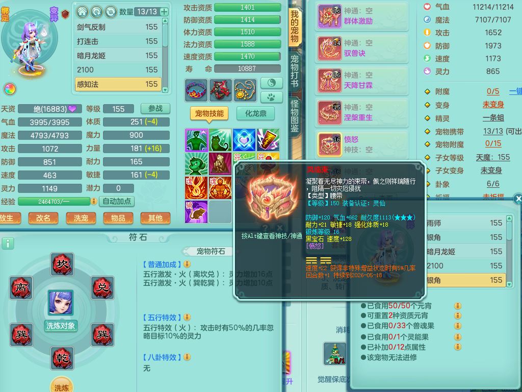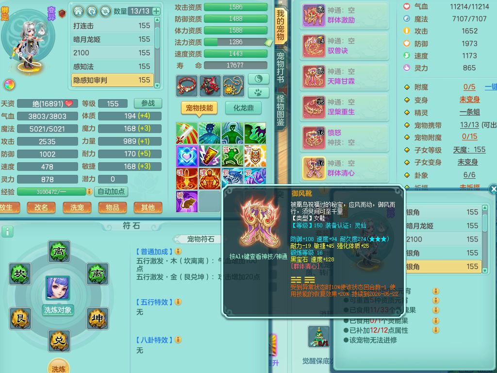 tx9770天下无双159女灵月精灵舞,满级共鸣,1内丹青蛇1特殊(舍身)2觉醒2个4字,2镜花灵(1胚子)1龙姬,愤怒5特,鼎4.5,20天月卡,永久头饰,带150奶粉盘丝