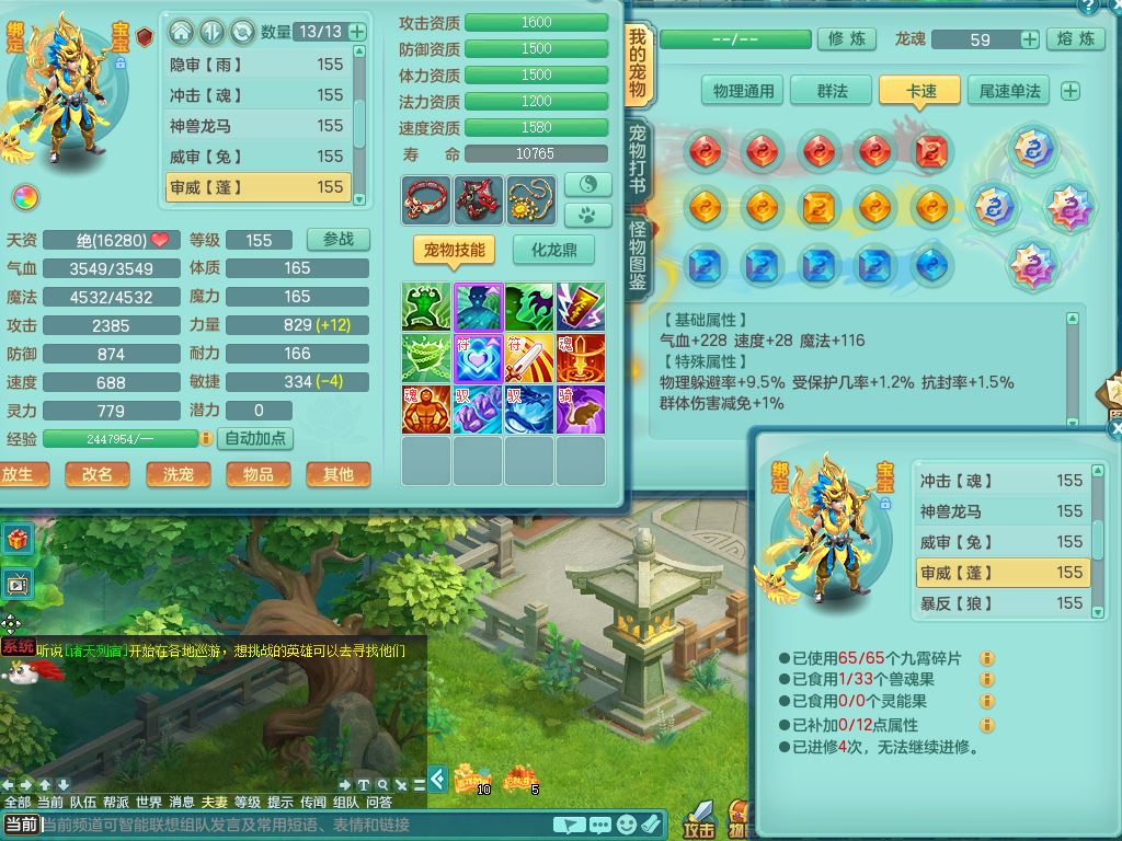 24-9781,2024区159男万兽【暴龙洪荒】1内丹龙马3镜花灵,5只满果子4觉醒4个6字,8红双破甲星辰之拥,狂暴心神武器,破甲崩山鞋,鼎4.5+70,104天月卡,精灵皮肤,2只双人坐骑,带154佛门精灵舞,单加回春武器,单加Y流云鞋,3镜花灵