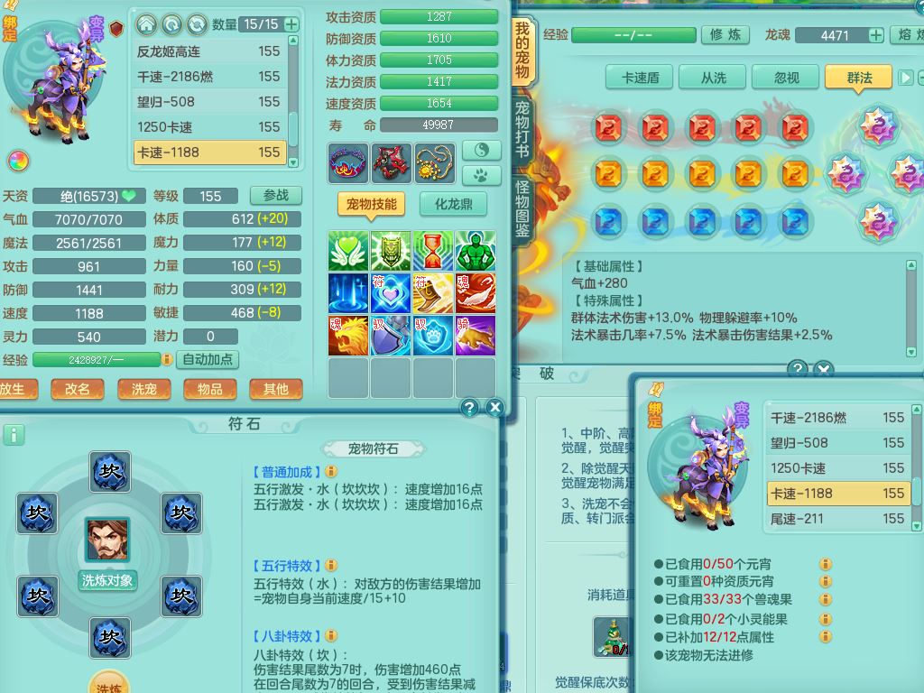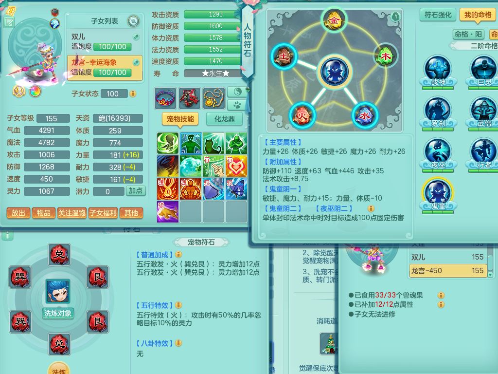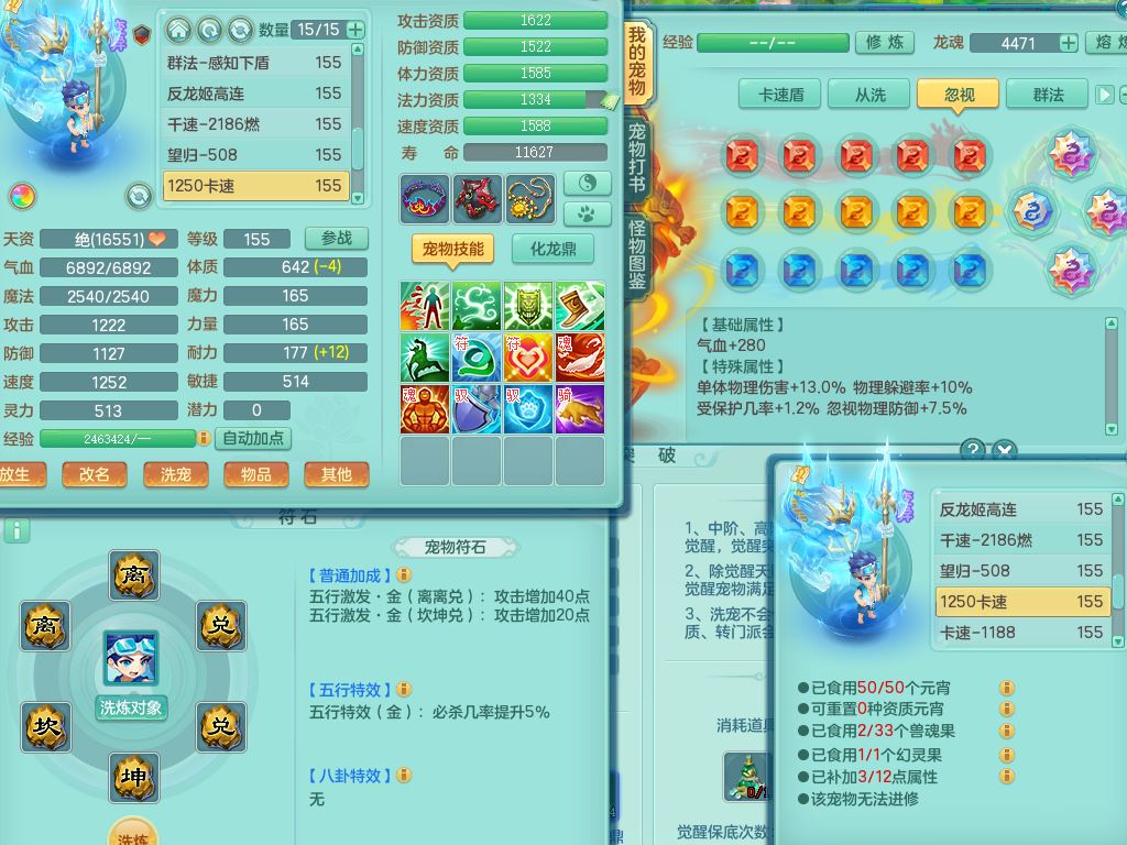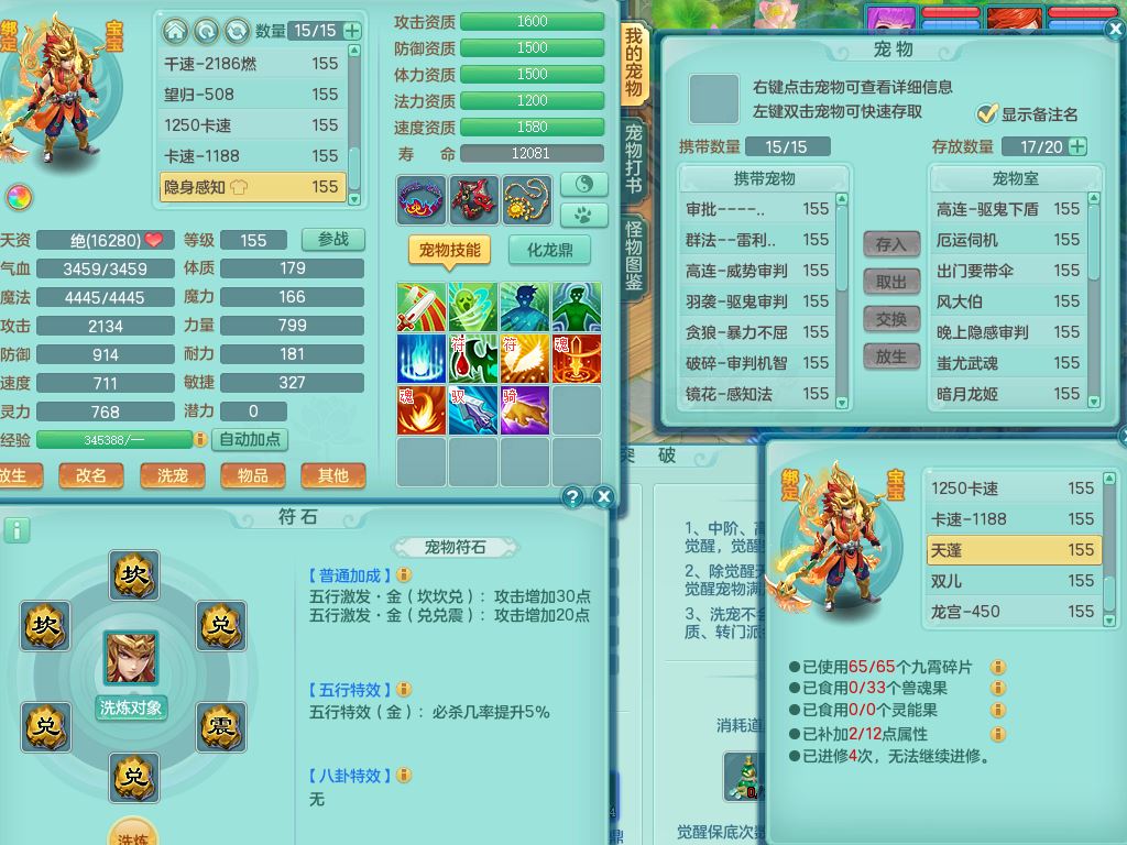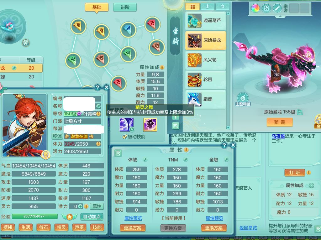 jt9786九天揽月159男方寸【潜龙号+暴龙逍客+西瓜冰】精灵舞,2龙(换)1内2皮,3特殊(羽袭/烈焰/破碎兽决)13只满果子8觉醒9个纯6字,8红愤怒5特,单加Y慈航项链,单加迅捷四海鞋,鼎5.5+70+280,123天月卡,庭院154,永久外观精灵皮肤,32内丹碎片,宠排在榜,2只双人坐骑,带3个159小号