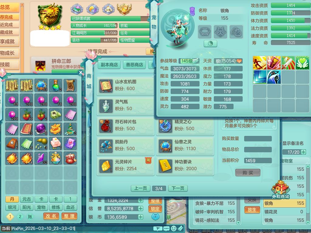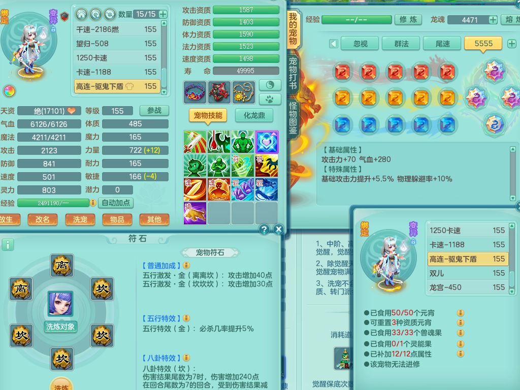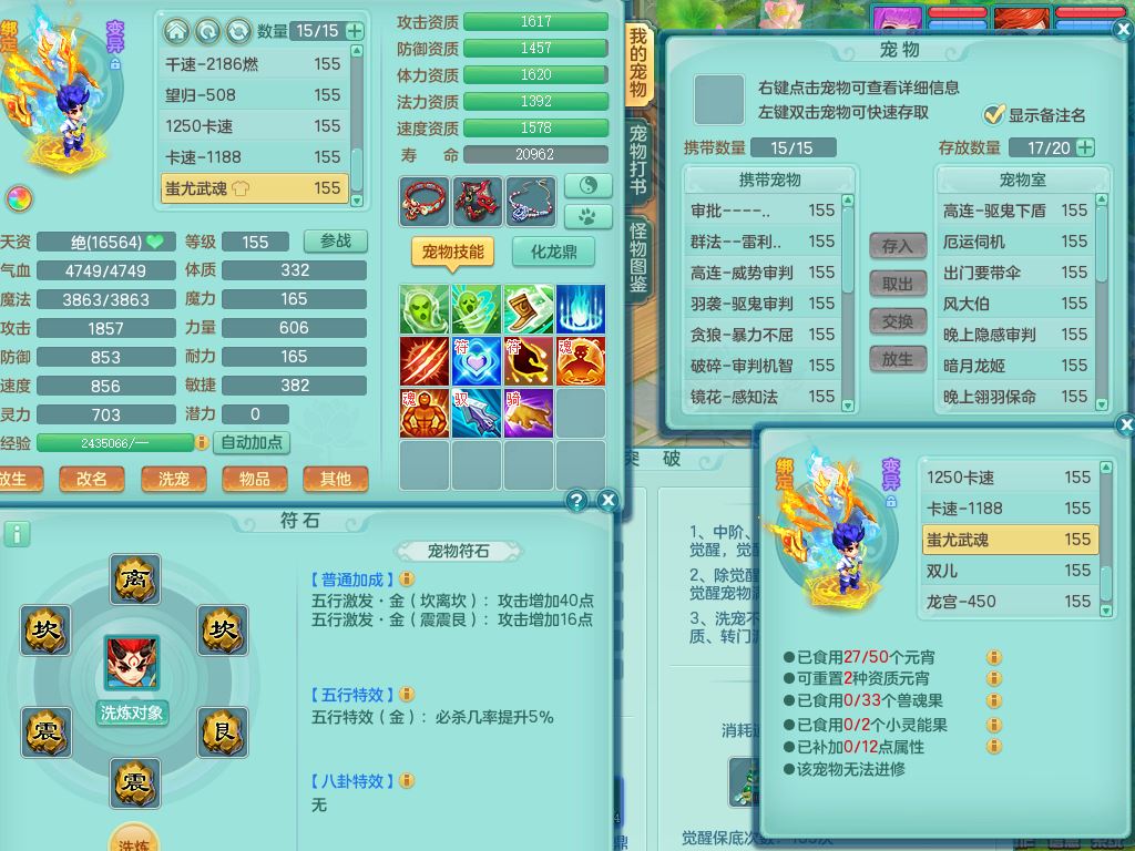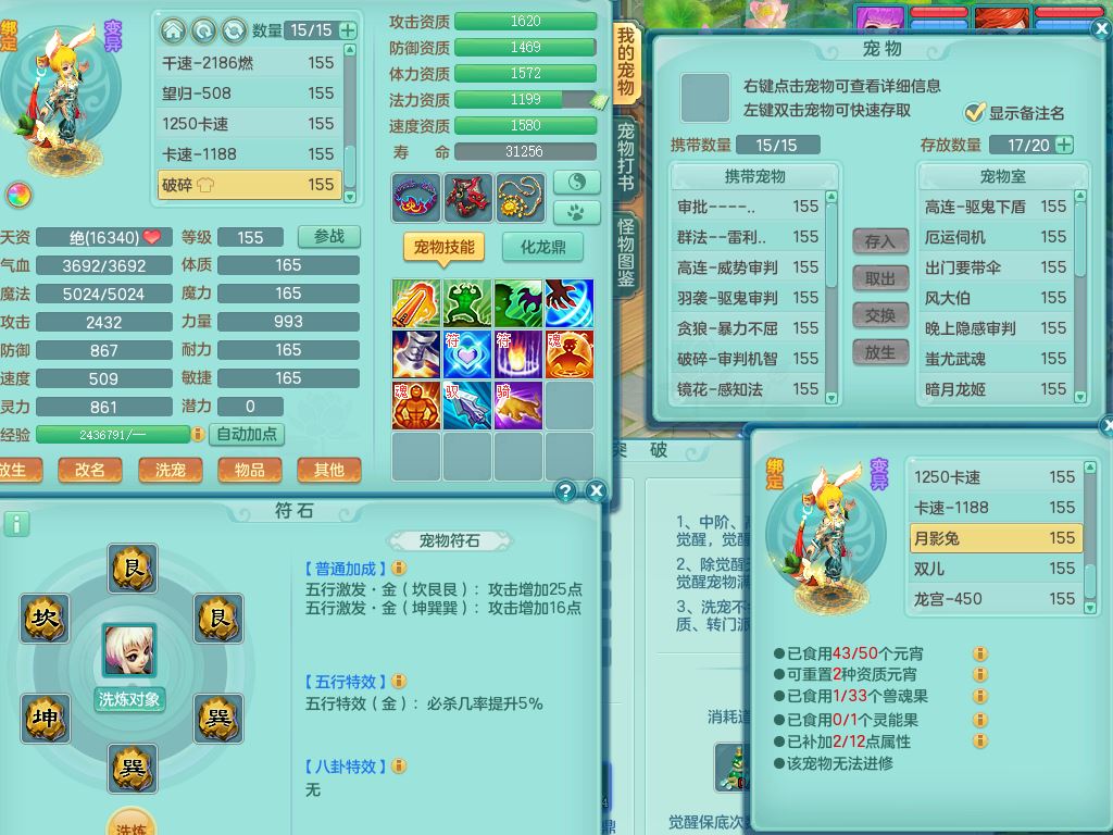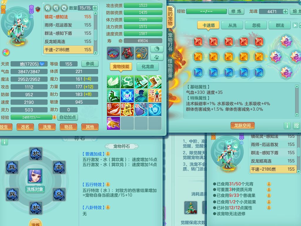 jt9786九天揽月159男方寸【潜龙号+暴龙逍客+西瓜冰】精灵舞,2龙(换)1内2皮,3特殊(羽袭/烈焰/破碎兽决)13只满果子8觉醒9个纯6字,8红愤怒5特,单加Y慈航项链,单加迅捷四海鞋,鼎5.5+70+280,123天月卡,庭院154,永久外观精灵皮肤,32内丹碎片,宠排在榜,2只双人坐骑,带3个159小号