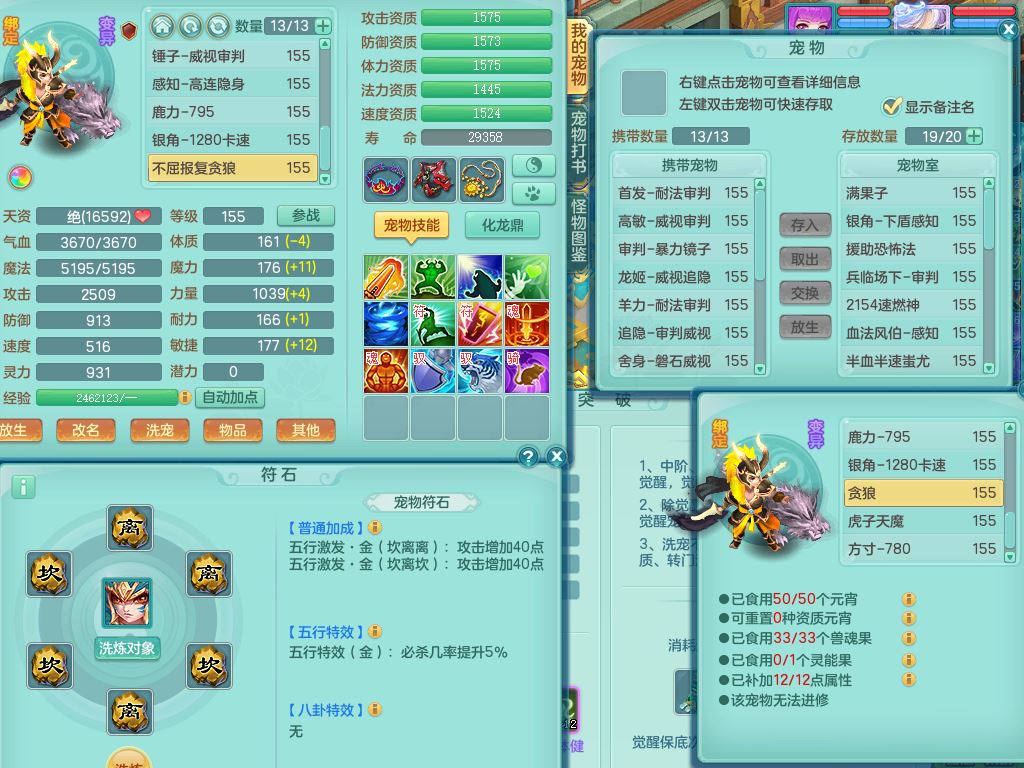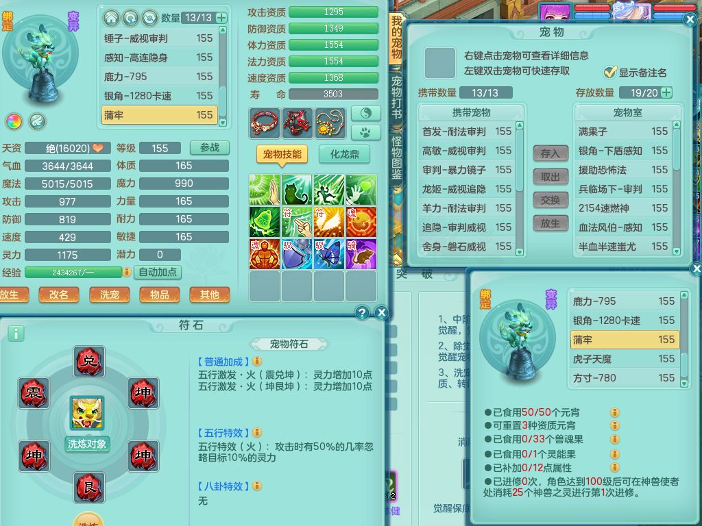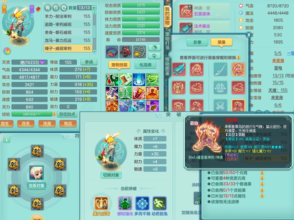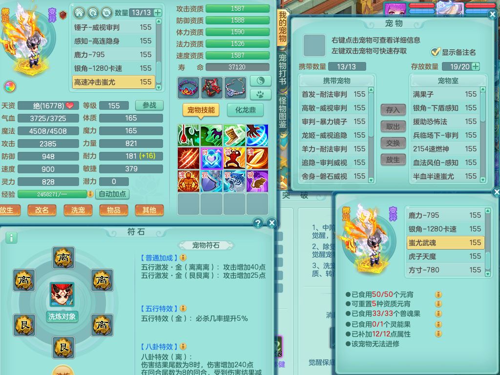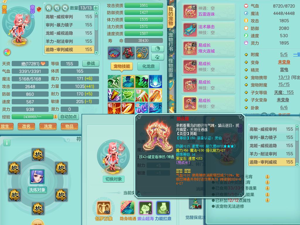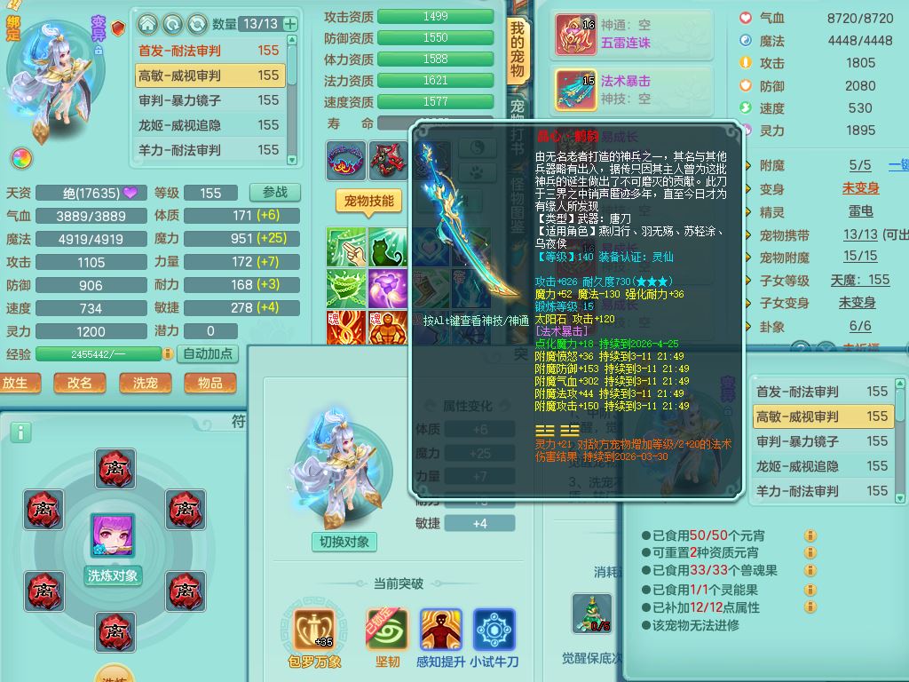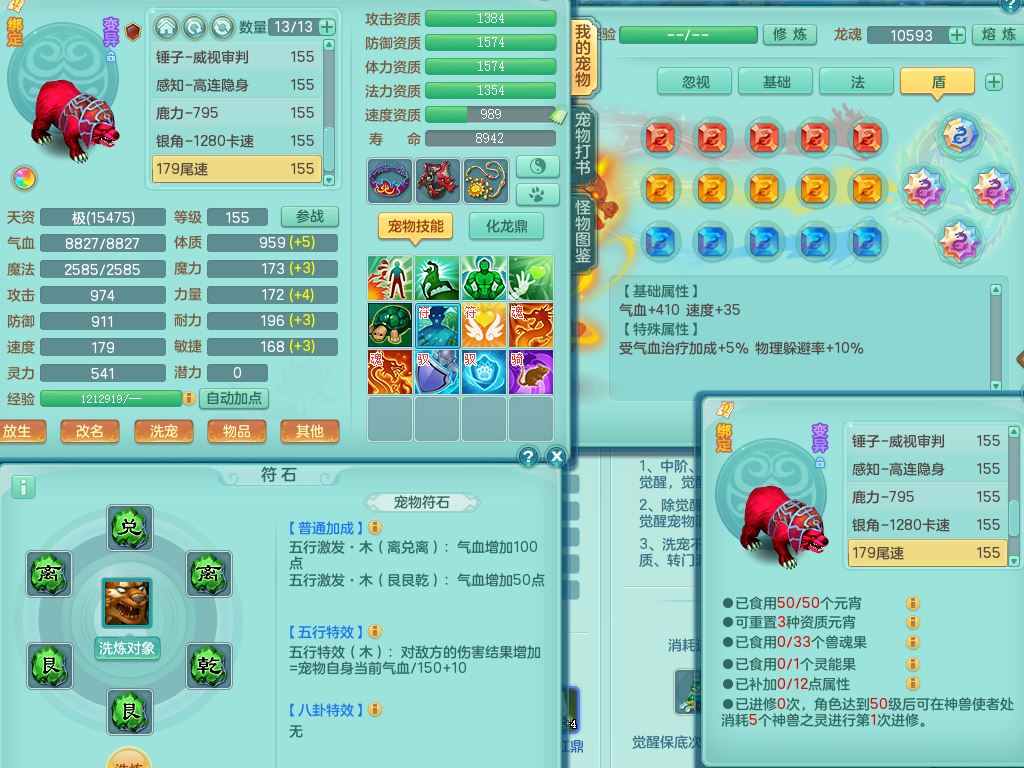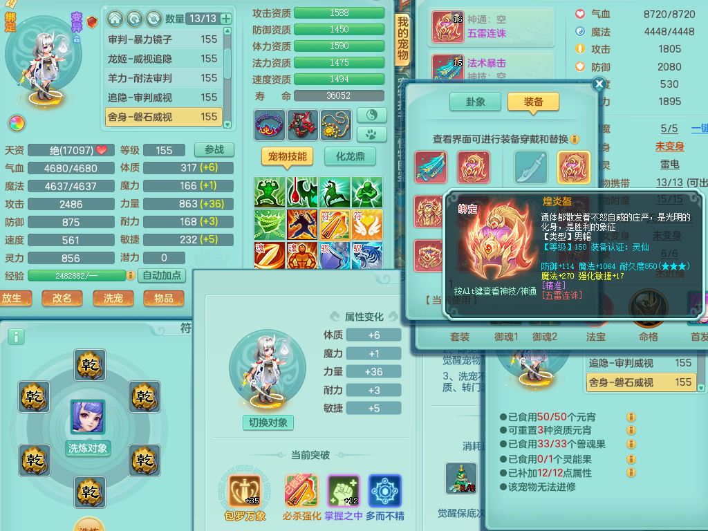 qf9784清风明月159男魔王【潜龙号+神驹马上发财+火焰之力】精灵歌,1内丹龙马1特殊(舍身)3镜花灵,综合17只满果子7觉醒9个纯6字,全身单加,五雷头,Y烽火衣服,268Y项链,鼎5.5+70+280,2套符石,183天月卡,永久外观精灵皮肤,40仙兽灵,2坐骑(1只双人)