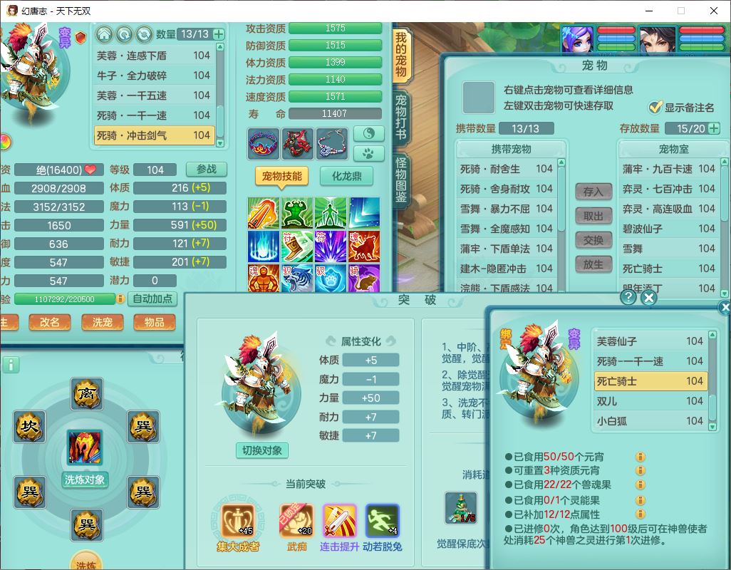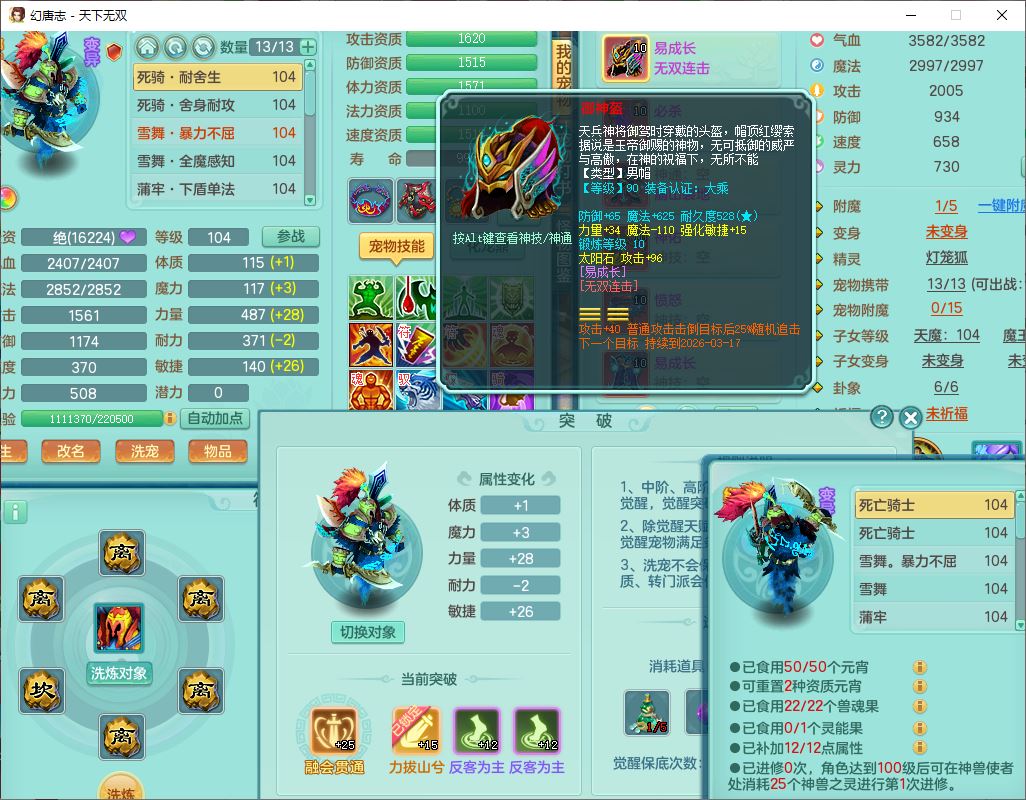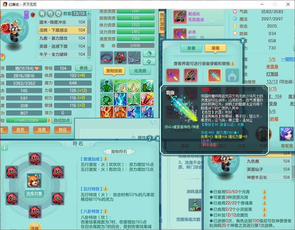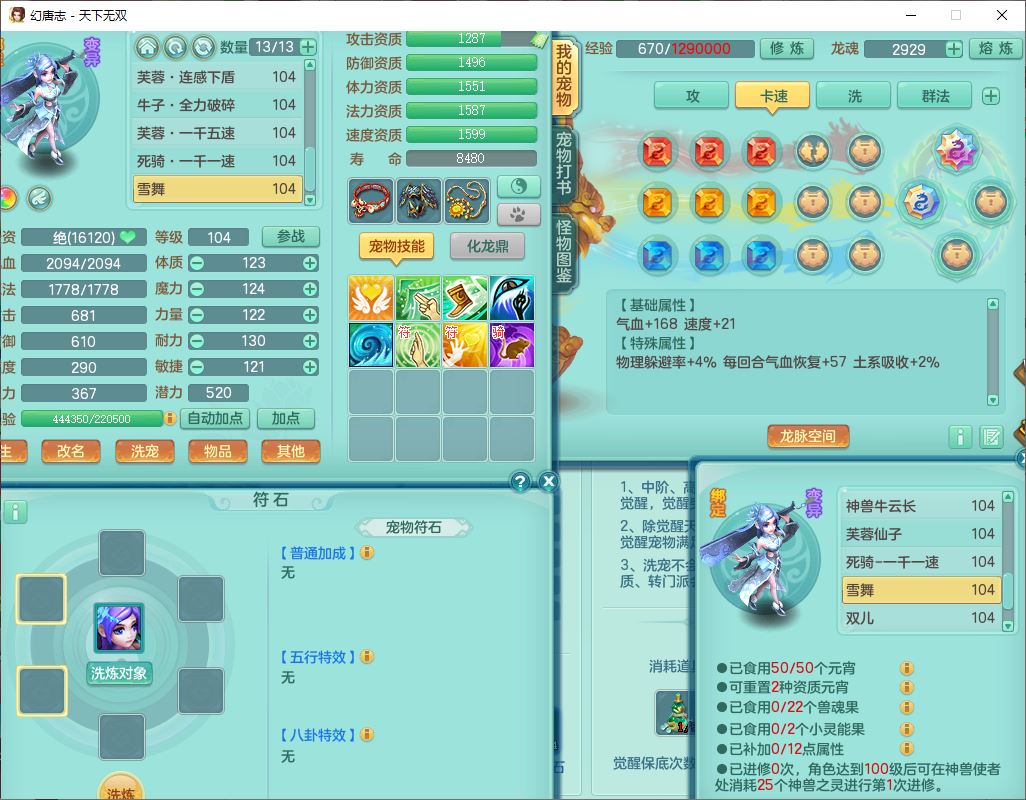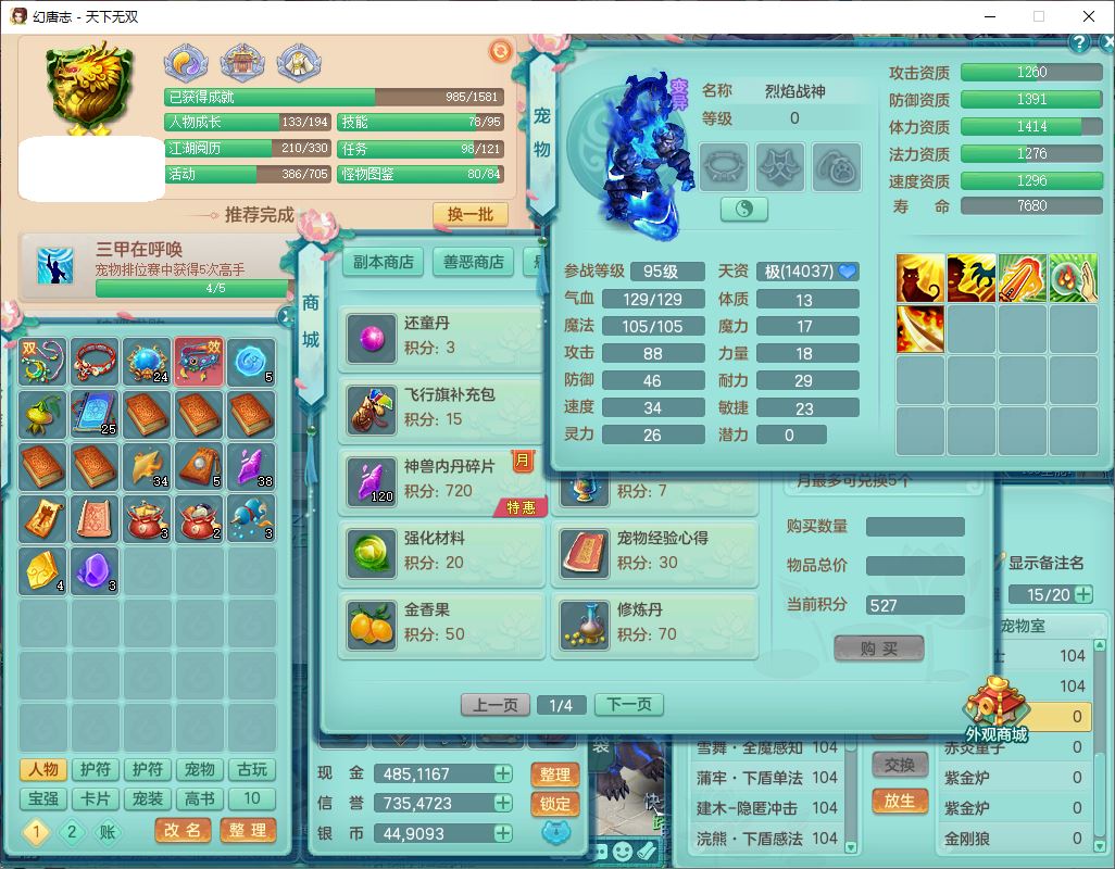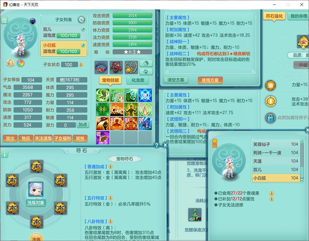 tx9799天下无双99男天宫【潜龙过半】全力精灵,1神兽1(无内)1建木2翻2舍身,5觉醒1六字4五字7四字综合13只满果子,7红装备,Y破血帽子,必杀武器,崩山衣服,一套辅助装,必杀群体激励武器,Y四海项链,鼎2.5+42+168,2套符石,32天月卡,永久头饰,24个仙兽灵,38个内丹碎片,仓库多存货,1双人坐骑,带双重