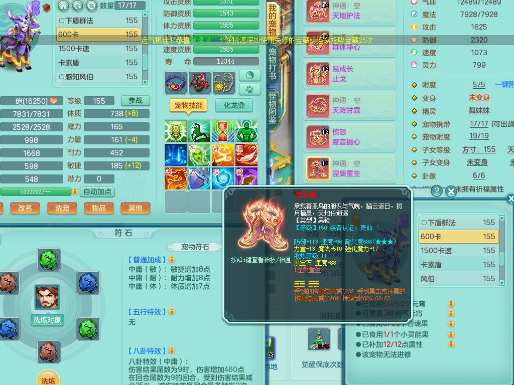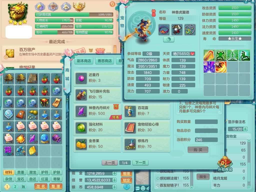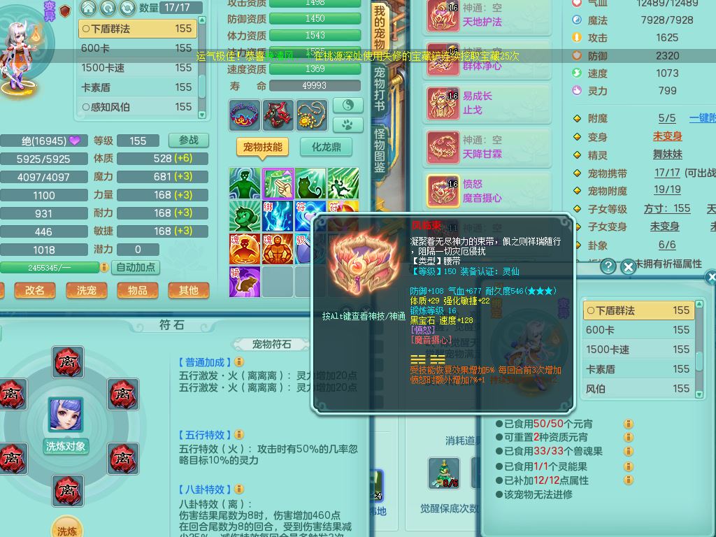 20-9803,2020区159男灵月【潜龙号】精灵舞,精灵怒,准精灵歌,8位靓号(AABBBBCC),2龙2内3镜花1望归4特殊(兽决以战、青霜、墨守、双星)3宠皮,17宠物格子9觉醒9六字1五字2四字18只满果子,8红装备,单加罗汉帽子,单加晶清武器,Y止戈衣服,四海项链,愤怒魔音腰带,单加慈航鞋子,鼎5.5+70+280,3套符石,5史诗2传说2精良法宝,永久头饰、背饰、精灵皮肤,16个内丹碎片,458W神武币,4双人坐骑(2飞行)