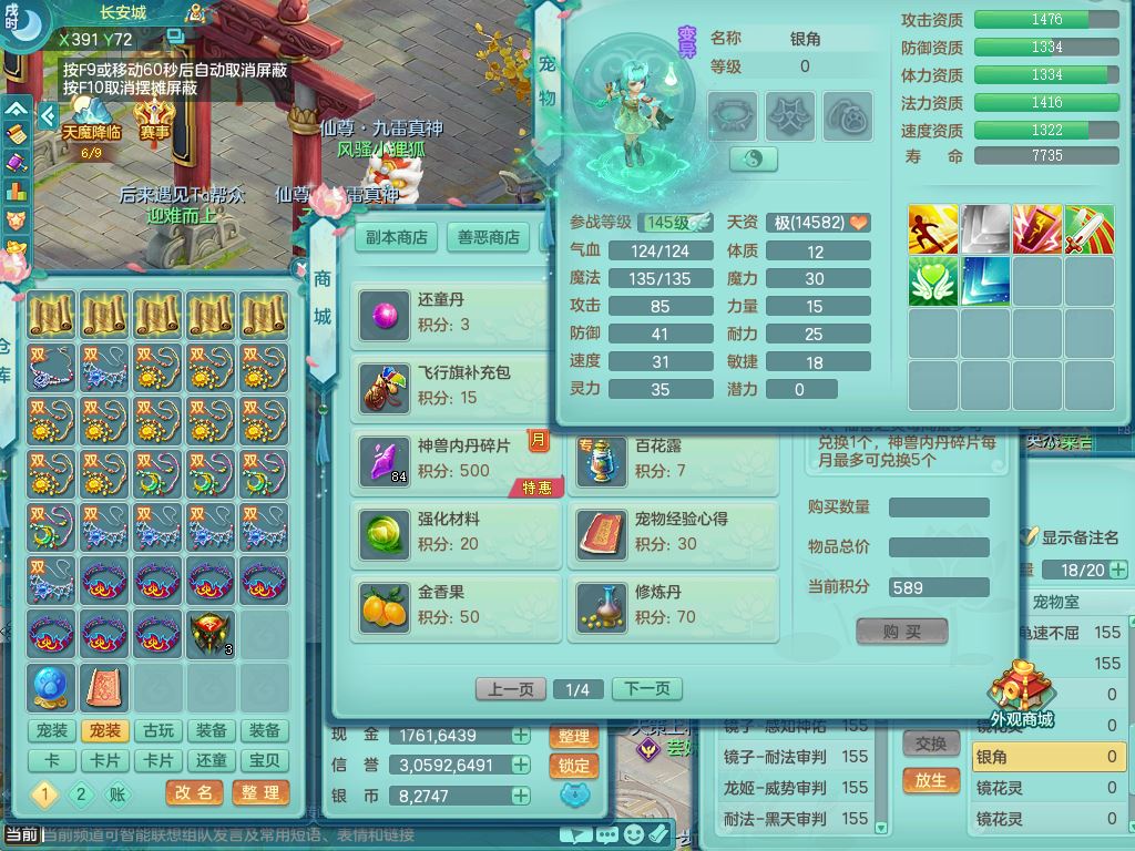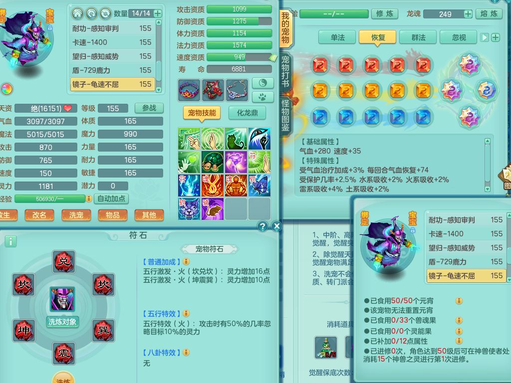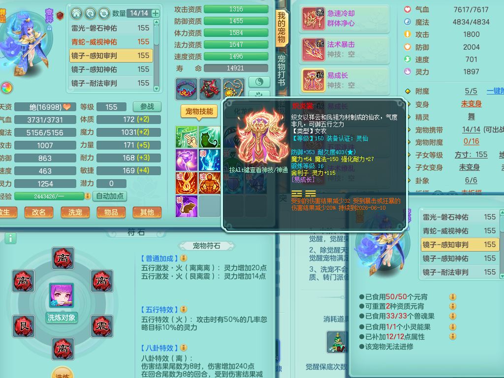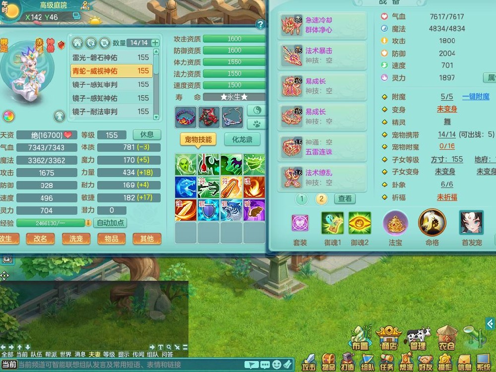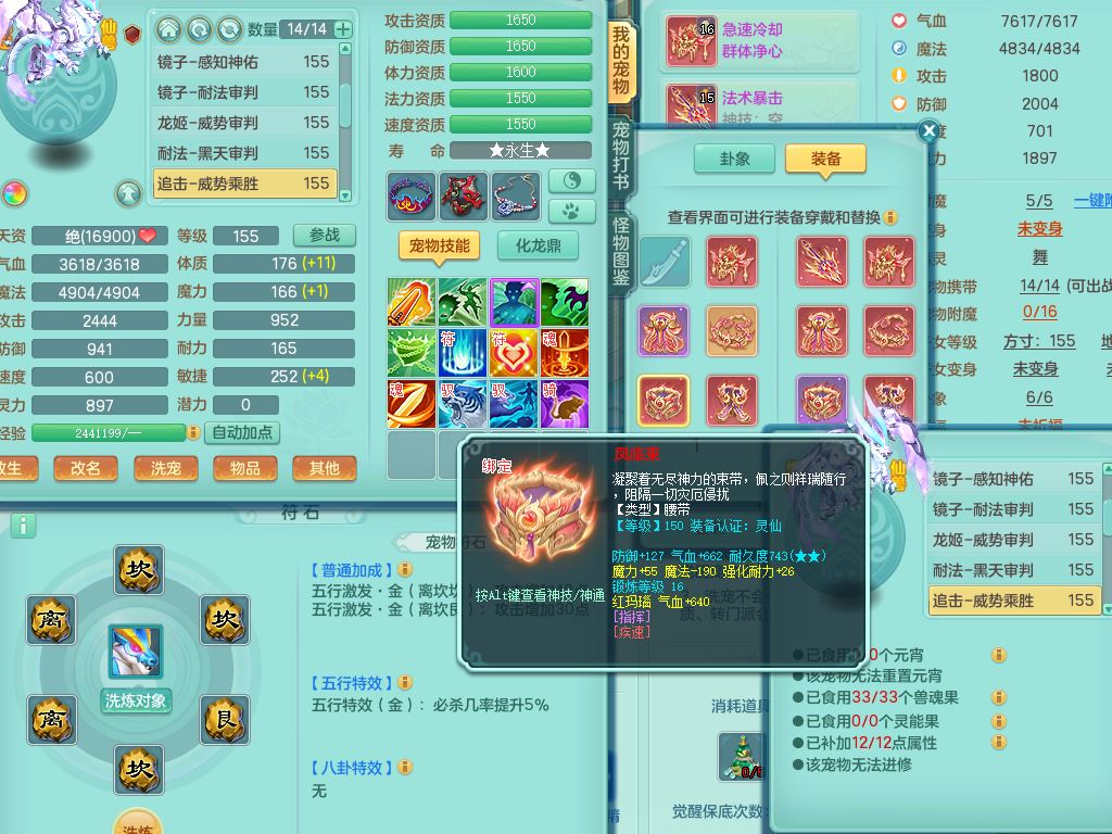 jt9809九天揽月159女天宫精灵歌+舞,4字靓号,6龙(换,无内)4内1破境,3特殊(雷光/兽决破碎/墨守)3镜花灵2龙姬,18只满果子5觉醒4个纯6字,单加急速晶清头,单加要衣服,274Y项链,五雷腰带,单加法缭鞋,鼎5.5+70+280,2套符石,104天月卡,永久外观精灵皮肤,宠排在榜,5坐骑(3只双人)