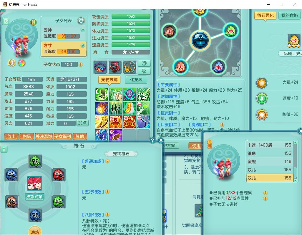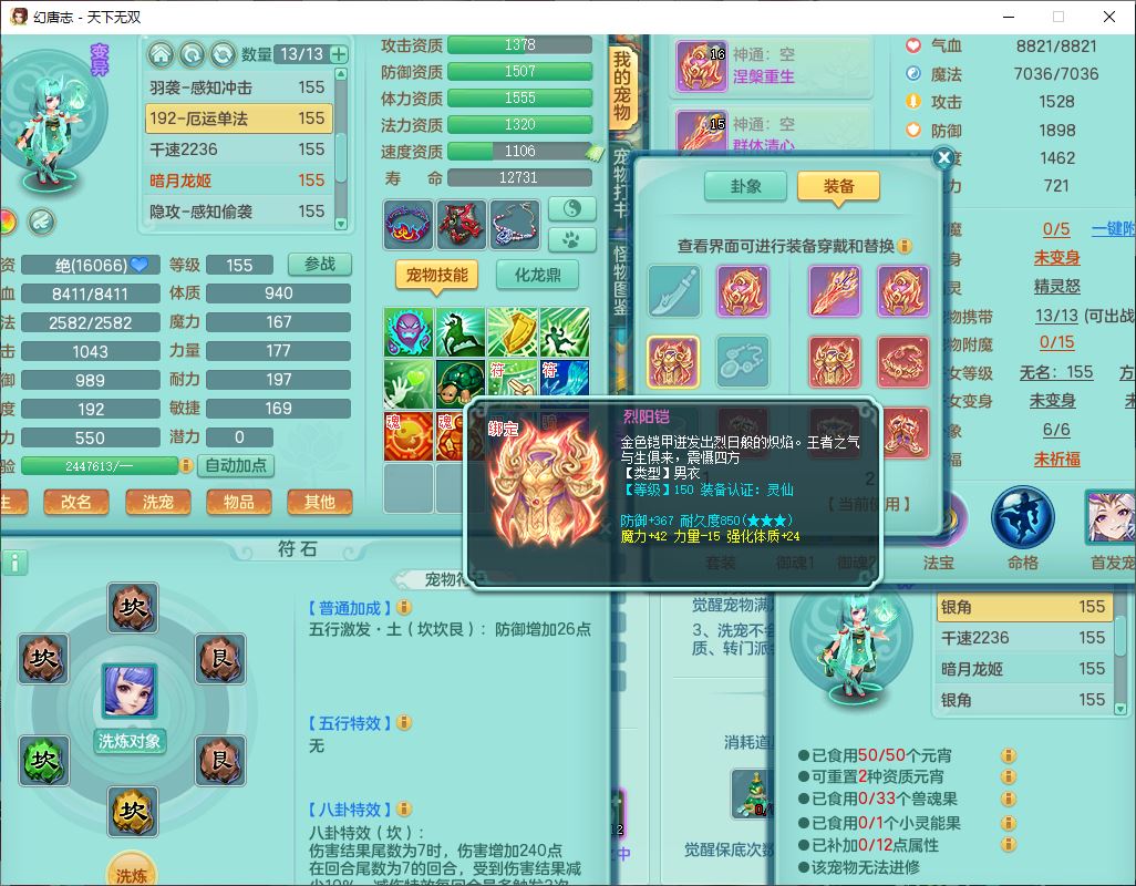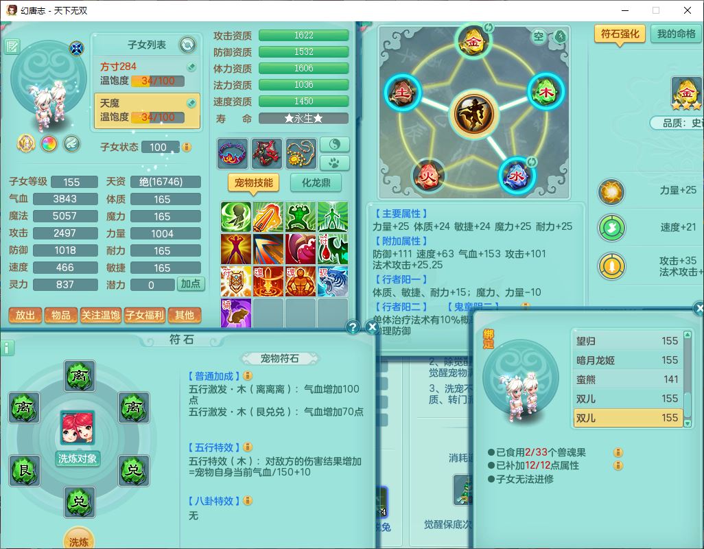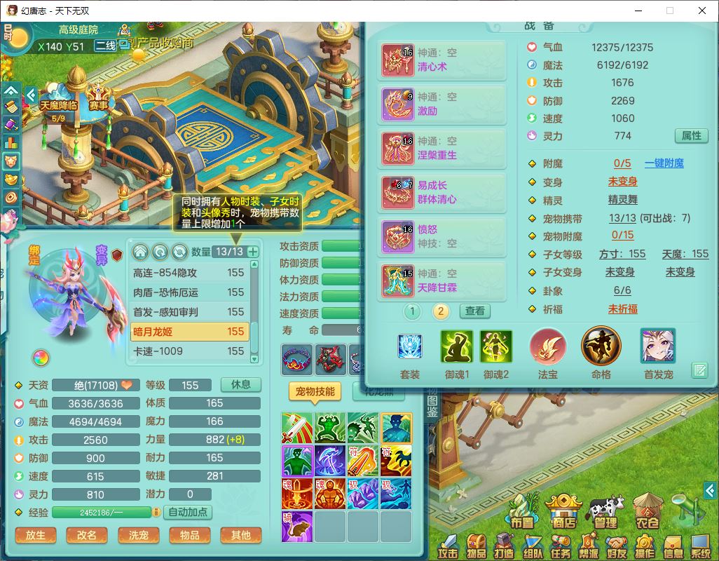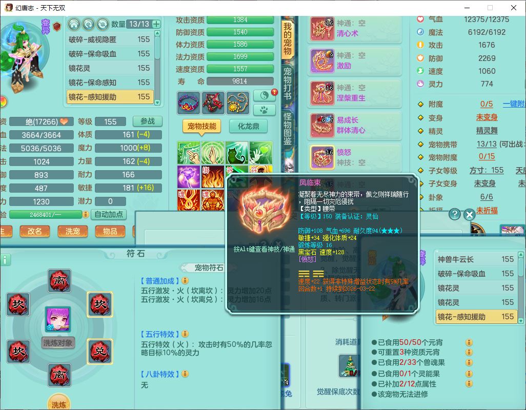 tx9749天下无双夫妻号159男方寸精灵舞,1内1望归3镜花5特殊(羽袭、流星、战争、堕天、虎虎),3觉醒7五字5四字综合7只满果子,8红装备,愤怒止戈腰带,Y水清鞋子,Y卸甲鞋子,鼎4.5,2套符石,庭院157,永久外观、精灵皮肤,720W神武币,12个仙兽灵,1双人飞行坐骑;159女无量精灵歌,1内1望归1龙姬4镜花3特殊(勇猛、焚心、荒古),3觉醒1六字2五字5四字,7红装备,Y玉清项链,有物理装,917单加必杀武器,神佑项链,鼎5.5,251W神武币,9个仙兽灵,1双人坐骑