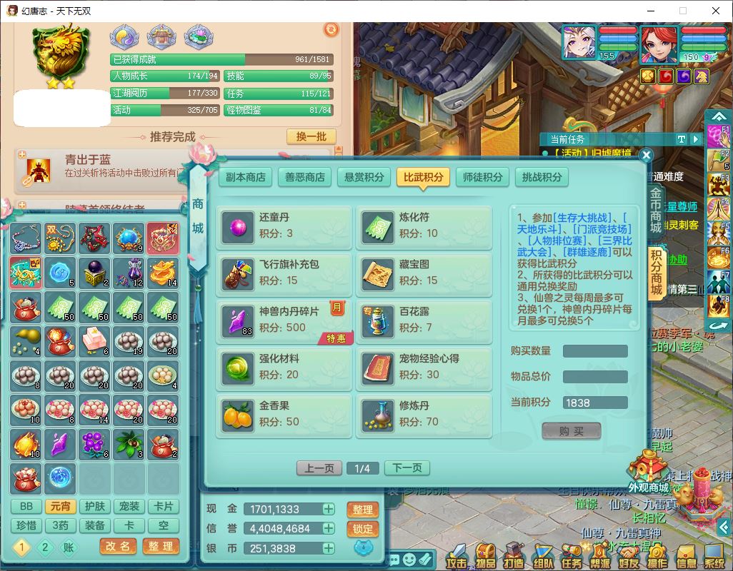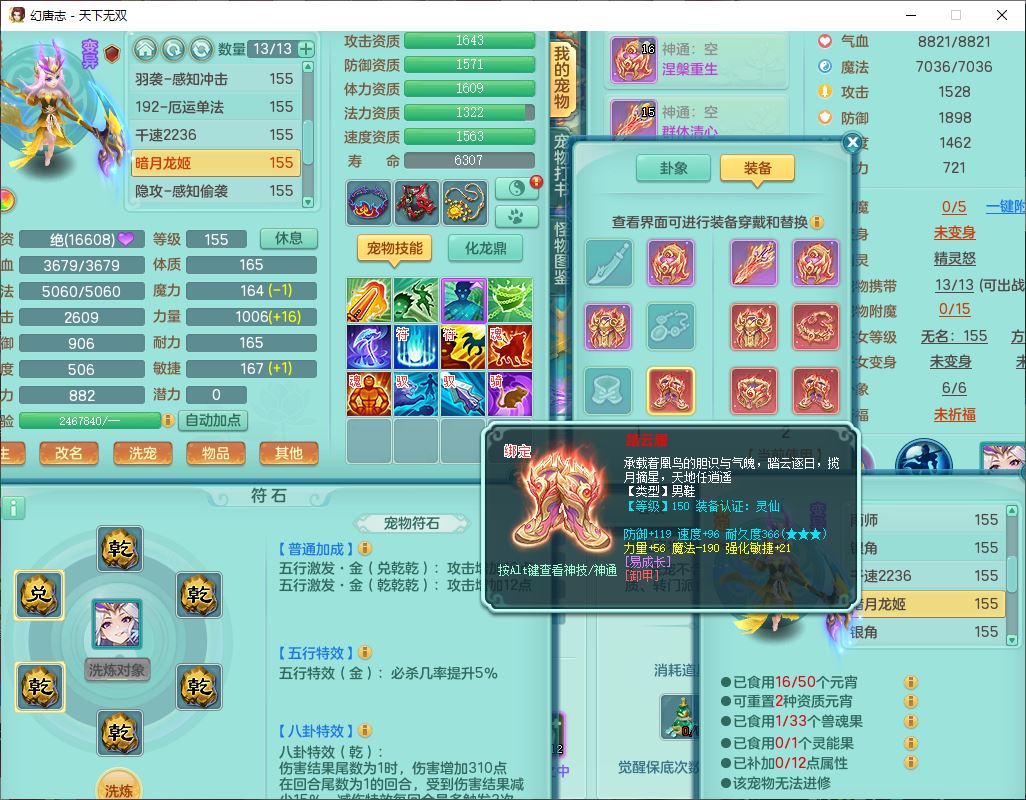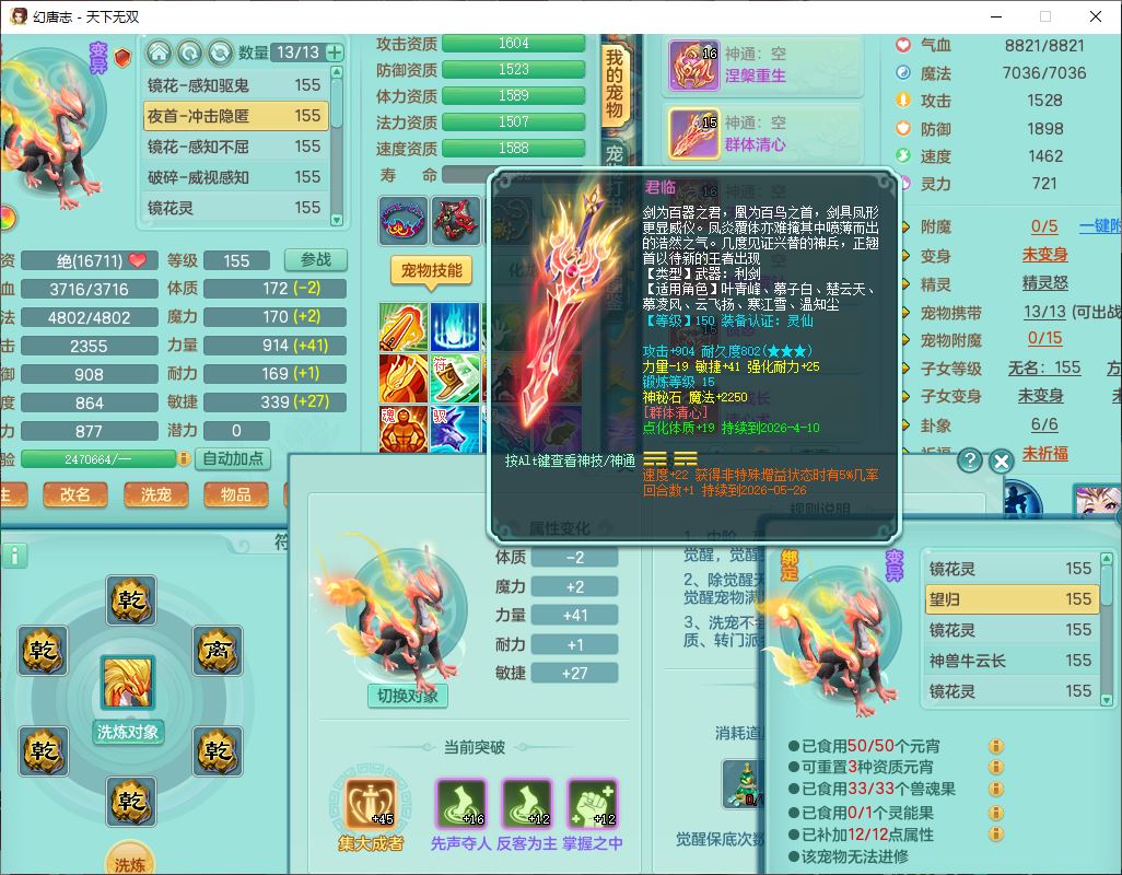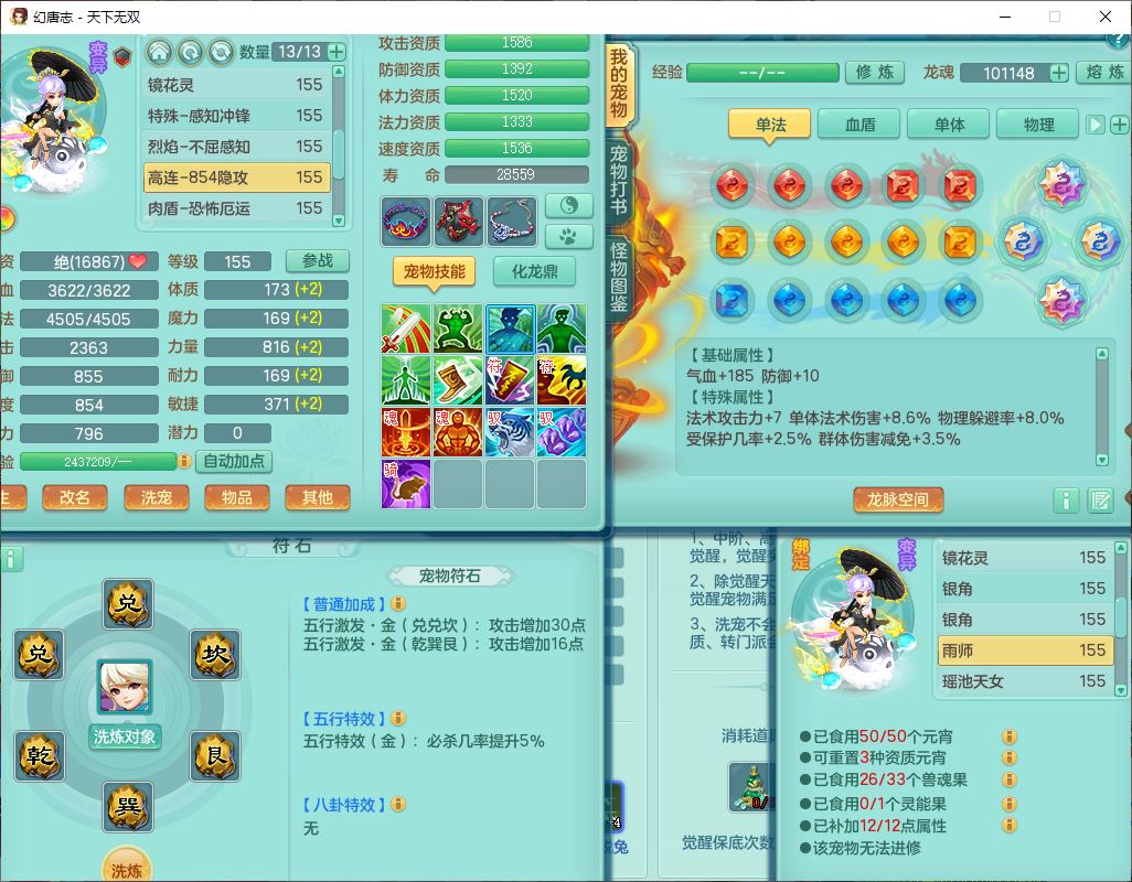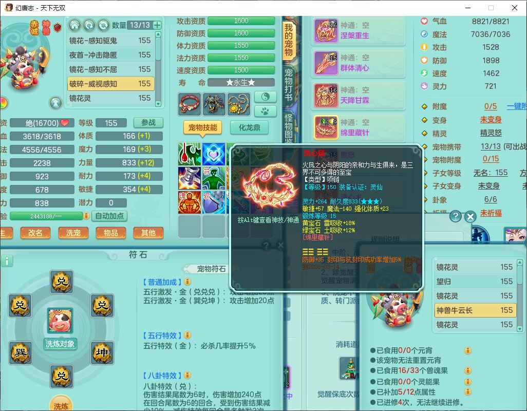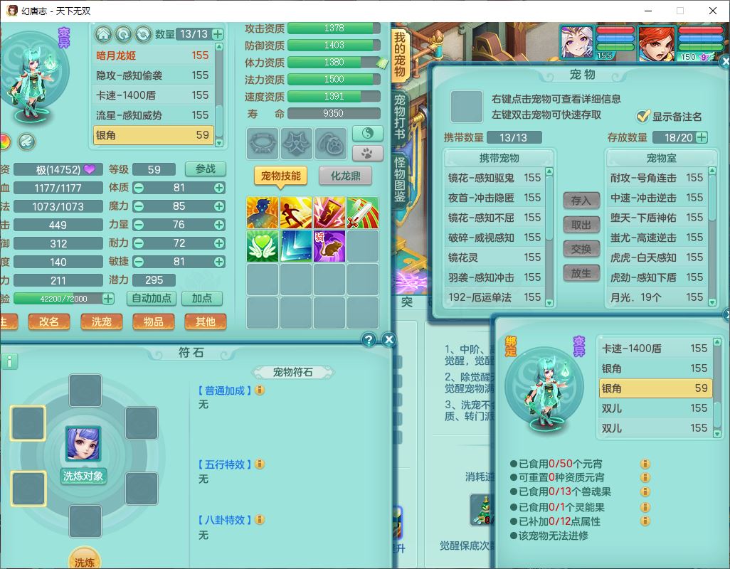 tx9749天下无双夫妻号159男方寸精灵舞,1内1望归3镜花5特殊(羽袭、流星、战争、堕天、虎虎),3觉醒7五字5四字综合7只满果子,8红装备,愤怒止戈腰带,Y水清鞋子,Y卸甲鞋子,鼎4.5,2套符石,庭院157,永久外观、精灵皮肤,720W神武币,12个仙兽灵,1双人飞行坐骑;159女无量精灵歌,1内1望归1龙姬4镜花3特殊(勇猛、焚心、荒古),3觉醒1六字2五字5四字,7红装备,Y玉清项链,有物理装,917单加必杀武器,神佑项链,鼎5.5,251W神武币,9个仙兽灵,1双人坐骑