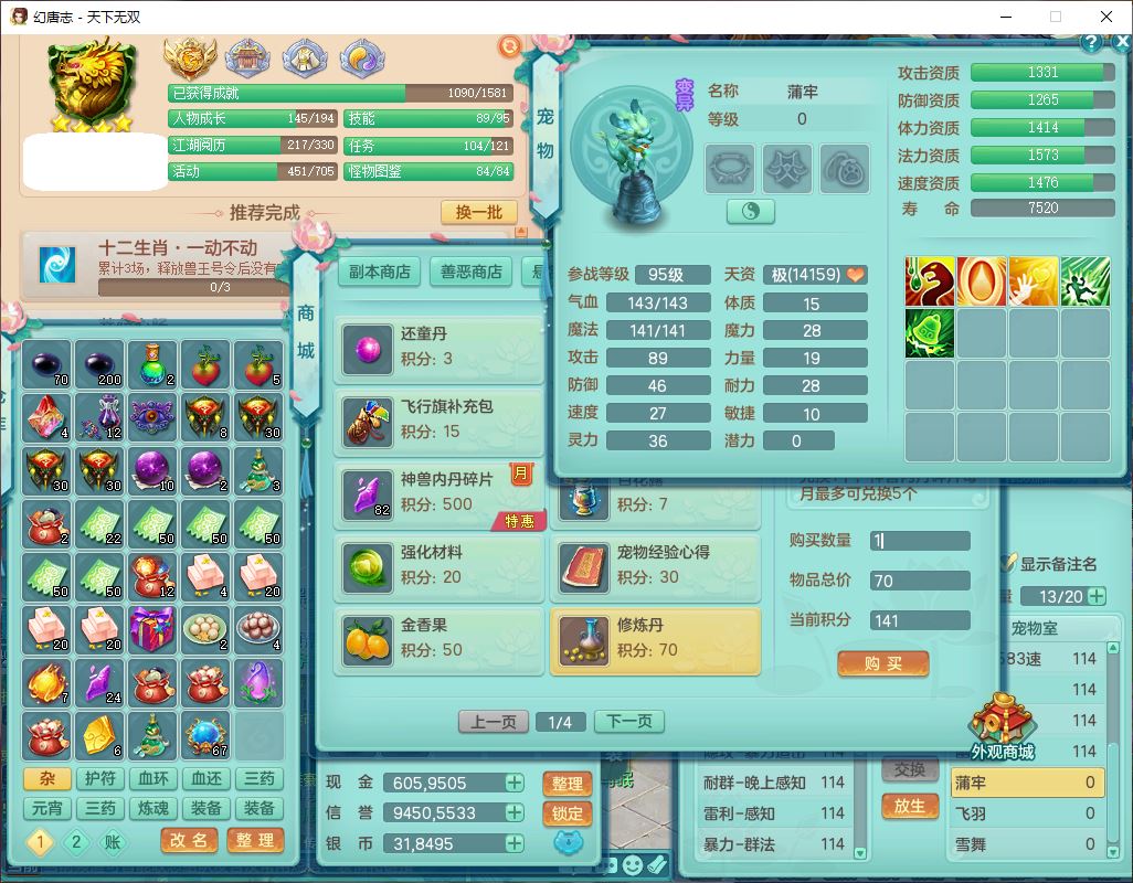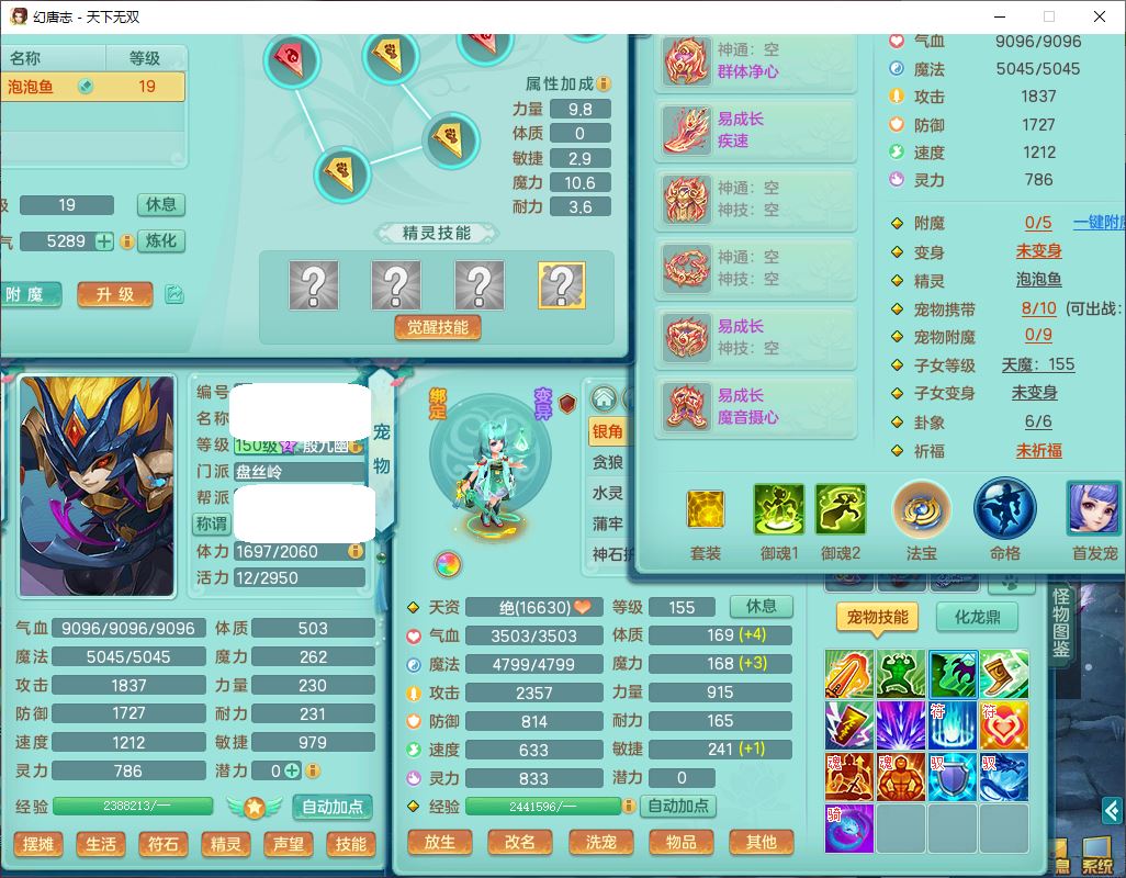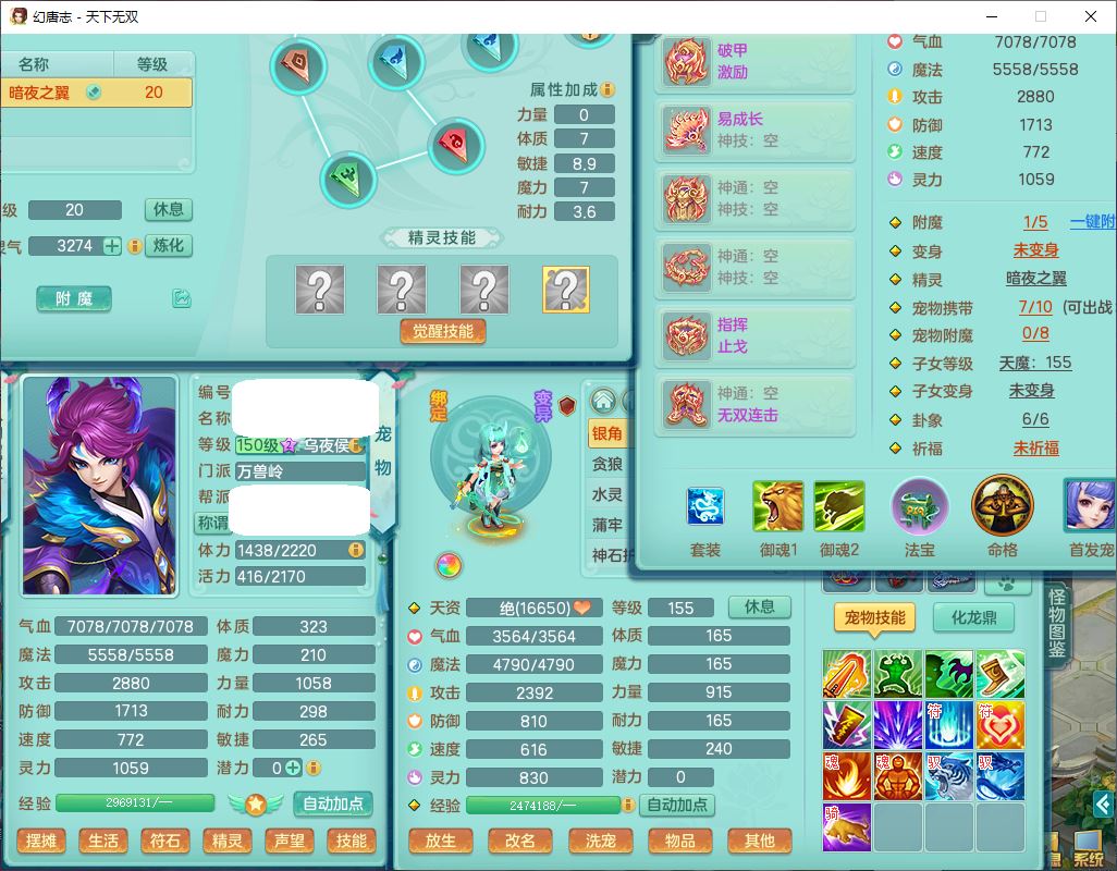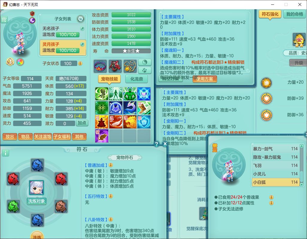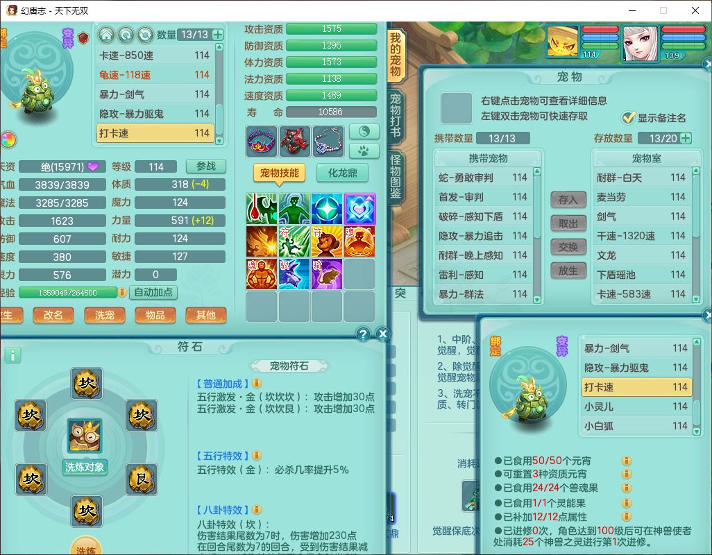tx9810天下无双109女魔王【潜龙号】精灵歌,2内(1青蛇)1建木2雷利1六技能翻江妖鬼1金炉,7觉醒7六字2五字10四字20只满果子,7红双法缭装备,五雷帽子,法缭衣服、鞋子,Y真元项链,幸运止戈衣服,鼎2.5+42+168,2套符石,房屋155,永久外观、精灵皮肤,67个仙兽灵,1双人飞行坐骑,带两150奶粉