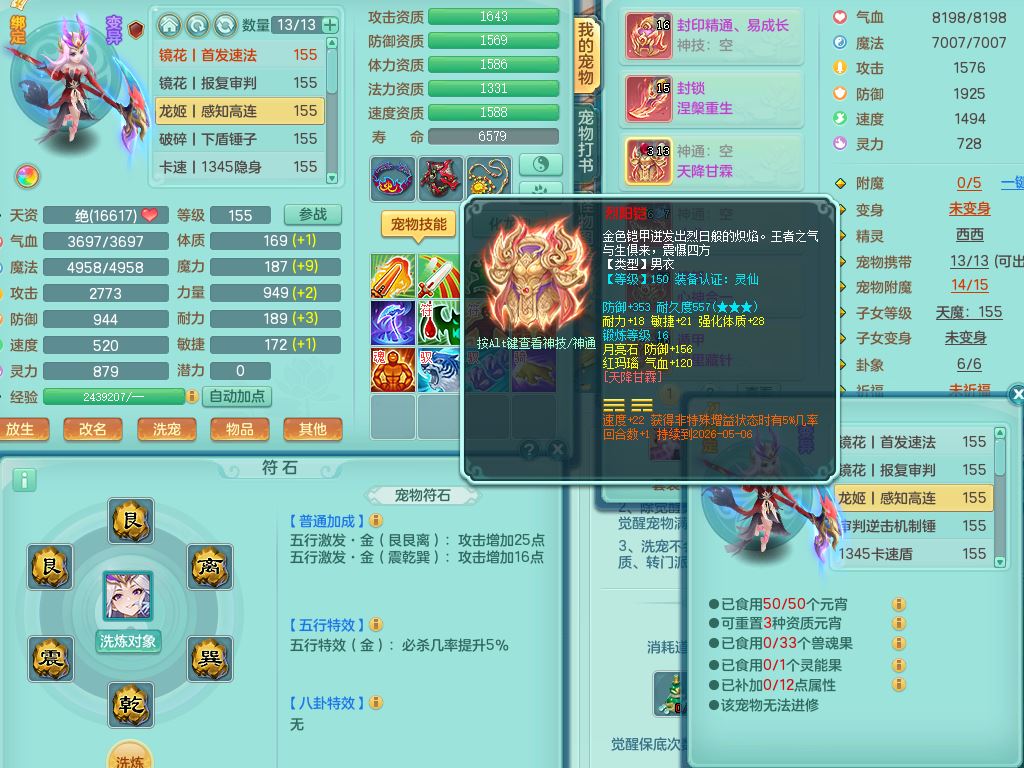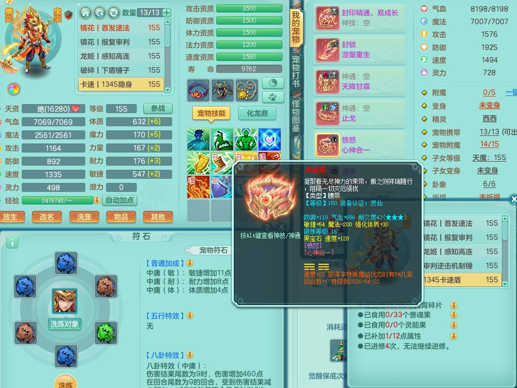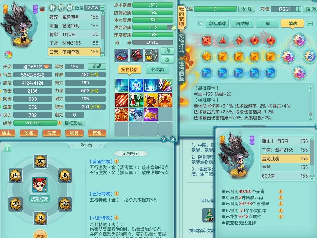 tx9814天下无双159男方寸精灵舞,满级共鸣,1内丹神,3镜花灵(1胚子),综合8只满果子1觉醒5个4字,10红星辰之拥,单加Y封印头,封锁慈航武器,单加愤怒心神腰带,仓库破甲守备头,鼎5.5+70,永久头饰精灵皮肤,36内丹碎片,飞行烛龙坐骑
