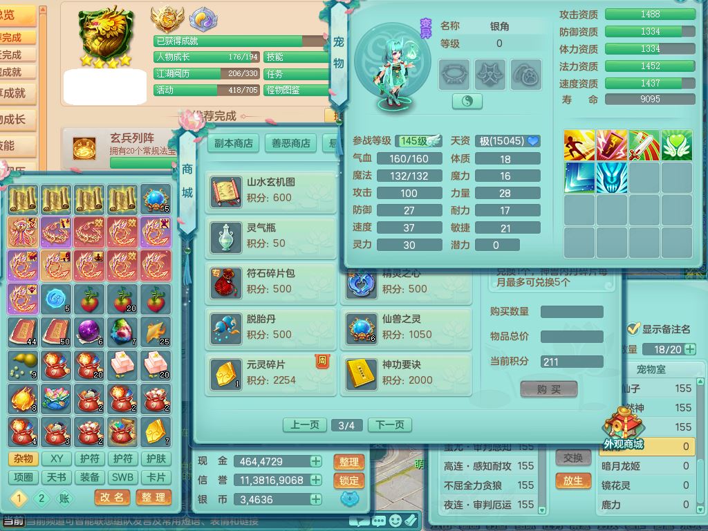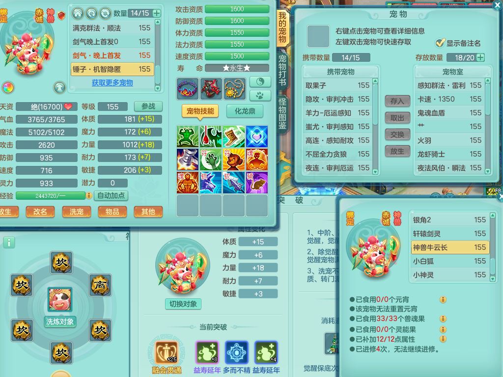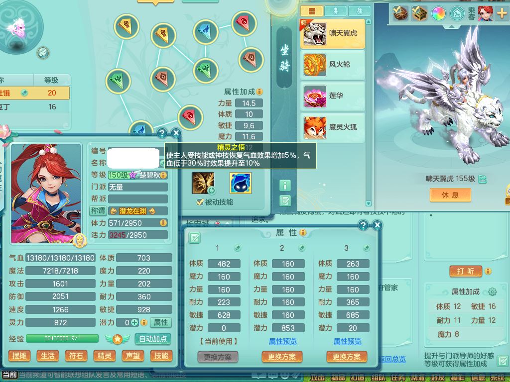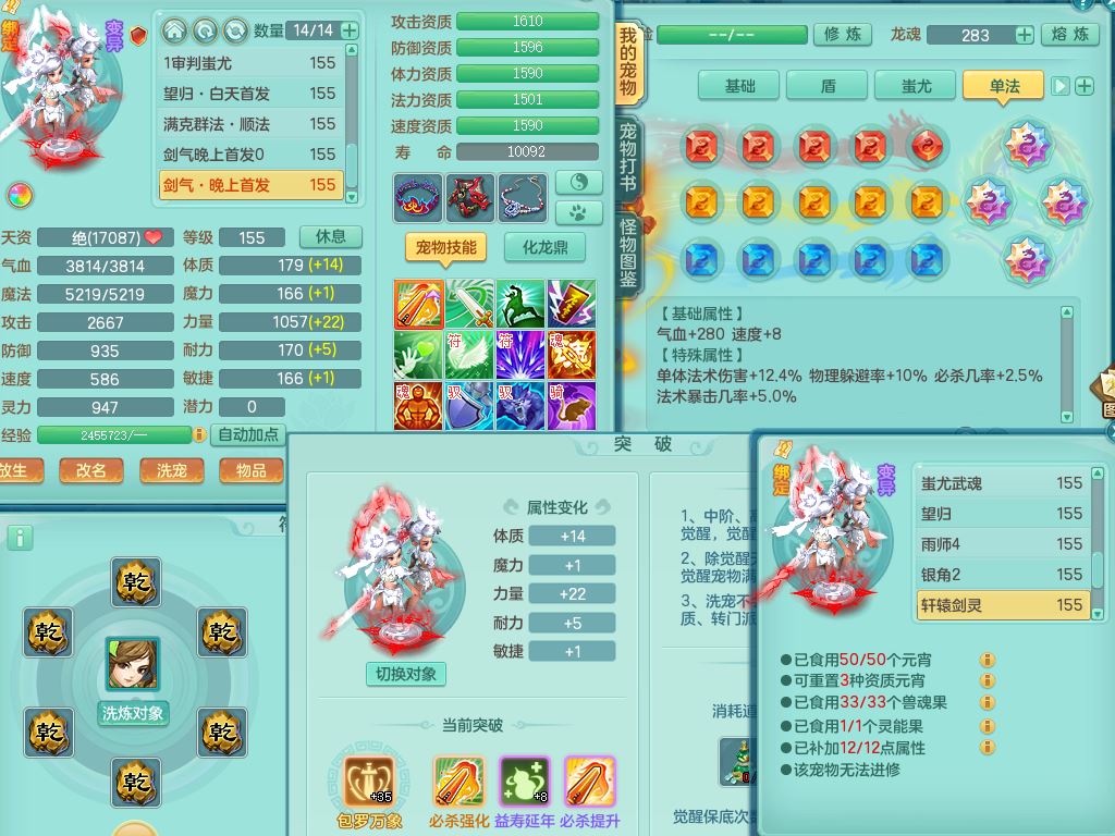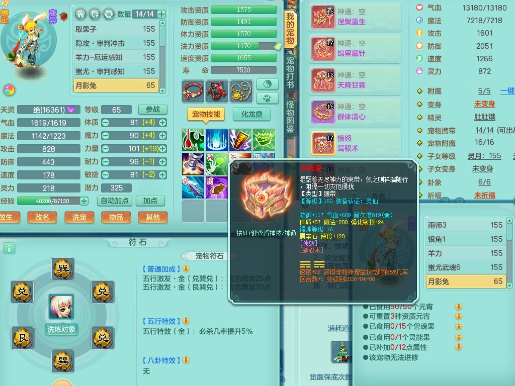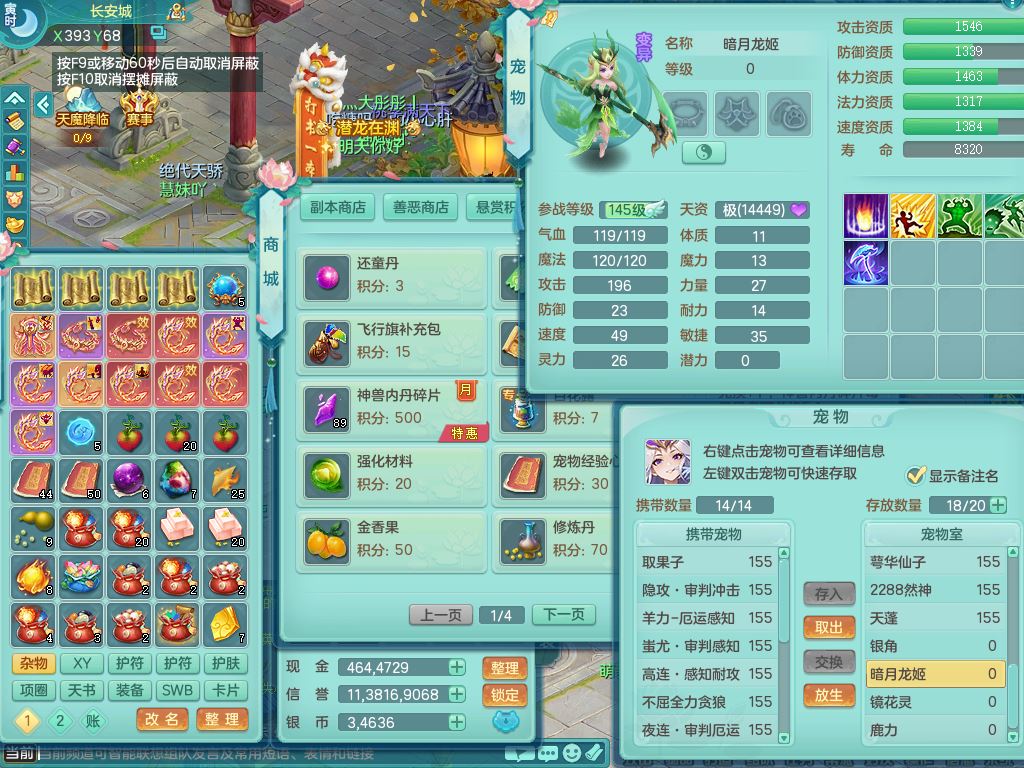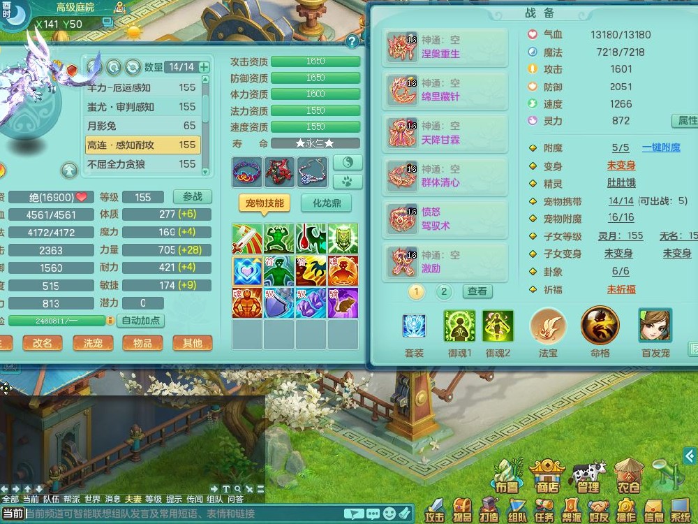 jt9820九天揽月159女佛门【潜龙号】精灵悟,2龙(换,无内)1内4特殊(雷厉/兽决青霜/飞花/上善)14只满果子12觉醒12个纯6字,愤怒6特,鼎5.5+70+280,永久外观,宠排在榜,飞行双人坐骑,带150奶粉盘丝1觉醒