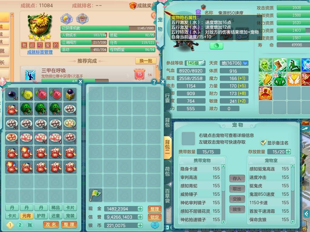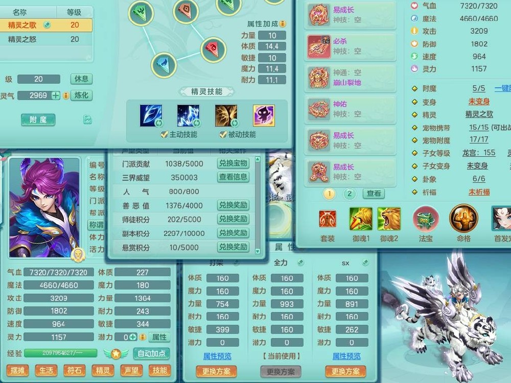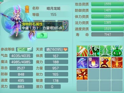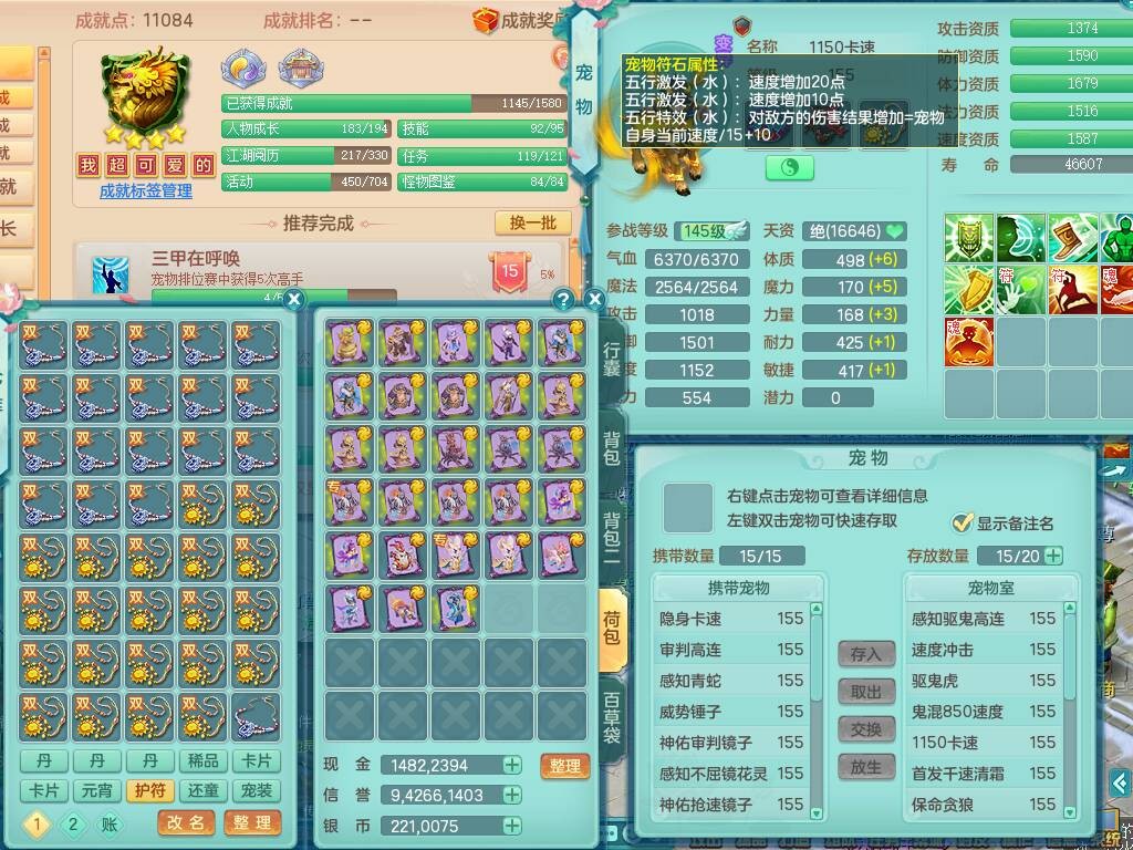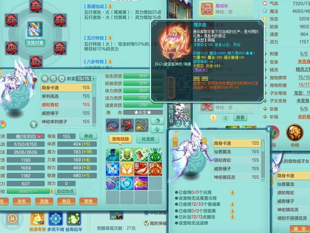 fh9838风华绝代159男万兽精灵舞,2龙(1龙无内),1内胆神,7只觉醒(潜龙条件化龙鼎差5个厚土龙纹,符石差2个附加属性,宠物6只满足),4特殊(雷厉,以战,号角,锤子),2只6技能镜花灵,930单加必杀武器,崩山单加衣服,5.5基础鼎+70攻,差1240积分14个格子,7个纯六字,15只满果子,宠排在榜,带二百多万银币,2只坐骑