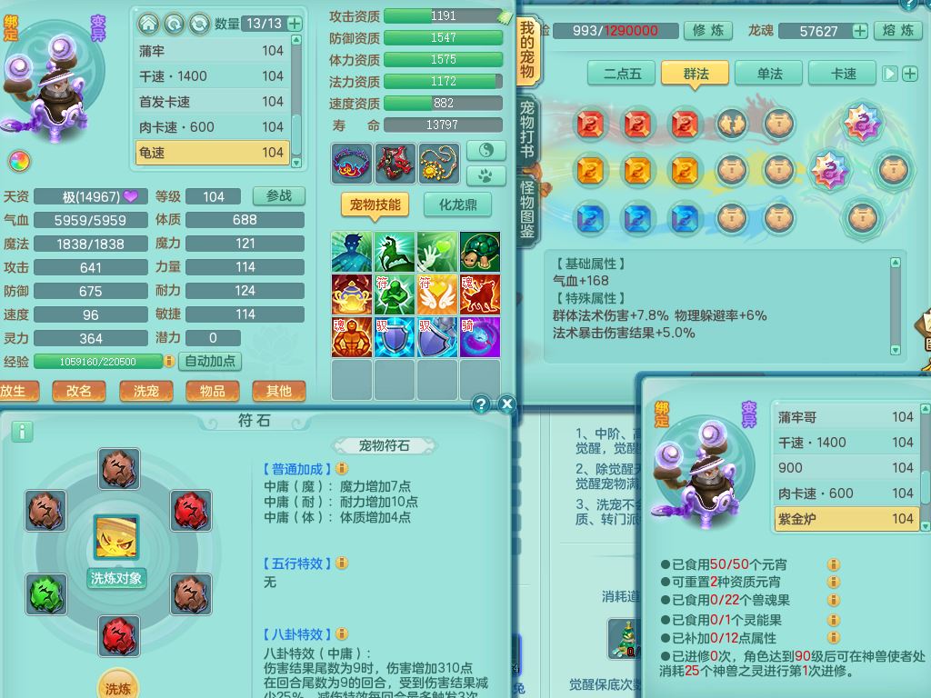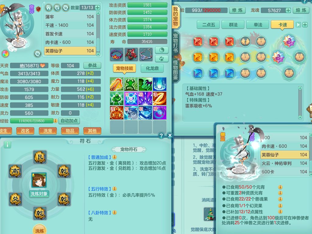 tx9828天下无双99男灵月3系精灵,2内8皮,20只满果子5觉醒1个纯6字,9红愤怒6特,Y野兽武器,Y流云衣服,单加愤怒晶清腰带,鼎2.5+42+168,庭院166,永久外观精灵皮肤,78仙兽灵32内丹碎片,722W神武币,2498金币,一页还童丹,6坐骑(4只双人)