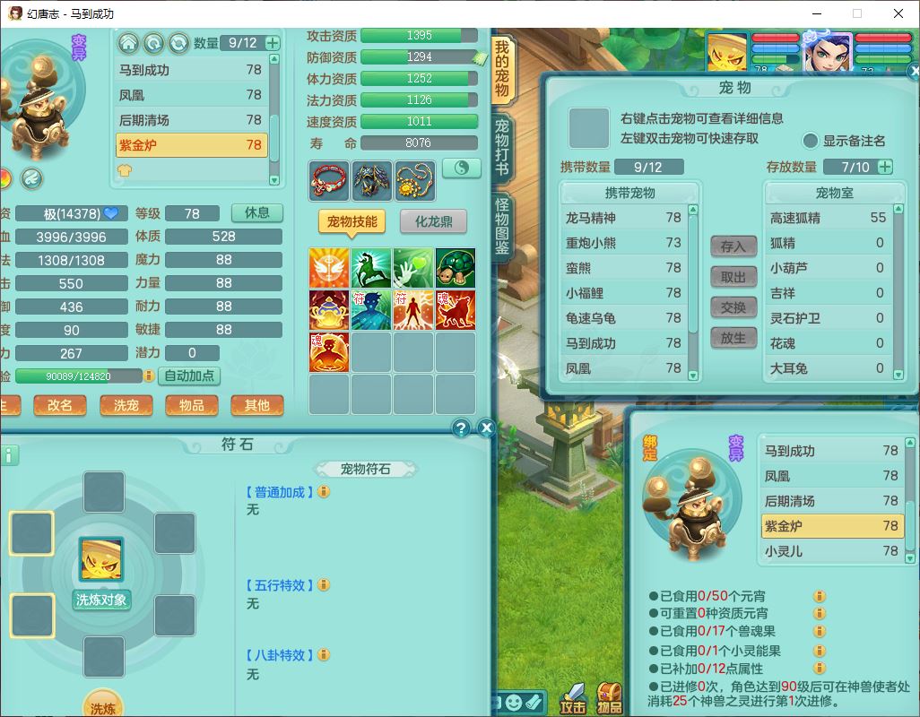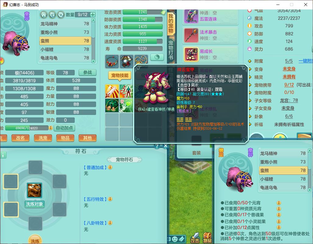 md9845马到成功73男龙宫【心想事成+火焰之力+流光翎】2龙马(1无内)1金炉,十只成品宝宝,1孩子(龙宫),7红装备,五雷帽子,法爆武器,Y晶清项链,法缭鞋子,158W神武币,8623金币,仓库多还童丹存货,15页仓库格子,满修炼,经验、成就、威望、宠排在榜,带双重