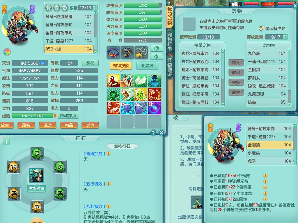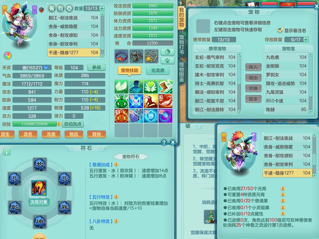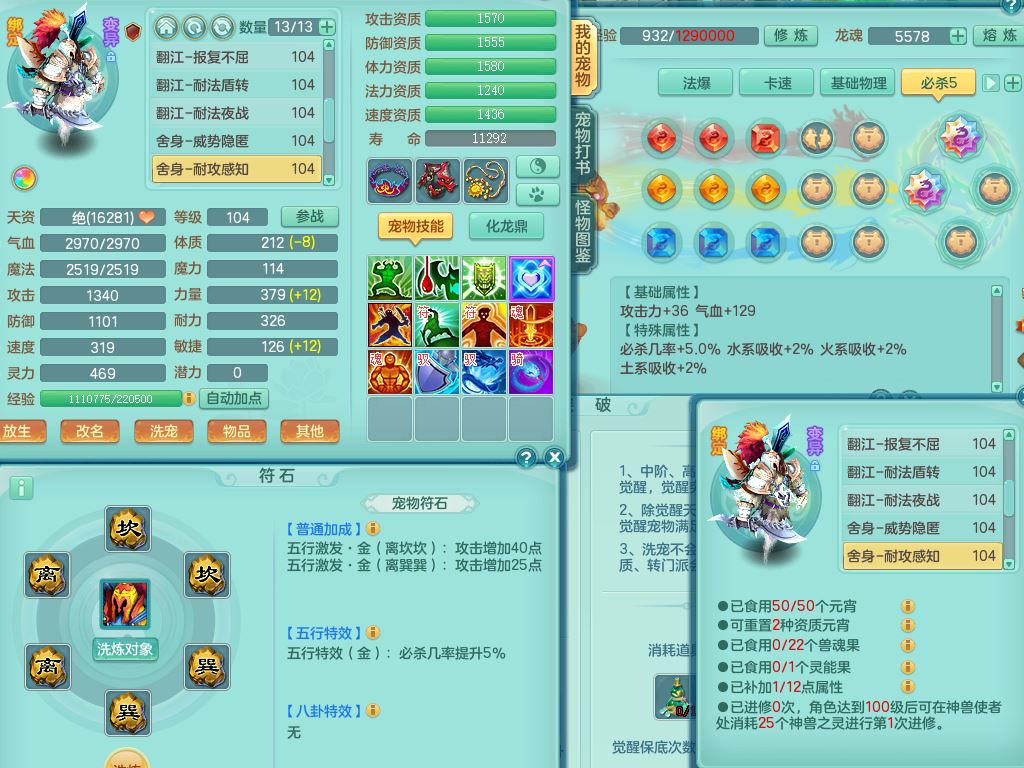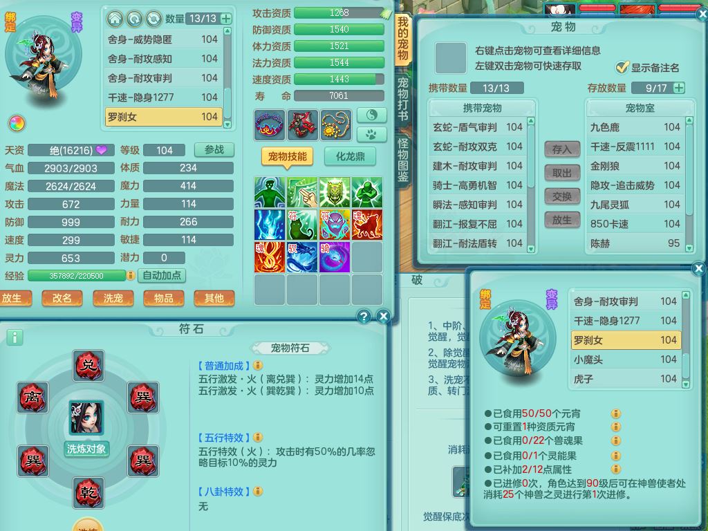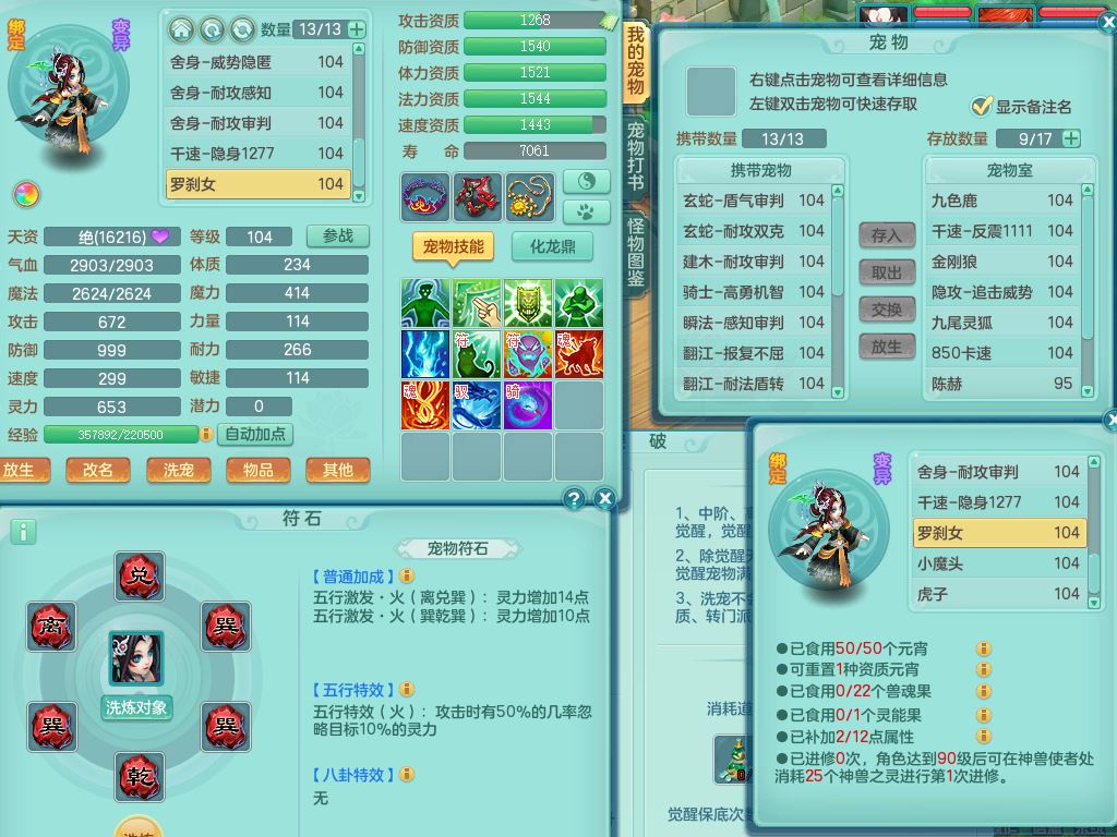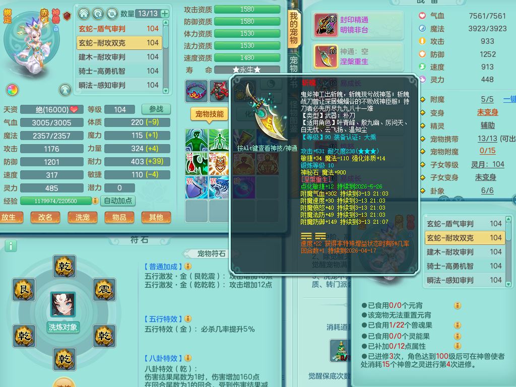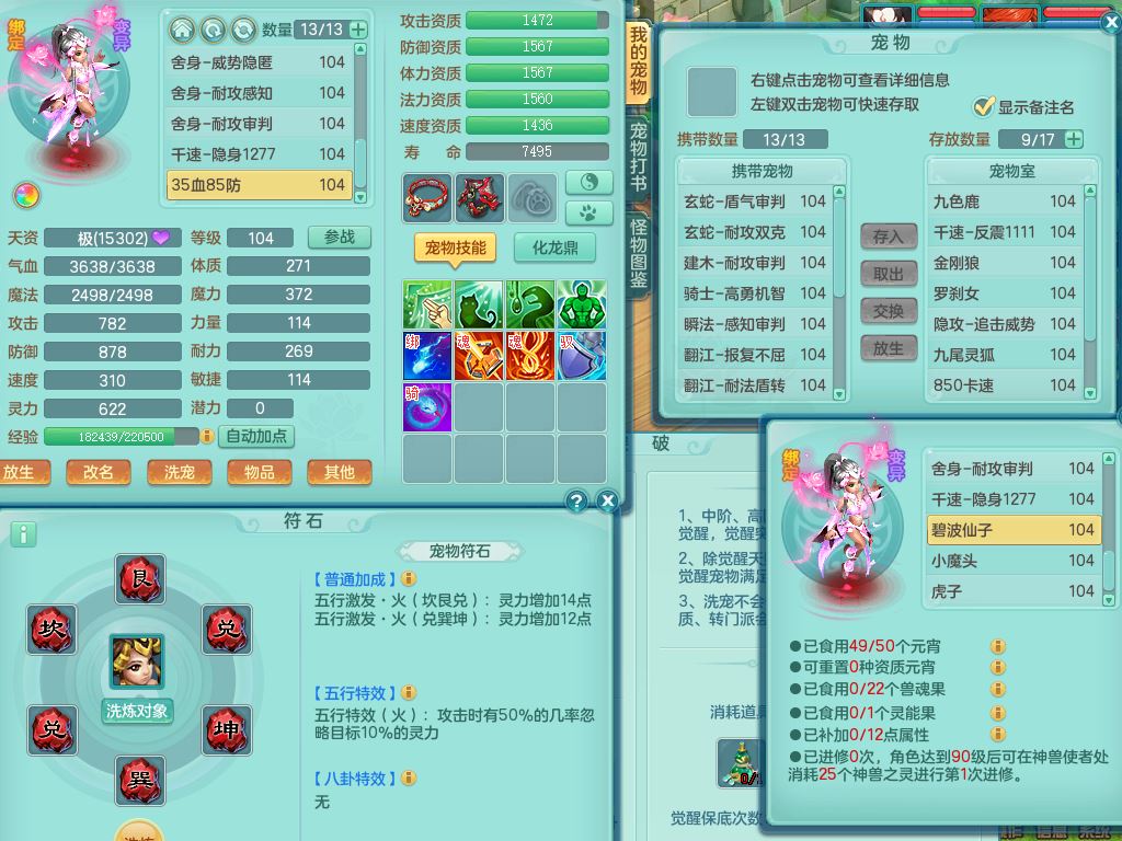 tx9839天下无双99男方寸双系精灵,2神兽青蛇(1只无内)4只满果子2觉醒,6个4字3个5字2个6字,11红愤怒6特,封印明镜头,Y止戈衣服,神佑笑里项链,愤怒双红腰带,Y四海鞋,187天月卡,11仙兽灵,10内丹碎片
