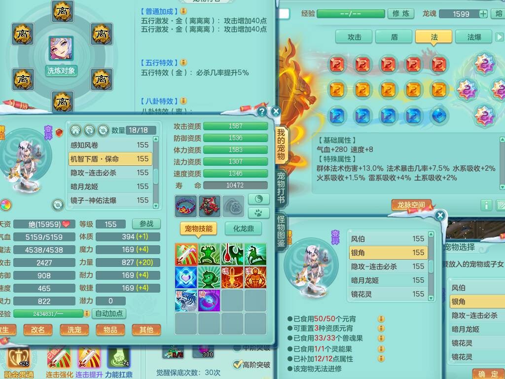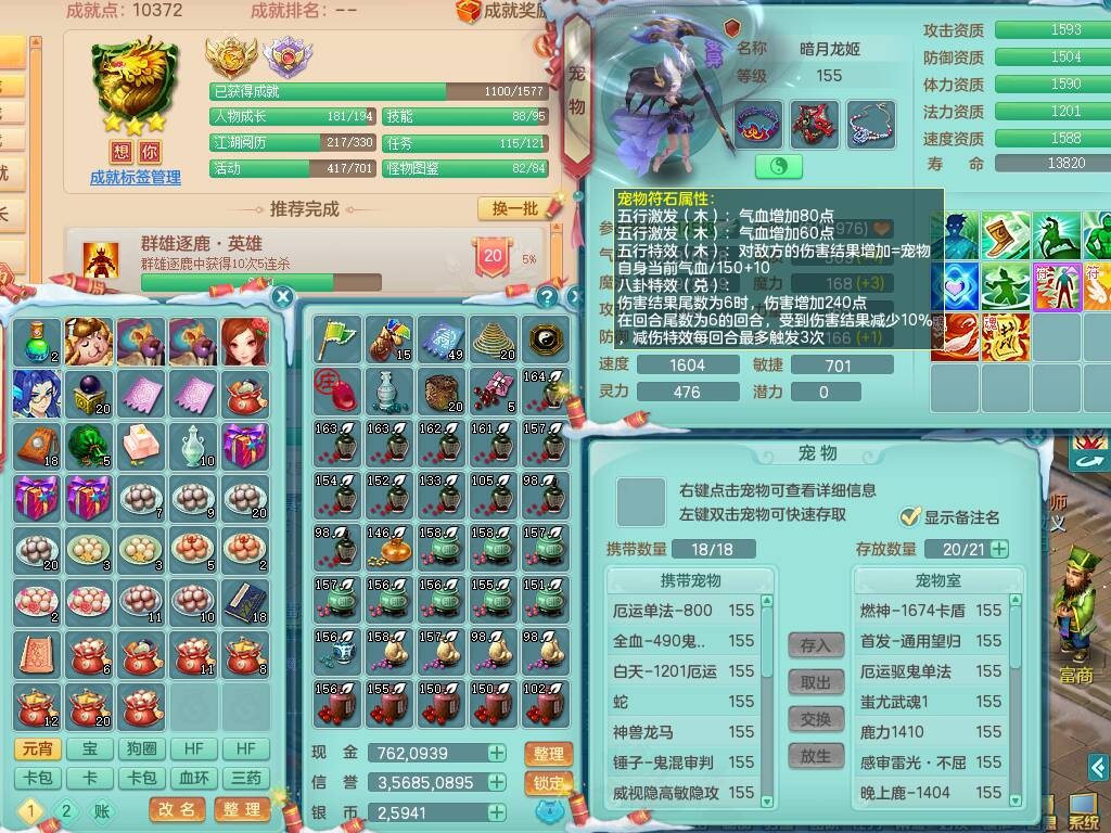 lt9856浪淘沙159女法方寸精灵舞,3龙3内胆神,3破镜,【22只觉醒,已潜龙】,8位靓号,10宠皮+1幻灵果,4只六技能龙姬,7只六技能镜花灵,法爆烽火单加51武器,18段匠心易成长单加54衣服,18段263匠心易成长单加项链,法缭五雷鞋子,法系星辰之拥,有破甲慈航单加56鞋子,迅捷疾速单加53鞋子,法缭单加53鞋子,三红愤怒易成长群体守备腰带,迅捷易成长鞋子,回春、封锁武器都有,5.5基础鼎+70攻+280血,15个格子,22个纯六字,1个五字,26只满果子,宠排在榜,永久称谓,7个坐骑,暴龙泰坦+西瓜冰武器皮肤+神驹心想事成+火焰之力武器皮肤