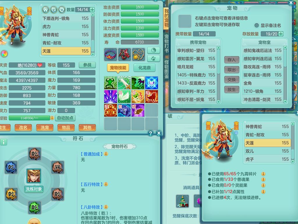 jt9853九天揽月159女佛门精灵悟,满级共鸣,1龙(换)2神兽青蛇(1只无内)2特殊(兽决影袭/守护)综合10只满果子9觉醒3个纯6字,回春武器,愤怒绝幻腰带,鼎5.0,永久头饰精灵皮肤,521W神武币,宠排在榜,飞行双人坐骑