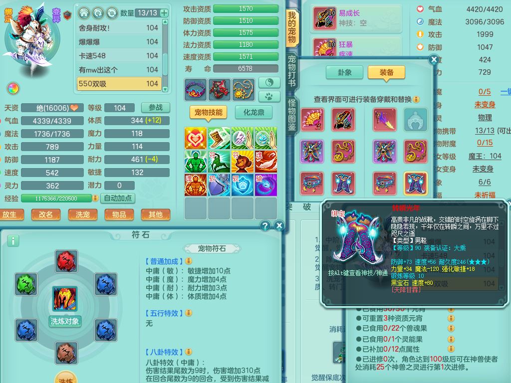 tx9854天下无双99男天宫【神驹,马上发财】力敏精灵,1内丹青蛇,12只满果子2觉醒3个纯6字,9红星辰之拥,547狂暴流云武器,单加崩山衣服,单加Y坚毅项链,单加破甲迟滞鞋,鼎2.0+42+168,50天月卡,冰晶庭院,永久外观精灵皮肤,2坐骑(1只双人)