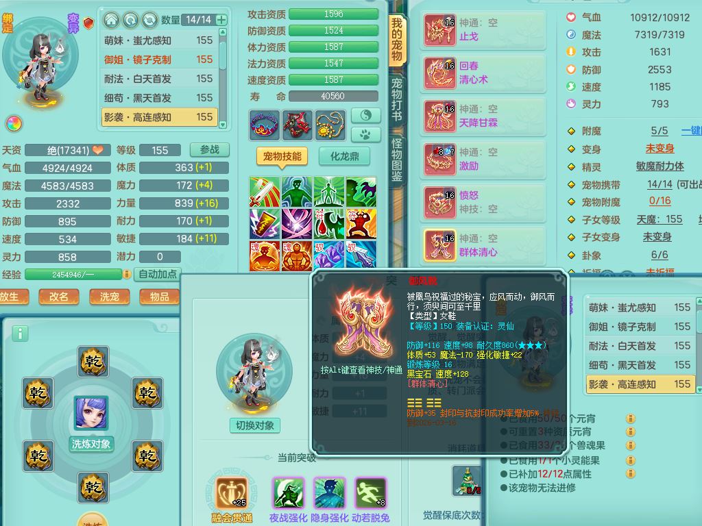 tx9858天下无双159女佛门【潜龙号】精灵舞,1龙(换,无内)1内丹龙马,5特殊(荒古/影袭/破碎/兽决枪出/上善)3镜花灵,15只满果子12觉醒12个纯6字,回春愤怒5特,回春水清武器,鼎5.5+70+280,46天月卡,永久头饰精灵皮肤,宠排在榜