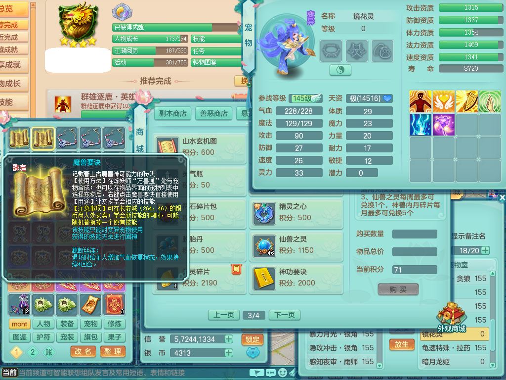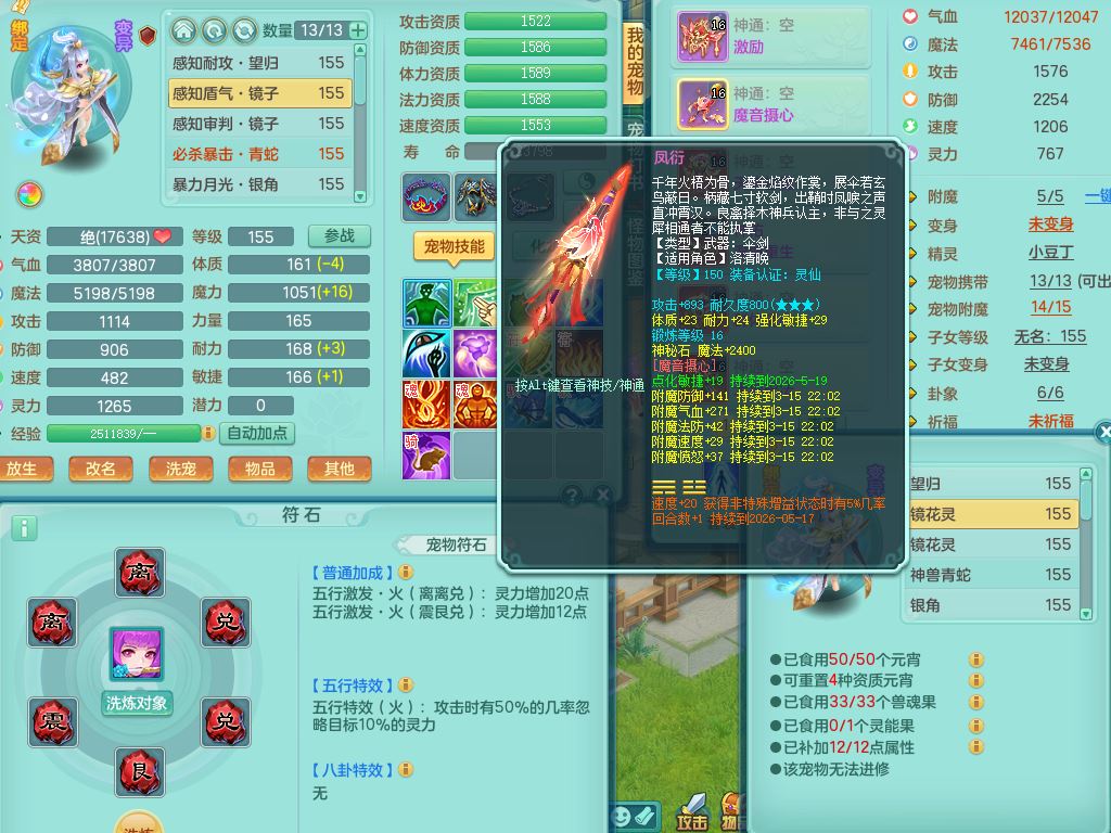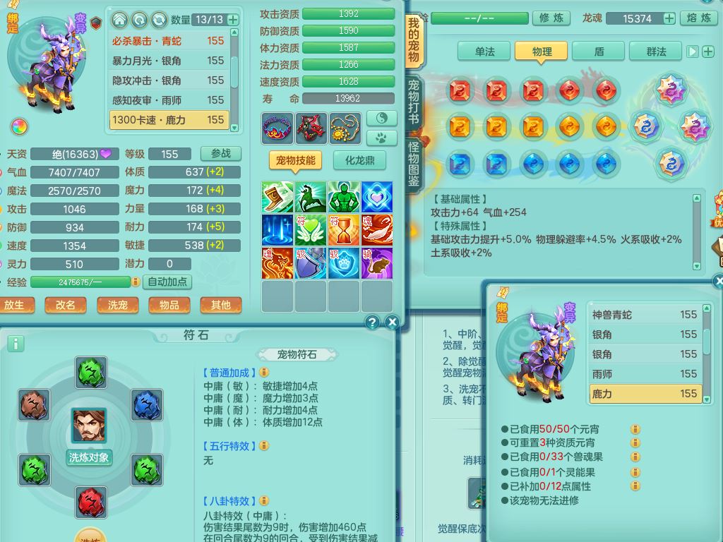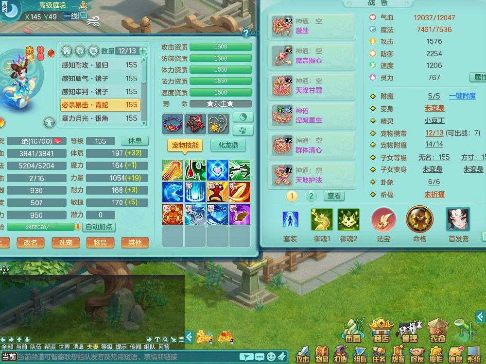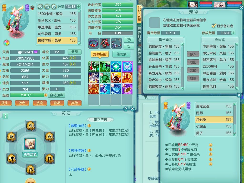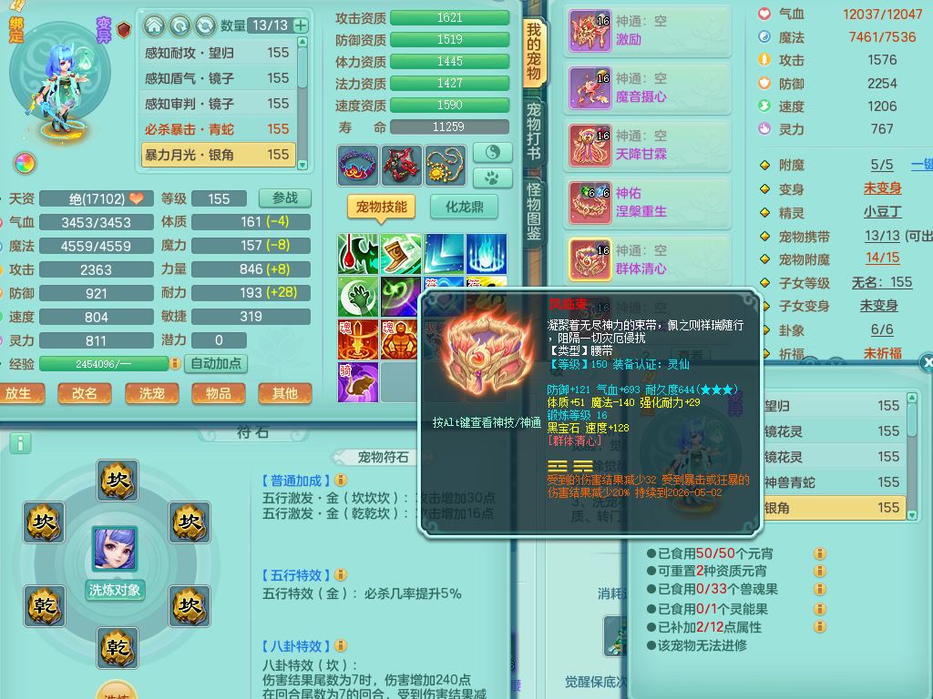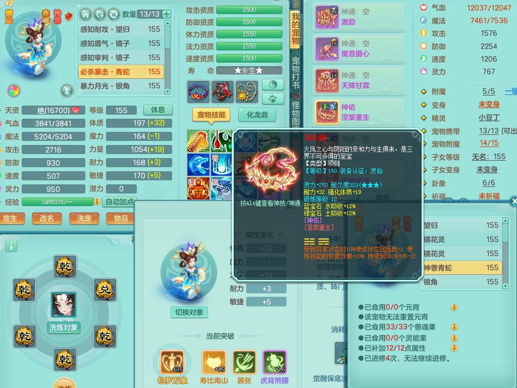 tx9863天下无双159女灵月精灵舞,满级共鸣,1内丹青蛇1特殊(藕断兽决),9只满果子1觉醒9个4字2个5字,7红6特,神佑慈航项链,鼎5.0,永久外观精灵皮肤,39仙兽灵,飞行双人坐骑