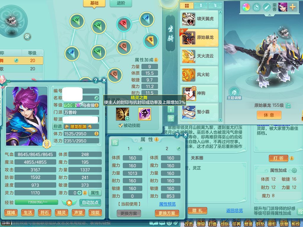 tx9864天下无双159男万兽【潜龙号+神驹马上发财+暴龙洪荒+火焰之力】精灵舞,5字靓号,5龙(换)2内(青蛇、龙马)1破境5皮,3镜花灵,20只满果子13觉醒14个纯6字,915狂暴武器,单加Y止戈头,崩山衣服,单加Y腰带,Y鞋,鼎5.5+70+280,202天月卡,冰晶庭院,永久外观精灵皮肤,80果子,宠排在榜,4坐骑(3只双人)