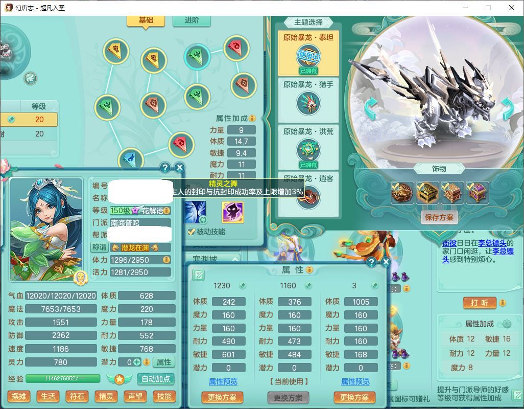 cf9866超凡入圣159女普陀【潜龙+暴龙泰坦+暴龙洪荒+马到成功+红红火火+火焰之力+西瓜冰】精灵舞,3龙(1换、无内)2内(1小马)5镜花1龙姬2特殊(勇猛、琴音兽决),9觉醒1宠皮7六字9五字9四字综合24只满果子,15格子,8红装备,愤怒止戈单加腰带,Y激励鞋子,仓库多装备,回春易成长单加武器,鼎5.5+70+280,137天月卡,庭院154,永久外观、精灵皮肤,21个内丹碎片,6坐骑,带155奶粉