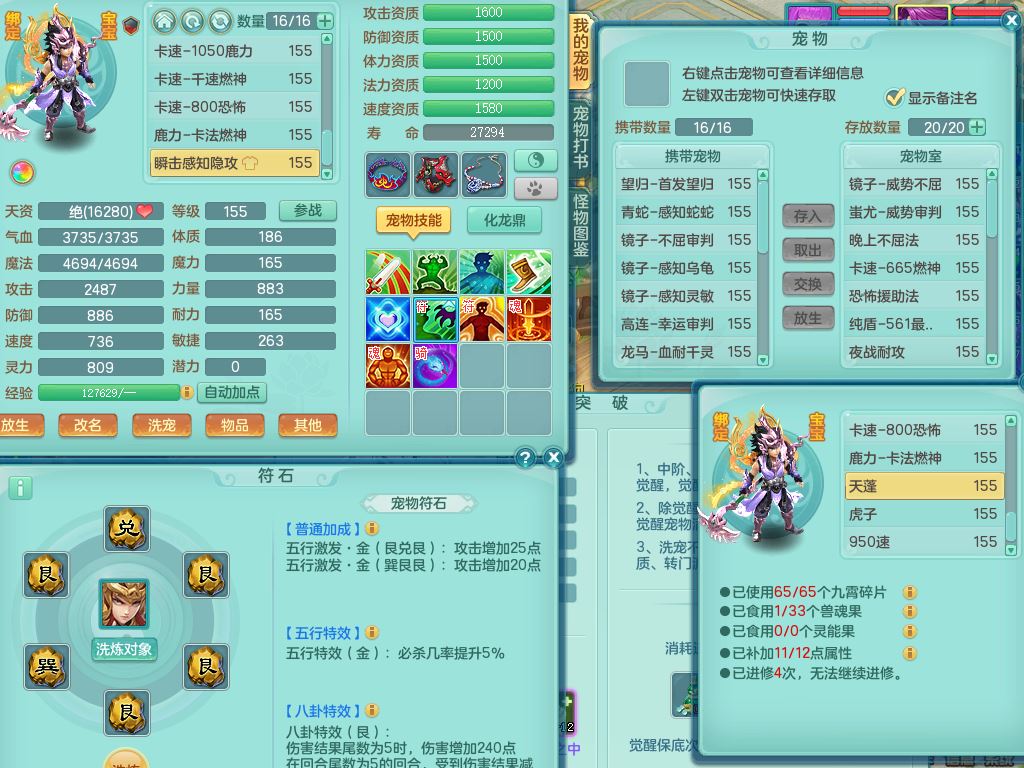 fc9873风驰电掣159男地府【潜龙号+神驹心想事成+暴龙泰坦+暴龙逍客+火焰之力、西瓜冰】精灵歌+舞,8字靓号,2套星穹,8龙(换)2破境2内(青蛇、龙马)6皮1神兽内丹,2特殊(荒古//风卷兽决)4镜花灵,27只满果子12觉醒12个纯6字(1洗练珠),11红愤怒6特,Y野兽头,格挡绝幻衣服,幸运愤怒流云腰带,幸运四海鞋,法系辅助双星辰之拥,单加法爆双红武器,Y法缭笑里鞋,Y回春武器,鼎6.0+70+280,135天月卡,永久外观精灵皮肤,宠排在榜,5坐骑(2只双人)带159女盘丝精灵歌,特殊雷光闪,1觉醒,愤怒6特,5.0鼎