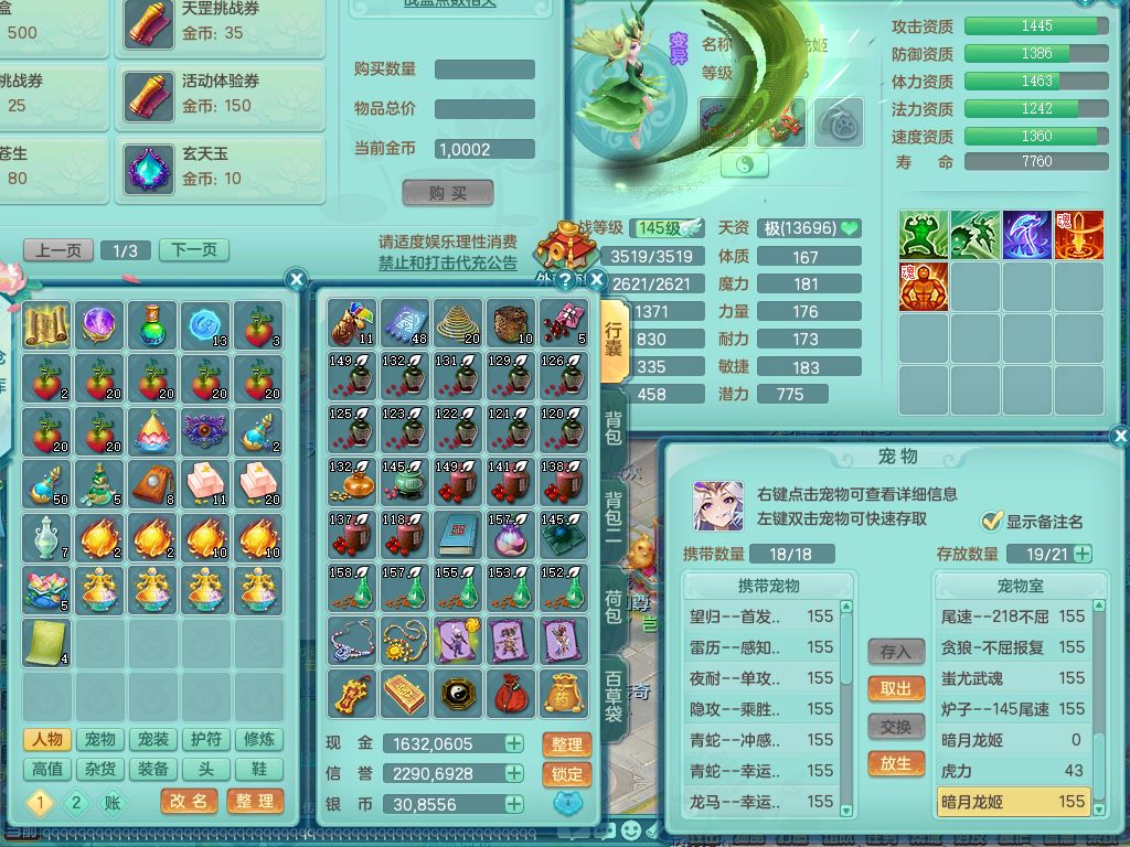 tx9880天下无双159男地府【潜龙号+神驹4坐骑+染色火焰之力】精灵歌,8字靓号,5龙(换)4内(2青蛇2龙马)2破境9皮,6特殊(堕天/雷厉/怒破/双星/灵傀/琴音兽决)5镜花灵,18格子33只满果子19觉醒19个纯6字,13红Y四海头,Y回春守护武器,,格挡慈航衣服,Y罗汉项链,愤怒玉清腰带,Y迟滞鞋,可切星辰之拥,单加迅捷Y3红鞋,仓库单加破甲头,单加法缭衣服,鼎5.5+70+280,3套符石,214天月卡,冰晶庭院158,永久外观精灵皮肤,120多果子,10002金币,宠排在榜,5坐骑(2只双人)