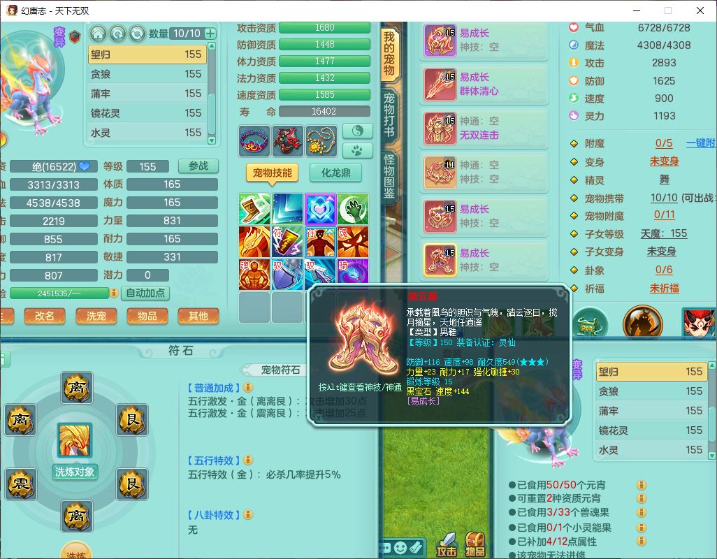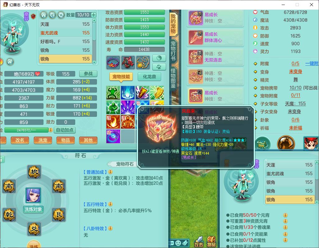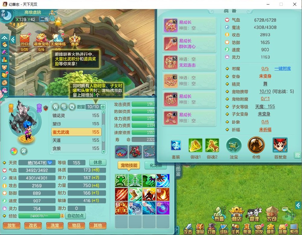 tx9890天下无双159男天策精灵歌,1望归1镜花12只成品满高书宝宝,装备齐全,Y玉清武器,破血衣服,297W神武币,1双人飞行坐骑,带158奶粉女无量,装备宝宝齐全