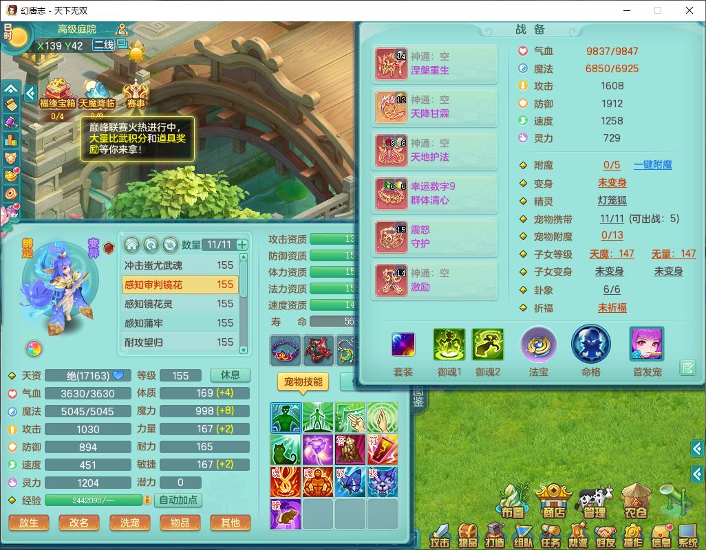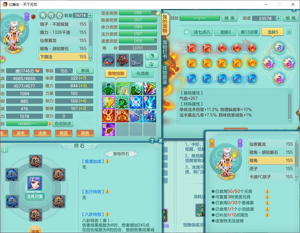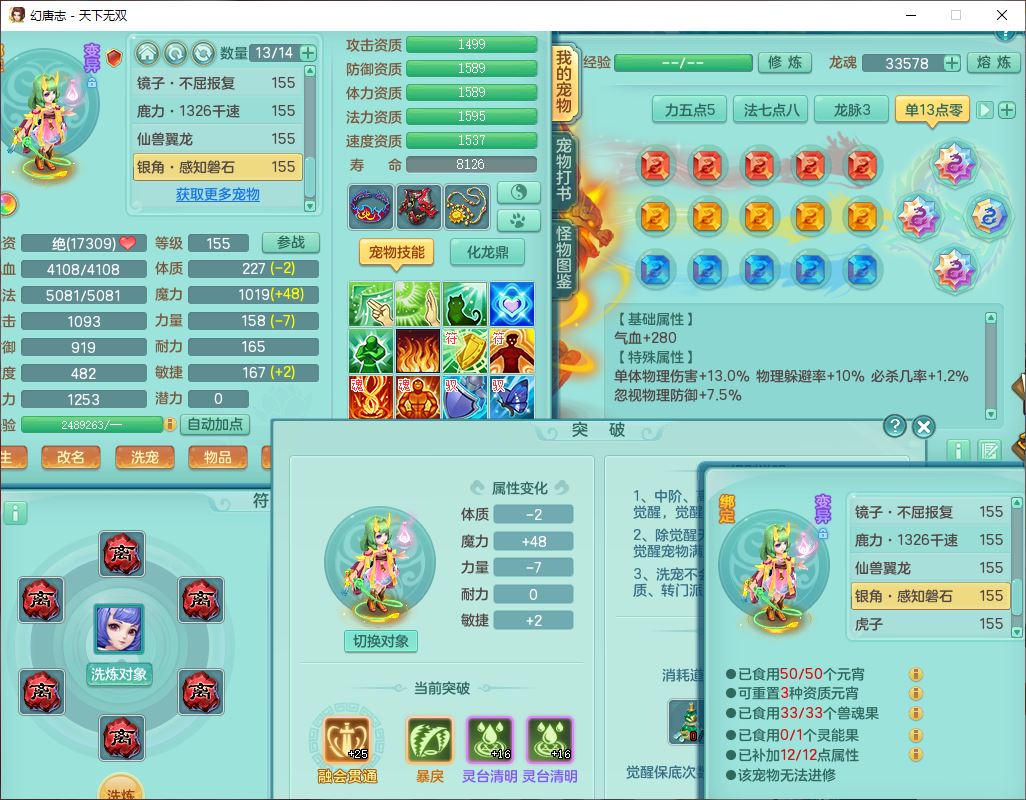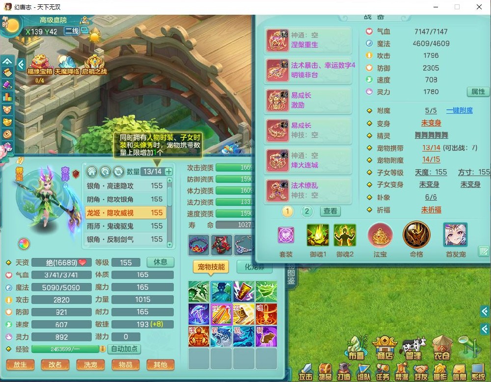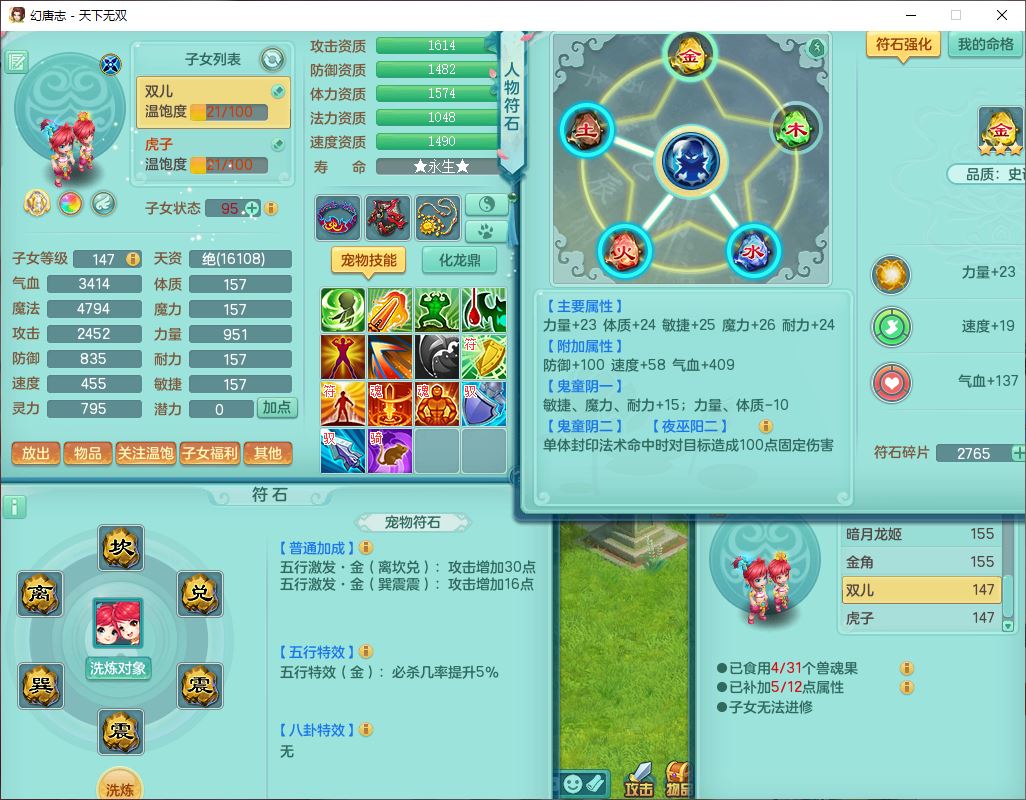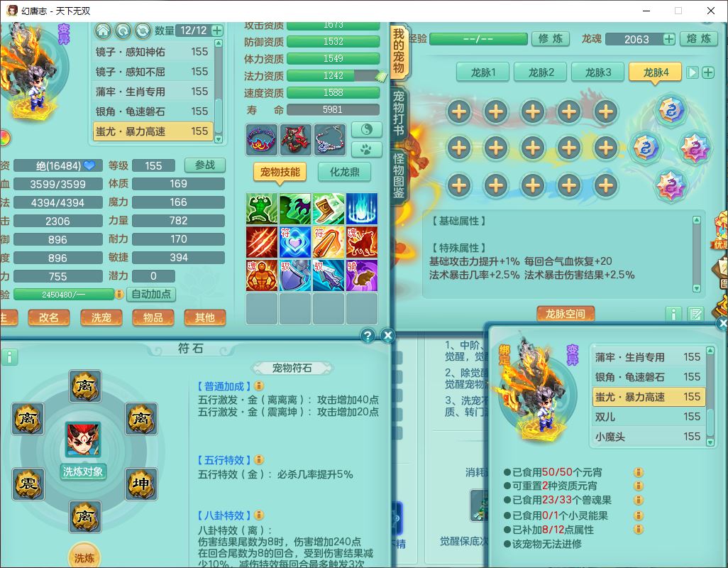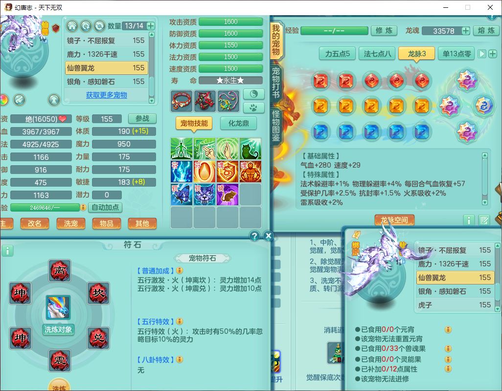 tx9889天下无双159男魔王【准潜龙号,差1只宝宝1条主符石2条附加】精灵舞,1龙(换、无内)1内丹龙马4镜花1特殊兽决(流星),7觉醒7六字4四字9只满果子,9红装备,法爆幸运明镜武器,Y激励衣服,276Y项链,法缭鞋子,Y迟滞腰带,鼎5.5+70+280,庭院151,永久脸饰、精灵皮肤,52个内丹碎片,1双人飞行坐骑;带159女万兽精灵歌,1望归1特殊(影袭)3镜花,1觉醒2五字6四字,装备齐全,Y破血帽子,崩山鞋子,325W神武币;159女盘丝精灵歌,1望归3镜花1特殊兽决(翻江),8红装备,幸运玉清衣服,震怒守护腰带,129W神武币