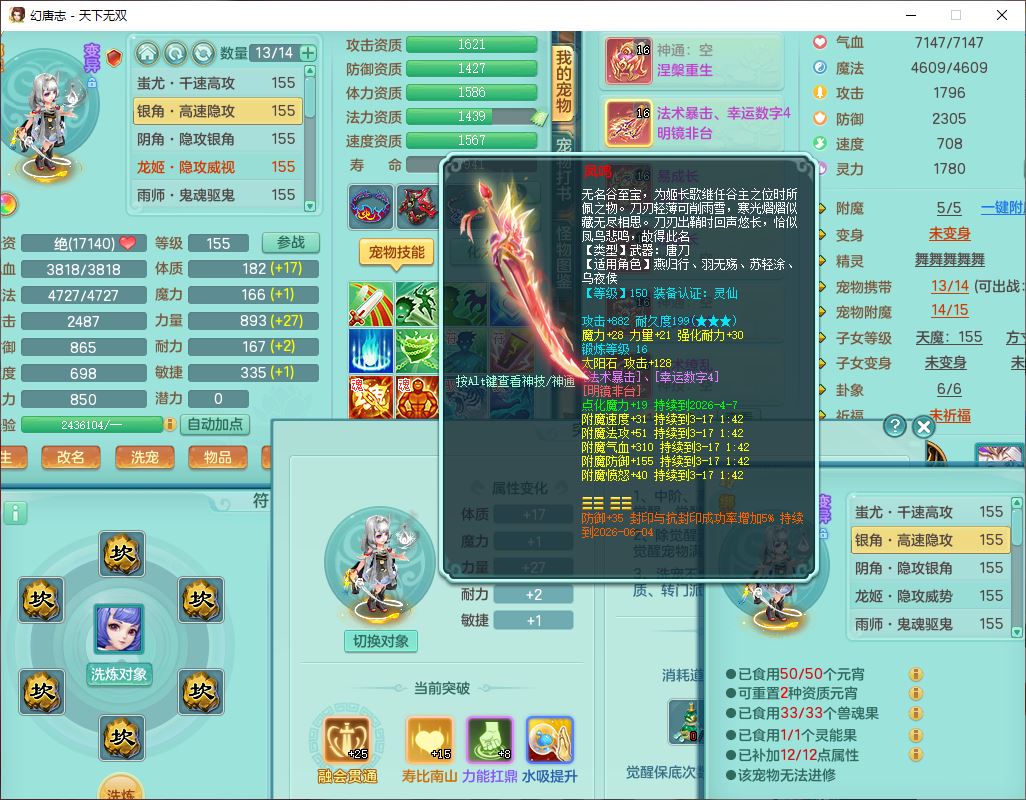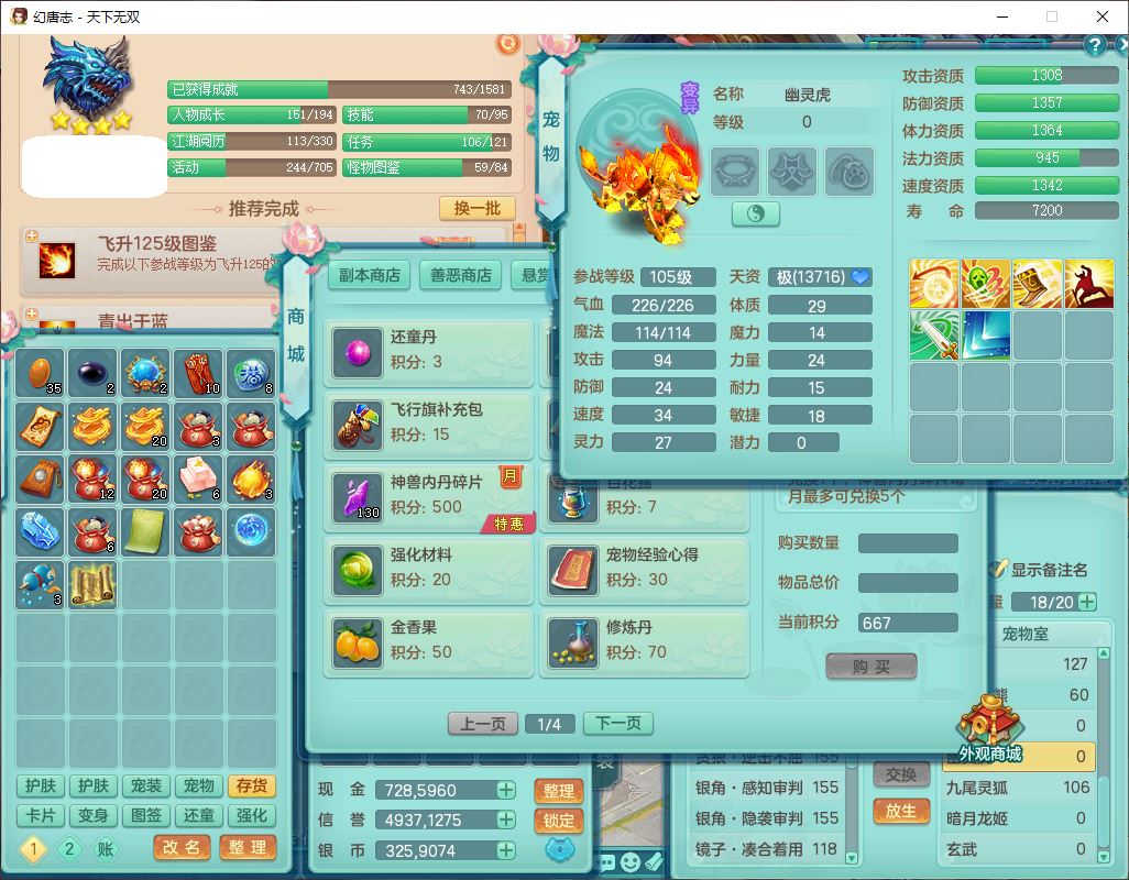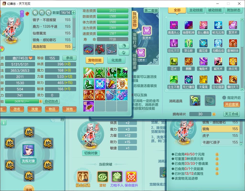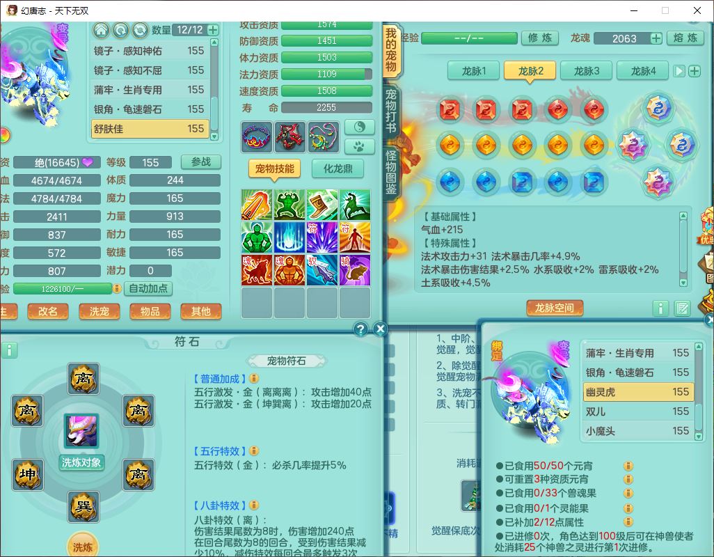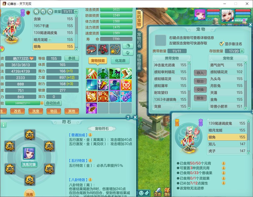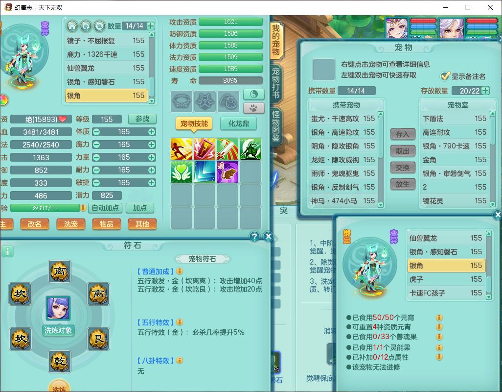 tx9889天下无双159男魔王【准潜龙号,差1只宝宝1条主符石2条附加】精灵舞,1龙(换、无内)1内丹龙马4镜花1特殊兽决(流星),7觉醒7六字4四字9只满果子,9红装备,法爆幸运明镜武器,Y激励衣服,276Y项链,法缭鞋子,Y迟滞腰带,鼎5.5+70+280,庭院151,永久脸饰、精灵皮肤,52个内丹碎片,1双人飞行坐骑;带159女万兽精灵歌,1望归1特殊(影袭)3镜花,1觉醒2五字6四字,装备齐全,Y破血帽子,崩山鞋子,325W神武币;159女盘丝精灵歌,1望归3镜花1特殊兽决(翻江),8红装备,幸运玉清衣服,震怒守护腰带,129W神武币