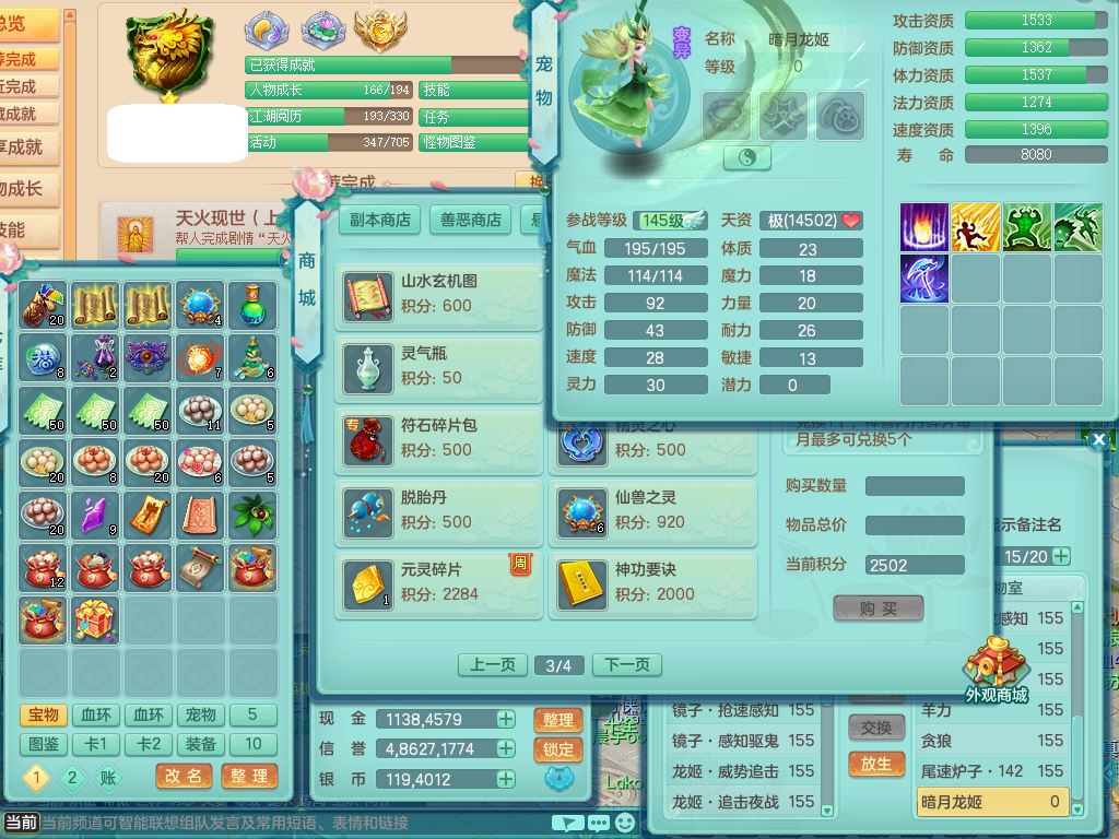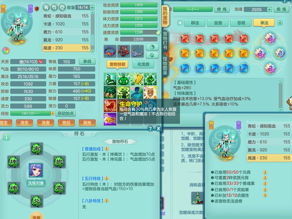 sr9888生日快乐159男普陀【潜龙号+暴龙洪荒】精灵悟+舞,1龙(换)2内(1青蛇)4特殊(灵傀/守护/兽决烈焰/雷厉)5镜花灵2龙姬,16只满果子9觉醒7个纯6字,9红愤怒6特,Y四海衣服,愤怒驭兽腰带,Y绝幻鞋,鼎6.0+70+280,21天月卡,庭院154房屋154,永久外观精灵皮肤,2只双人坐骑,带158女天策,904Y狂暴3红武器,单加愤怒双红腰带,单加以战鞋,双人坐骑
