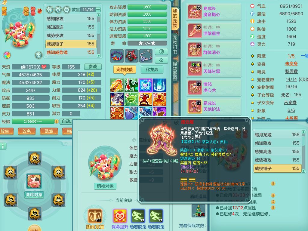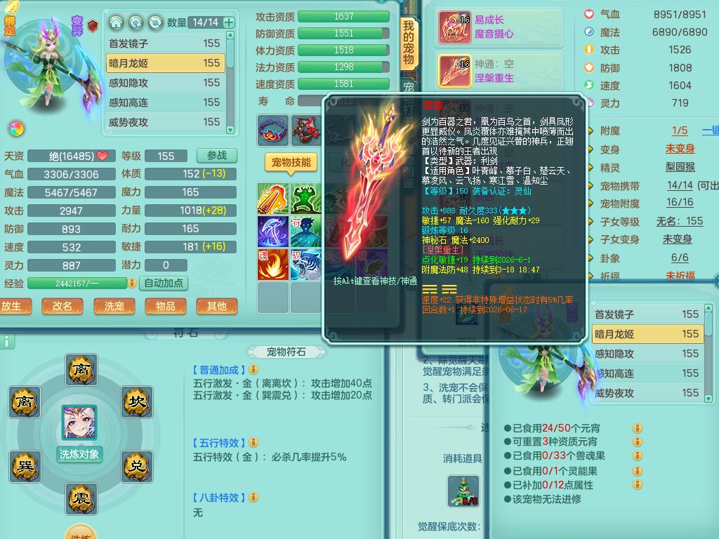 tx9897天下无双159男方寸【潜龙号】精灵舞,4龙1仙兽内丹1内1破境1皮,5特殊(号角/守护/飞花/兽决守护/飞花)13只满果子9觉醒7个纯6字,全身高单加,9红愤怒6特,Y绝幻头,愤怒双红腰带,Y罗汉鞋,鼎5.5+70+280,永久头饰精灵皮肤,71仙兽灵,41内丹碎片,宠排在榜,双人坐骑