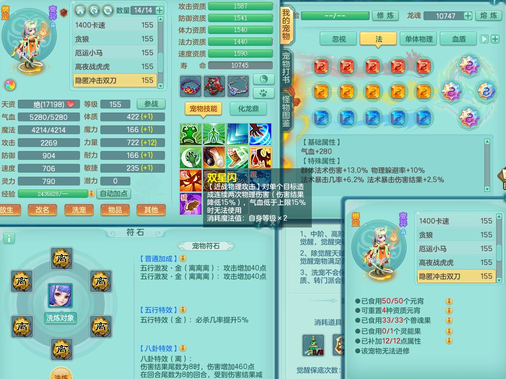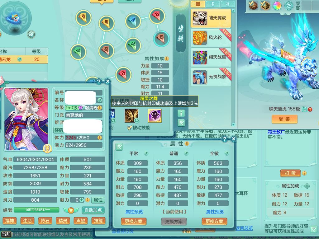 zw9893战无不胜159女地府精灵舞,满级共鸣,1龙(换,无内)3内(1龙马)3特殊(虎虎/双星/藕断兽决)3镜花灵1龙姬,18只满果子4觉醒6个5字(1洗练珠)1个6字,7红愤怒6特,愤怒水清腰带,鼎4.5+70+280,60天月卡,房屋151,永久外观精灵皮肤,29内丹碎片,宠排在榜,飞行双人坐骑