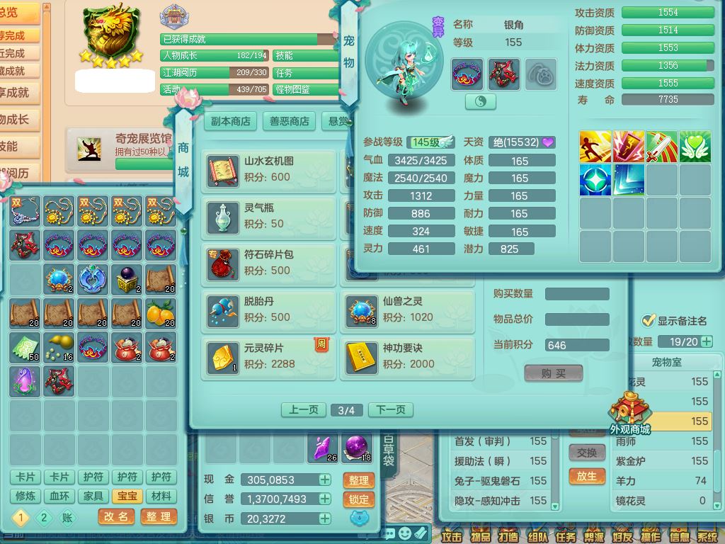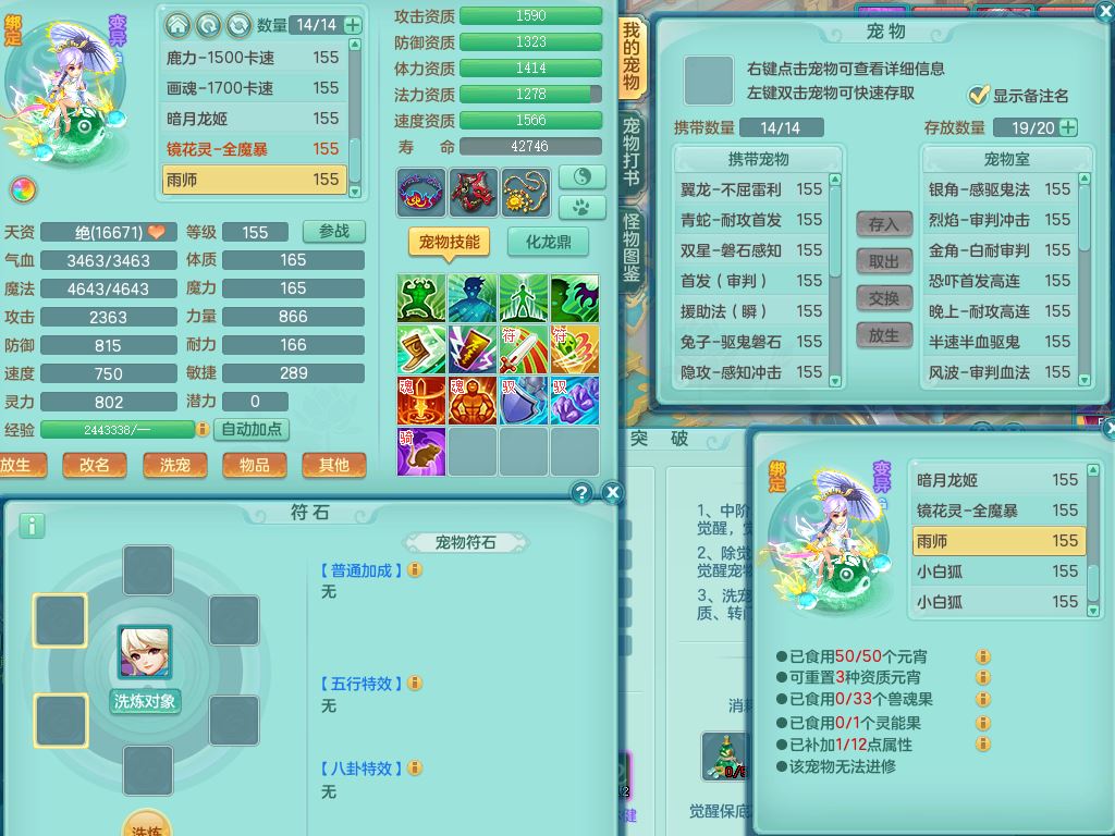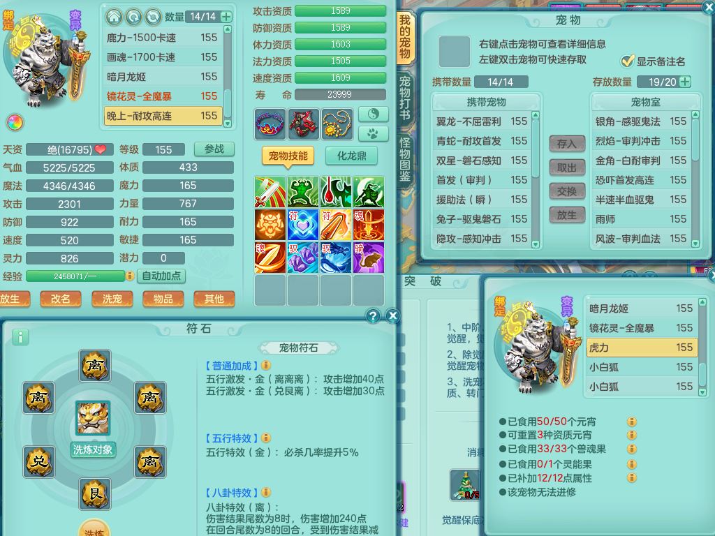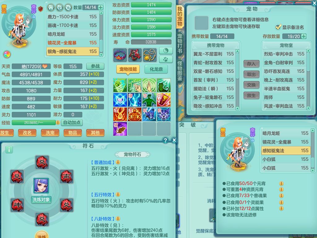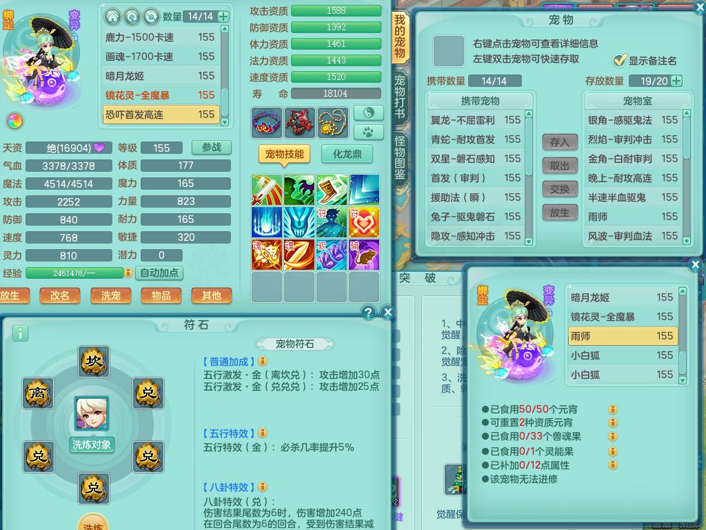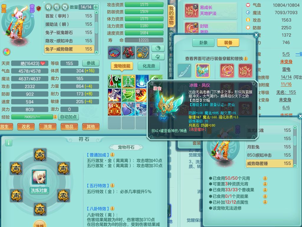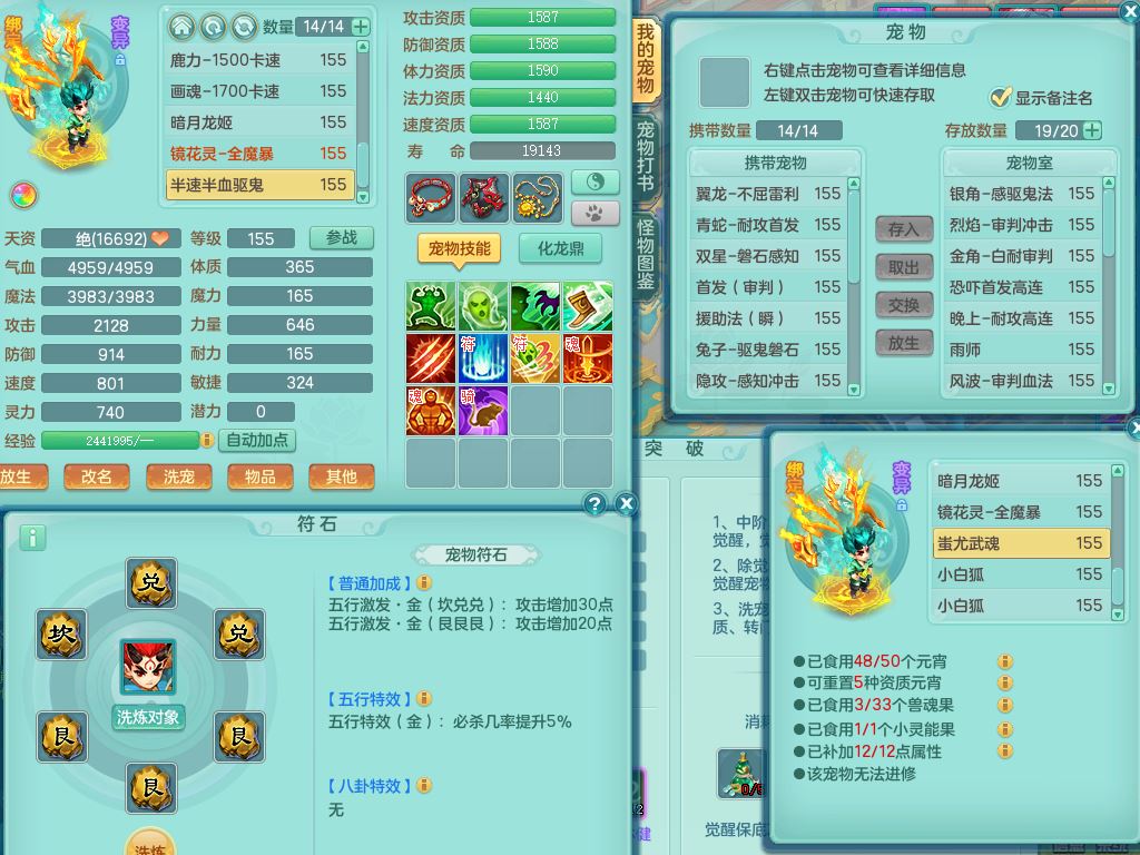 xa9903笑傲江湖159女方寸精灵舞,满级共鸣,1龙(换)1内丹青蛇,3特殊(双星/烈焰/流星兽决)1镜花灵1龙姬,13只满果子6觉醒,9个4字6个5字2个6字,10红愤怒5特,Y罗汉头,封锁野兽武器,Y玉清衣服,Y慈航鞋,物理930Y双红武器,单加崩山衣服,神佑项链,鼎5.5+70+280,3套符石,26内丹碎片,逐星坐骑