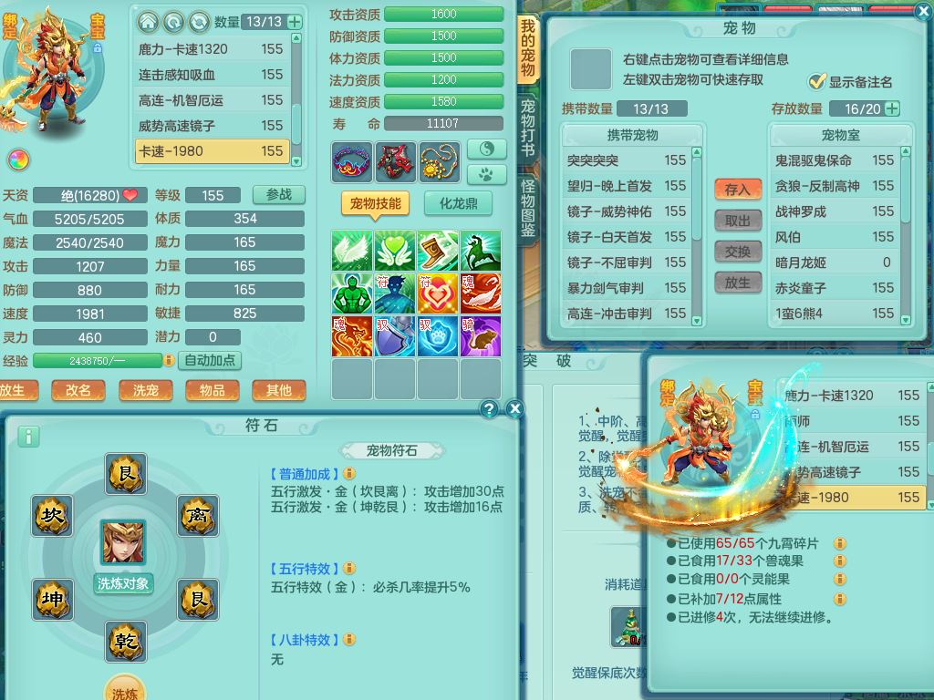 cy9909彩云追月159三开号,盘丝精灵舞,2内丹神4特殊(飞花/兽决剑胆/青霜/琴音)2镜花灵,8红,愤怒笑里腰带,单加迅捷Y鞋,9只满果子5觉醒3个纯6字,鼎5.5,3套符石,永久头饰精灵皮肤,66仙兽灵,2坐骑(1双人)万兽精灵歌,1内2特殊(灵傀/号角)4镜花灵,7只满果子6觉醒3个纯6字,923单加狂暴四海武器,崩山衣服,鼎6.0+70,22仙兽灵24内丹碎片,1433金币,飞行烛龙坐骑,灵月精灵歌,1神兽内丹,3特殊(善恶/上善/烈焰兽决)2镜花灵1龙姬,综合8只满果子6觉醒6个纯6字,愤怒5特,物理916单加狂暴武器,崩山衣服,单加愤怒破血腰带,鼎5.0+70,2306金币,双人坐骑