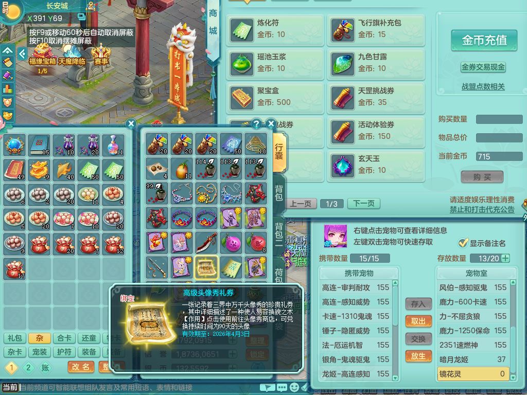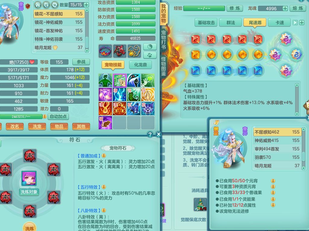 jn9914今年勇159男万兽【神驹马到成功+火焰之力】精灵舞,4字靓号,3龙(换,无内)2内(1龙马)1皮2特殊(羽袭/雷光)3镜花灵3龙姬,综合20只满果子3觉醒5个纯6字,10红915单加Y必杀武器,Y流云头,崩山衣服,单加神佑水清项链,Y四海鞋,法系275单加Y项链,鼎5.5+70,160天月卡,冰晶庭院182,永久外观精灵皮肤,24内丹碎片,宠排在榜,6坐骑(3只双人)