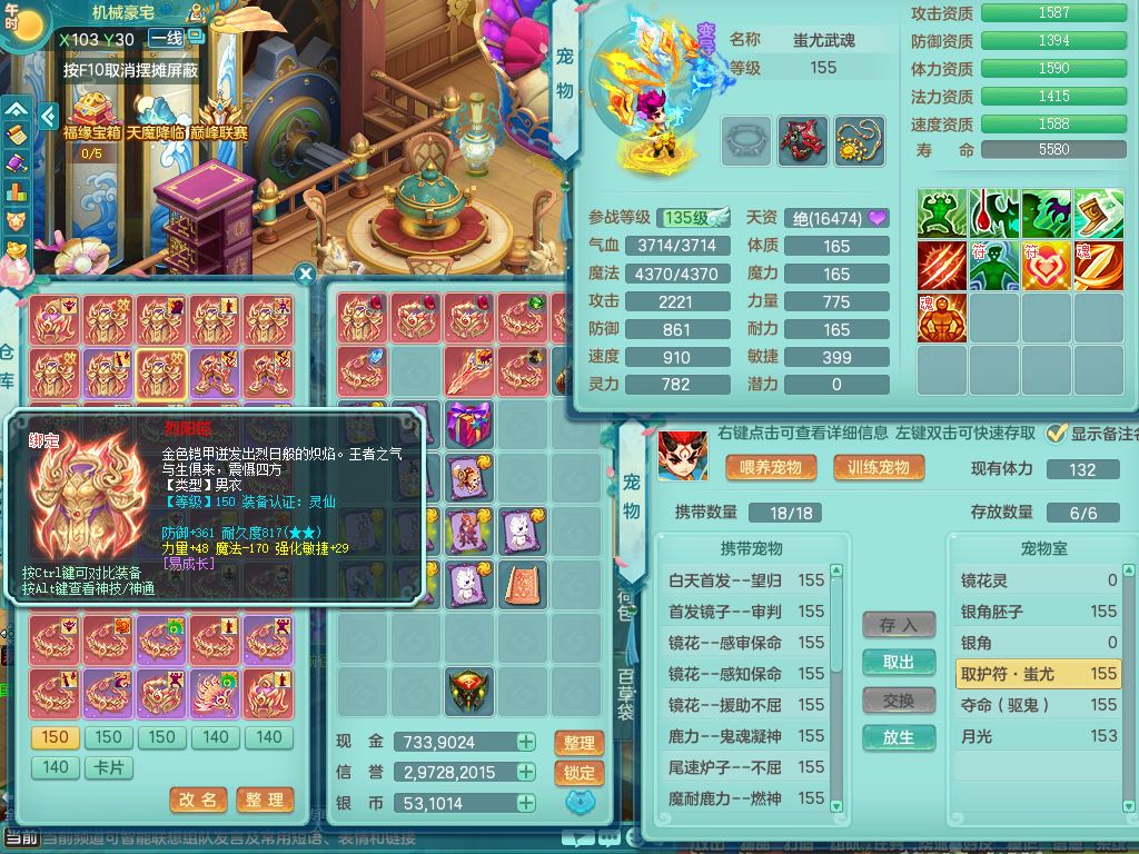 tx9919天下无双159男天策【潜龙号+6龙皮+神驹心想事成+暴龙泰坦+火焰之力、西瓜冰】精灵歌+舞,4字靓号,11龙(换)6龙皮2内2破境15宠皮(1幻灵果)7特殊(破碎/虎虎/雷厉/藕断/双星/夺命/以战兽决)4镜花灵2龙姬,18格子39只满果子26觉醒23个纯6字,10红,满攻单加狂暴武器,Y四海头,格挡崩山衣服,Y破血腰带,Y破甲鞋,辅助愤怒6特,鼎5.5+70+280,2套符石,冰晶庭院168,房屋165,永久外观精灵皮肤,120果子,66内丹碎片,1178金币,宠排在榜,10坐骑(5只双人)带多永久称谓