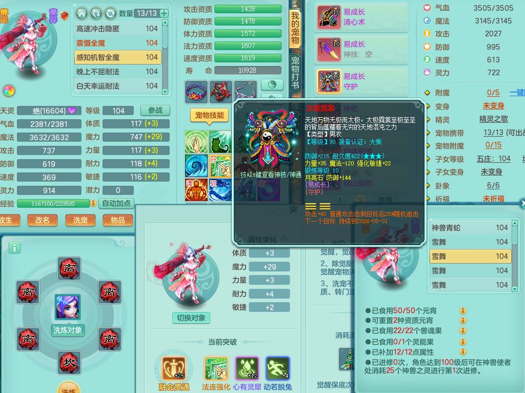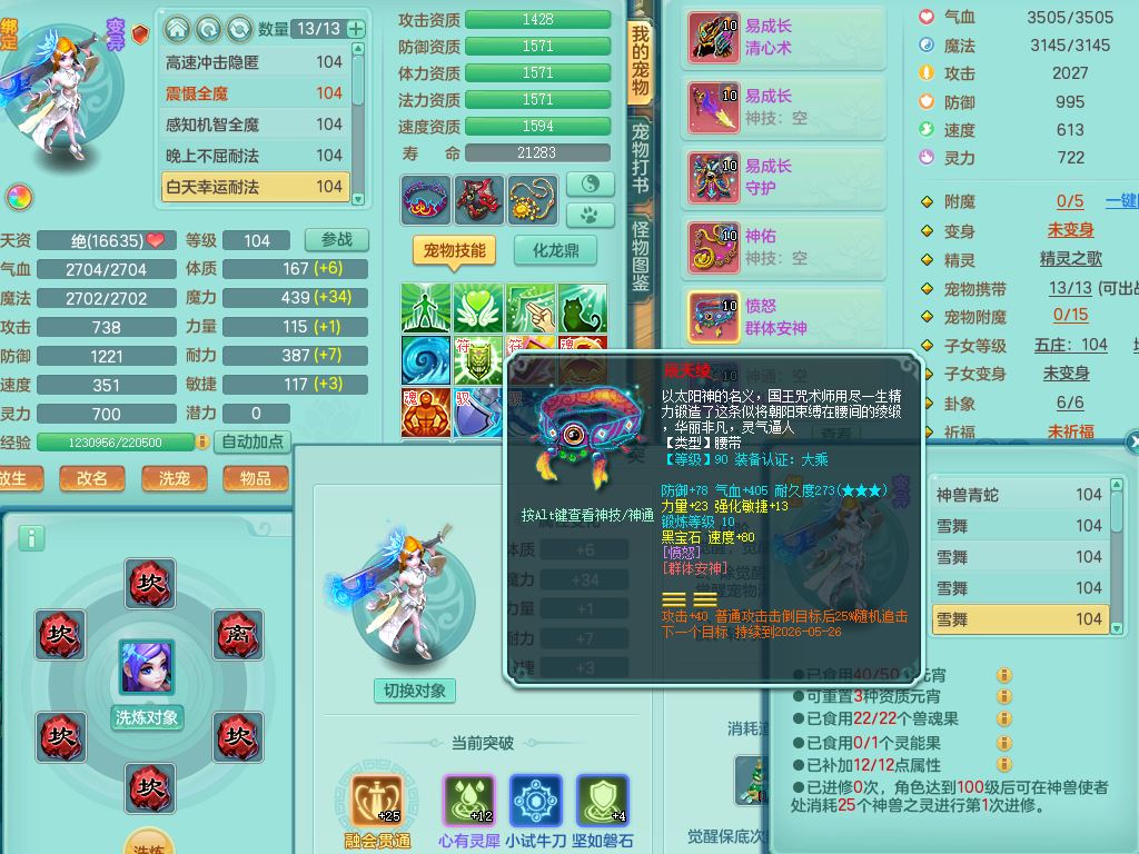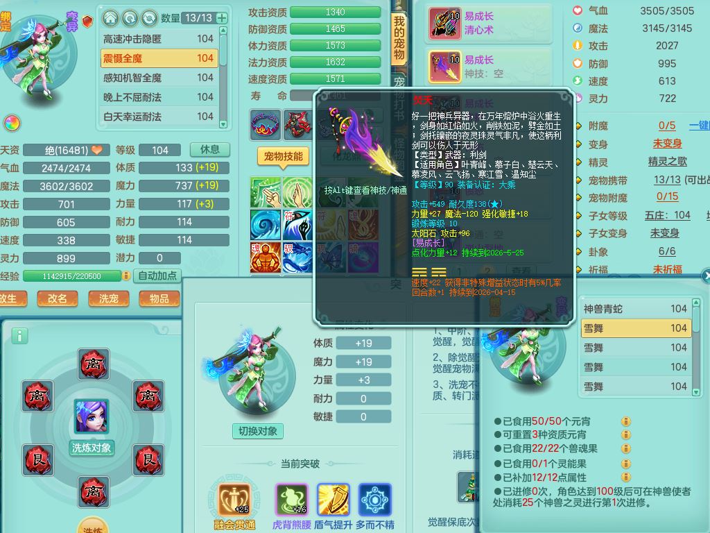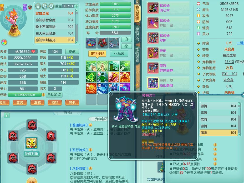 tx9923天下无双99男天策全力精灵,1内丹青蛇,9只满果子7觉醒2个5字2个6字,9红,549单加Y武器,单加Y水清头,Y守护衣服,愤怒群体安神腰带,崩山鞋,鼎2.5,50内丹碎片