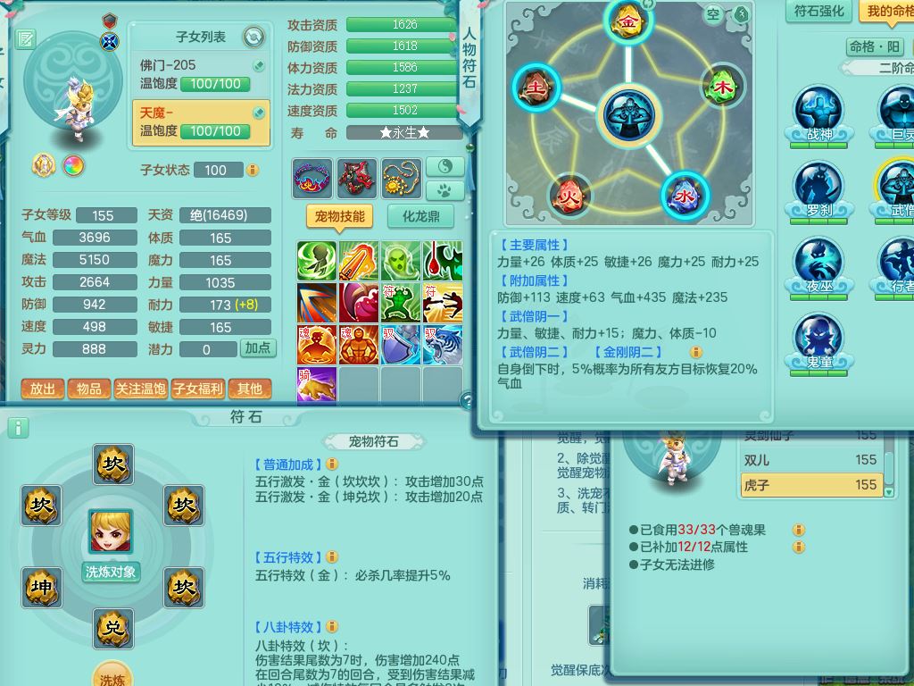 ym9932扬名立万159男普陀【潜龙差(1个6字,两个石头,5.5,主属性差3个,小属性差1个)】精灵舞,1蛇内1红心六技能龙姬4六技能镜花灵1特殊(羽袭),9觉醒1宠皮7六字1五字综合11只满果子,愤怒五特装备,鼎4.5,2套符石,56天月卡,庭院165房屋164,56仙兽灵,34内丹碎片,成就,宠物排行,月夜幽狐坐骑。带两个成品日常号,156女五庄,1六技能镜花灵;159女魔王,精灵歌,1觉醒,1六技能镜花灵