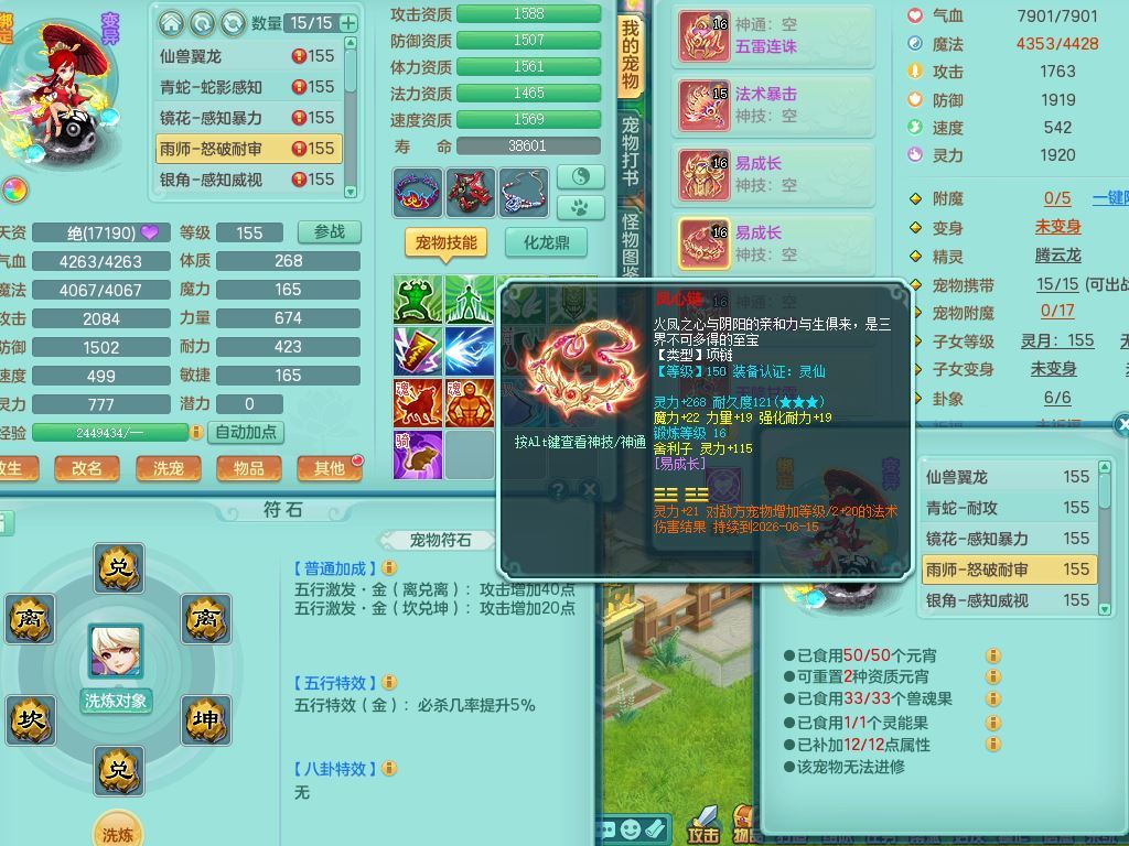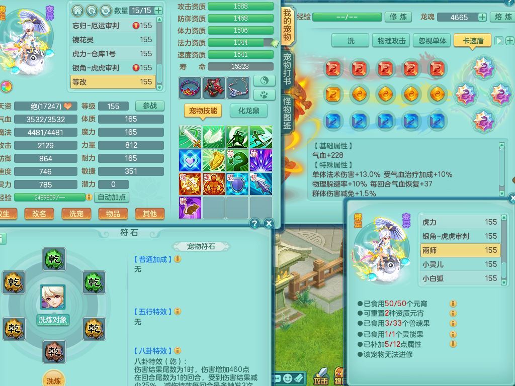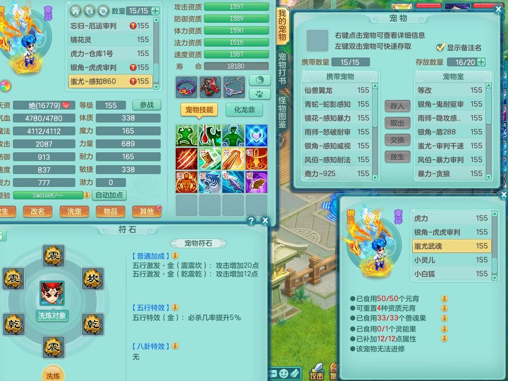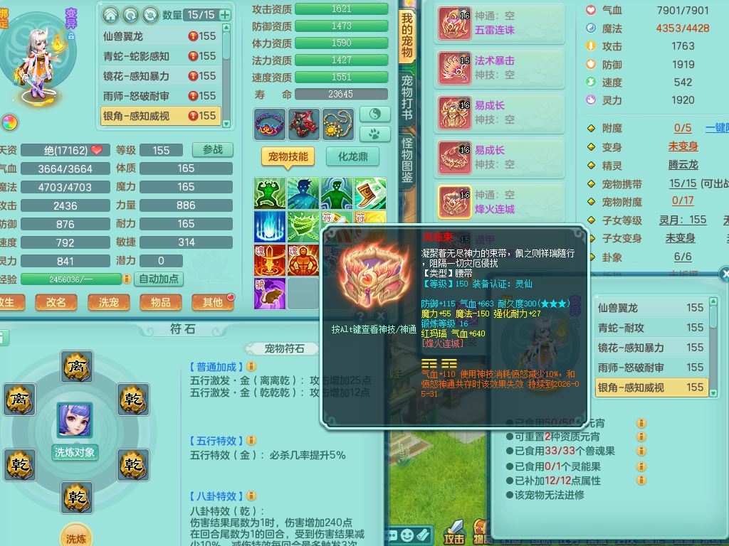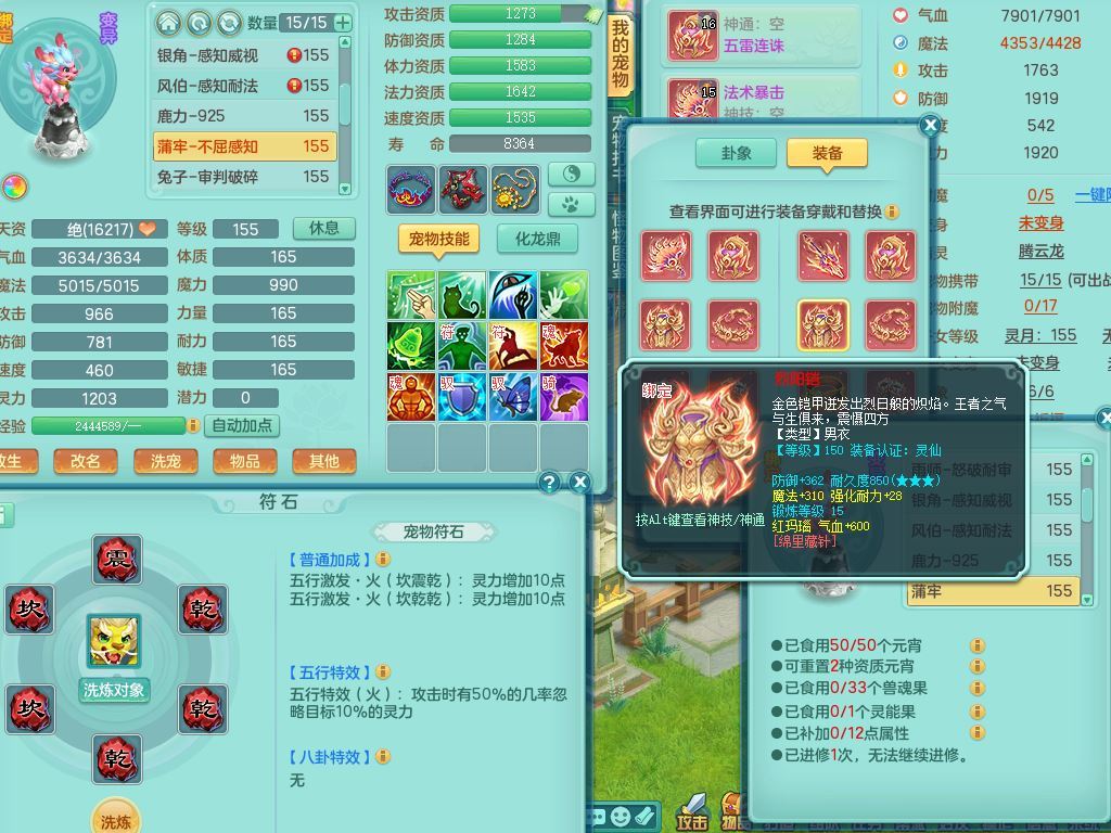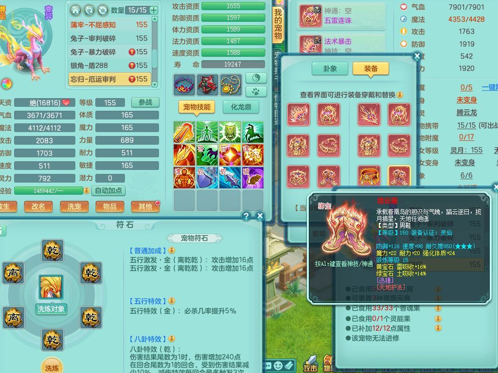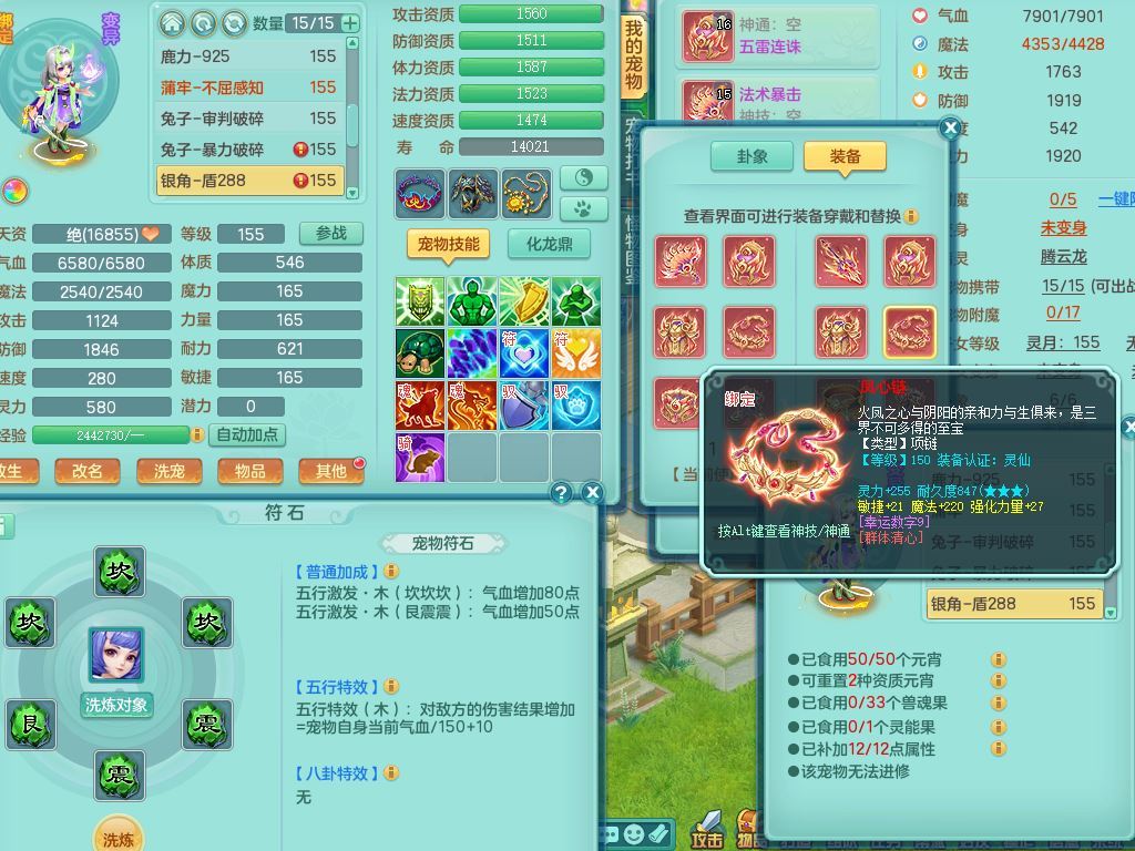 jt9934九天揽月159男龙宫精灵歌,满级共鸣,1龙(换,无内)1内丹青蛇(破镜)3特殊(怒破/藕断/虎虎)11只满果子10个4字,单加法爆武器,五雷头,单加Y衣服,268Y项链,封系封锁武器,单加愤怒慈航腰带,封印头,迅捷罗汉鞋,鼎4.0,2套符石,23天月卡,永久头饰精灵皮肤