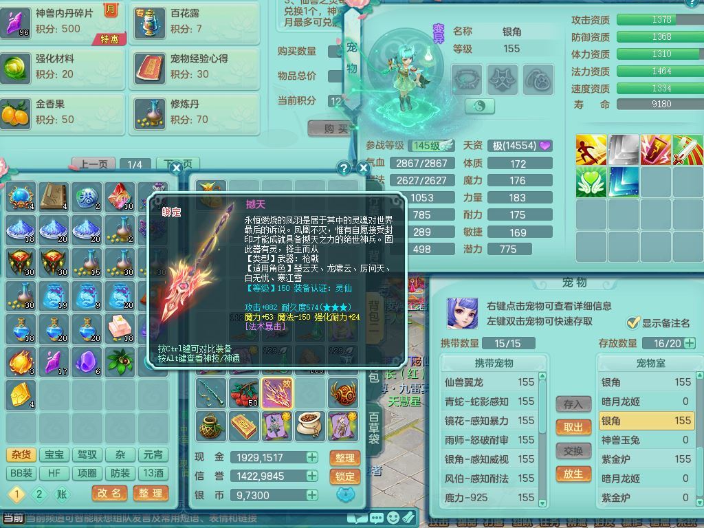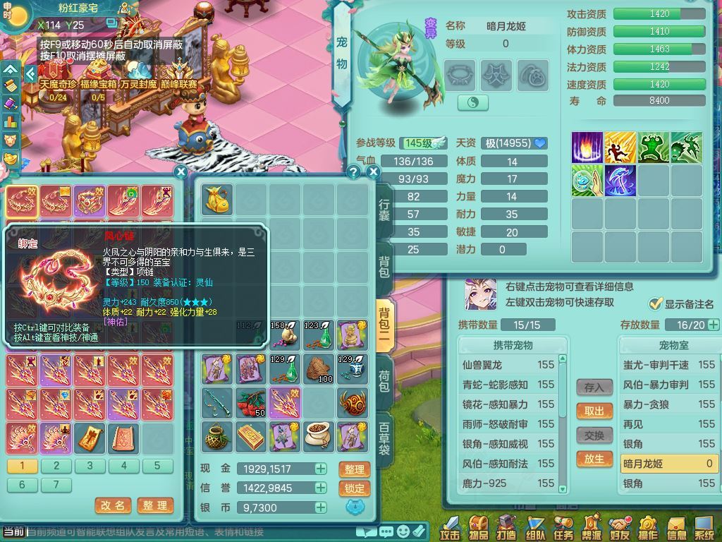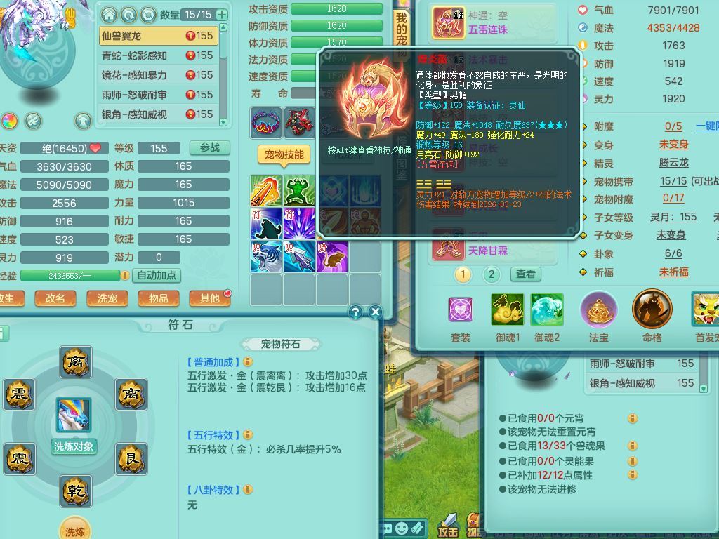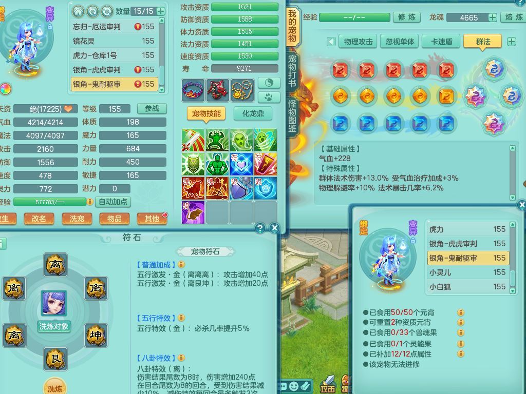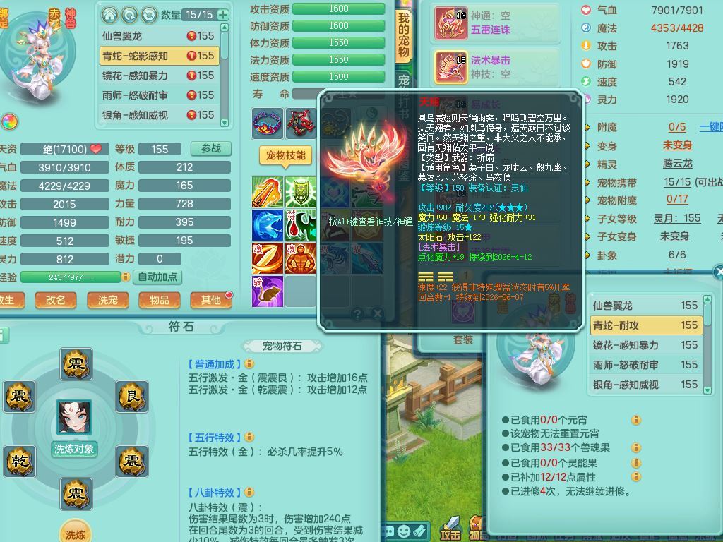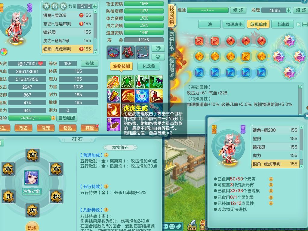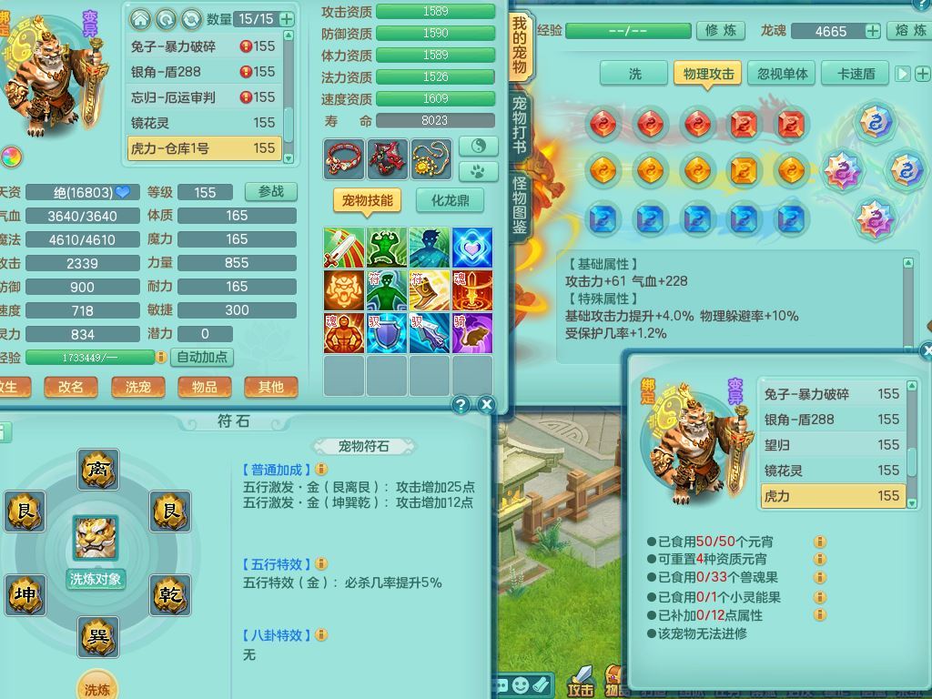 jt9934九天揽月159男龙宫精灵歌,满级共鸣,1龙(换,无内)1内丹青蛇(破镜)3特殊(怒破/藕断/虎虎)11只满果子10个4字,单加法爆武器,五雷头,单加Y衣服,268Y项链,封系封锁武器,单加愤怒慈航腰带,封印头,迅捷罗汉鞋,鼎4.0,2套符石,23天月卡,永久头饰精灵皮肤