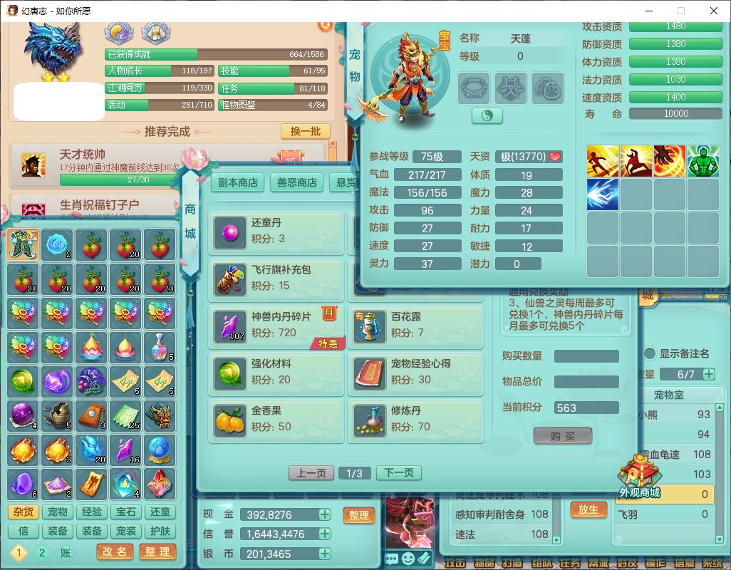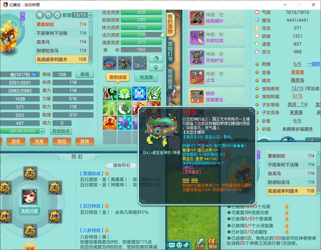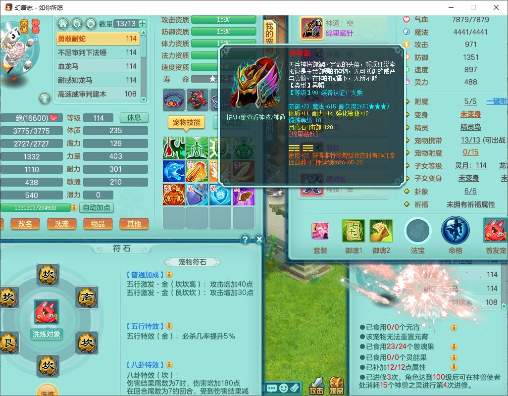 rn9947如你所愿109男方寸【心想事成+暴龙泰坦+火焰之力+西瓜冰+流光翎】20级小精灵,8位靓号,4神兽(2无内,2龙马1蛇影)1建木2翻江1舍身2金炉1童子,2孩子(灵月+龙宫),7红装备,愤怒慈航腰带,157天月卡,永久外观、精灵皮肤,201W神武币,16个内丹碎片,129个兽魂果,7个幻彩花1大灵能果,1375金币,宠排在榜,1星梦鲲灵坐骑,邮箱可给战盟可换