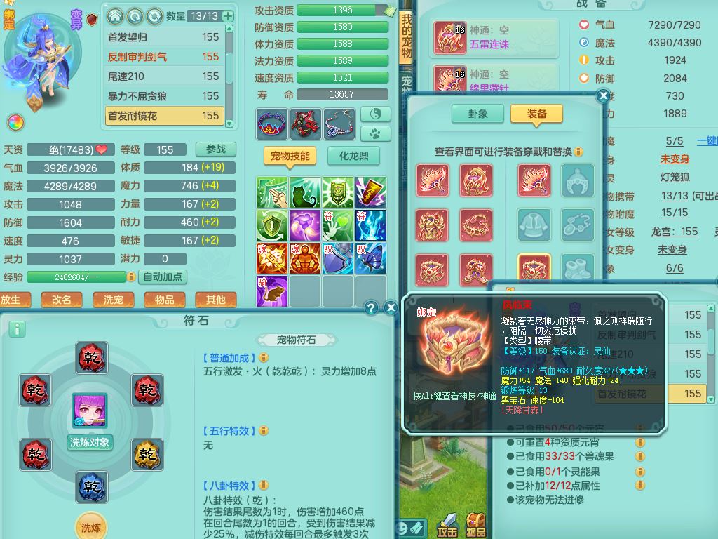 tx9929天下无双159男魔王精灵盾,满级共鸣,1内丹神,2镜花灵(1胚子)1龙姬,6只满果子6个4字1个5字,单加五雷头,单加Y衣服,满灵Y项链,单加Y双红腰带,鼎4.5+70,145天月卡,29内丹碎片