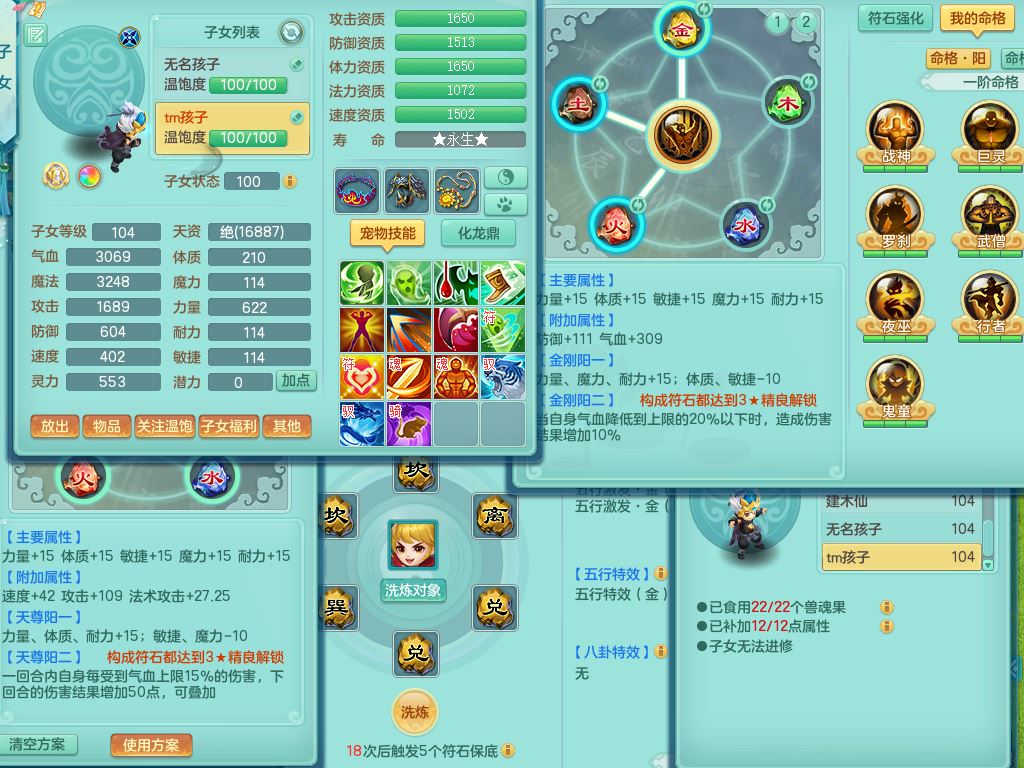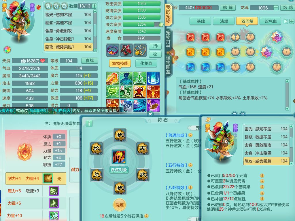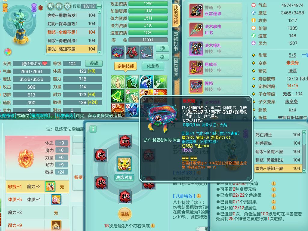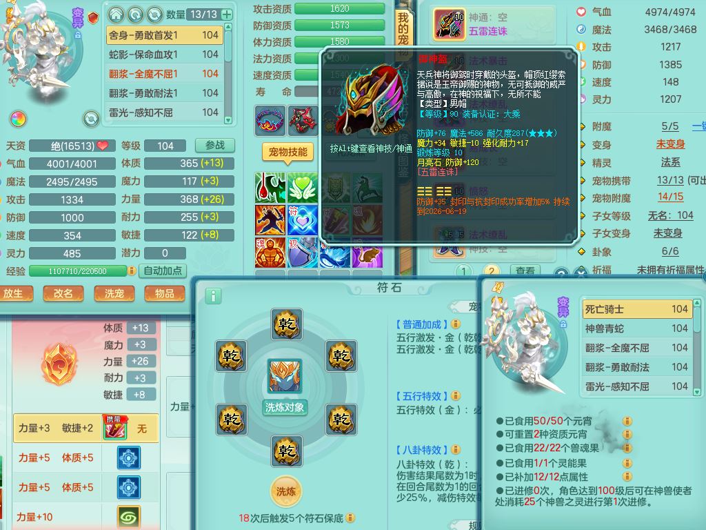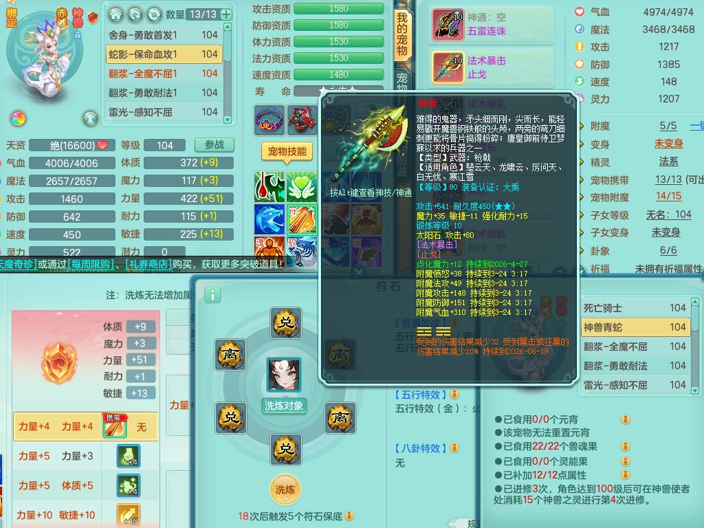 jn9972今年勇99男龙宫【武器皮肤西瓜冰】双系精灵,8字靓号,1内丹青蛇1皮,17只满果子8觉醒3个纯6字,双法缭,单加五雷头,单加法爆止戈武器,163单加Y项链,物理星辰之拥,单加破甲破血鞋,破甲头,Y必杀武器,鼎2.5+42+168,3套符石,92天月卡,永久外观精灵皮肤,炎宝坐骑