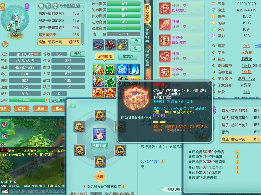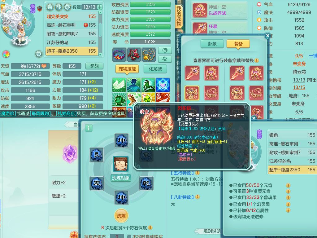 cf9976超凡入圣159男方寸精灵舞,满级共鸣,1内丹神3皮,4特殊(勇猛/墨守/破碎/虎虎)8只满果子3觉醒6个4字3个5字,915单加狂暴武器,单加以战头,单加迅捷鞋,封辅愤怒6特,鼎5.5,68仙兽之灵,飞行双人坐骑