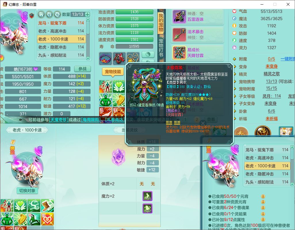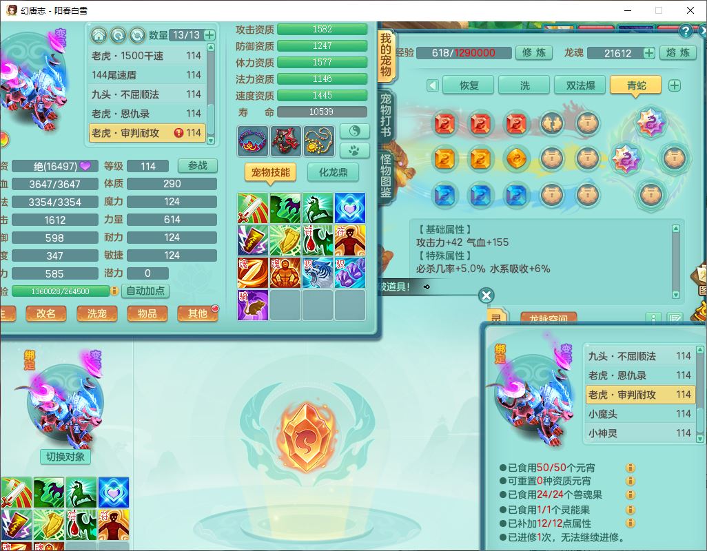 yc9988阳春白雪109男龙宫精灵歌,8位靓号,2内(1龙马1青蛇)3九头8老虎1羽袭1金炉1飞羽胚子,综合11只满果子,9红装备,五雷帽子,法爆武器,Y四海衣服,172Y慈航项链,幸运烽火腰带,法缭鞋子,有辅助装,愤怒明镜腰带,鼎2.5+42,2套符石,26个仙兽灵,34个内丹碎片,1双人飞行坐骑