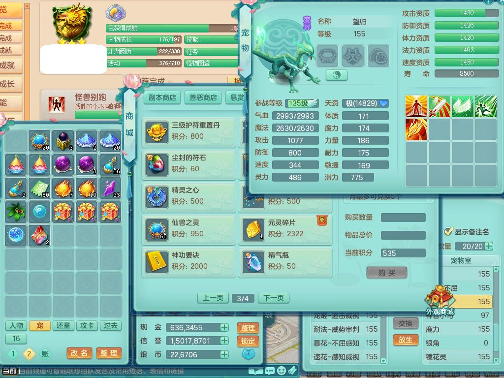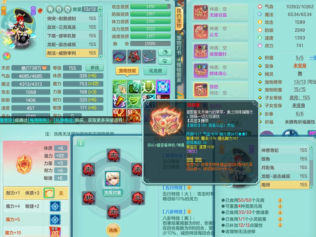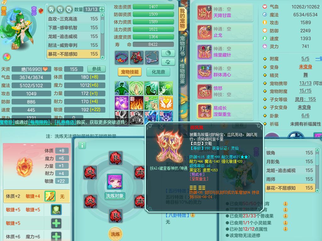 zz9990壮志凌云159女方寸精灵舞,满级共鸣,1内丹青蛇1皮,综合9只满果子7觉醒4个纯6字,3镜花灵1龙姬,全身单加,愤怒5特,Y慈航鞋,鼎4.5+70,19天月卡,20仙兽灵,33内丹碎片,飞行双人坐骑,带159万兽精灵舞,满级共鸣,鼎5.0,3特殊(舍身/流星/雷厉)5只满果子5觉醒
