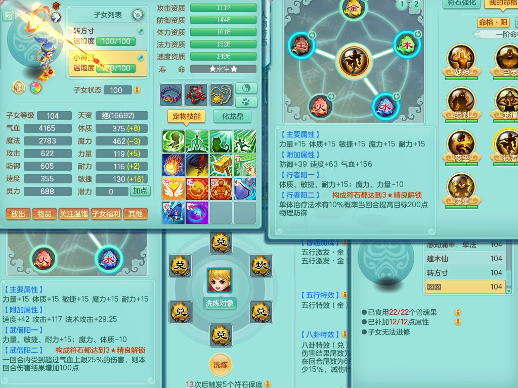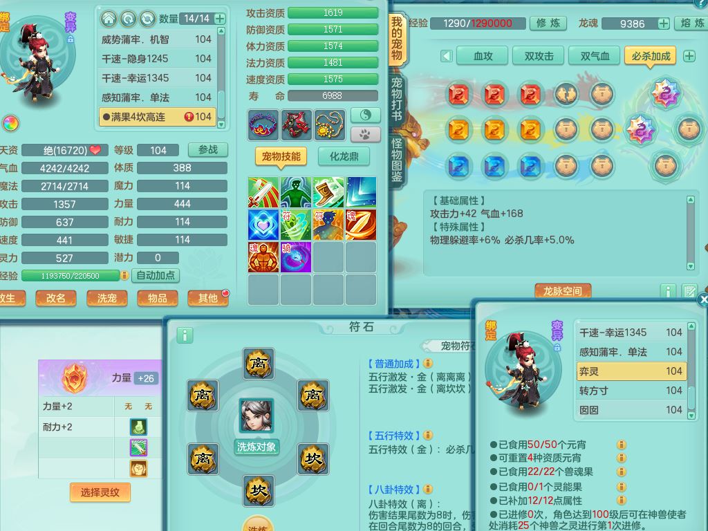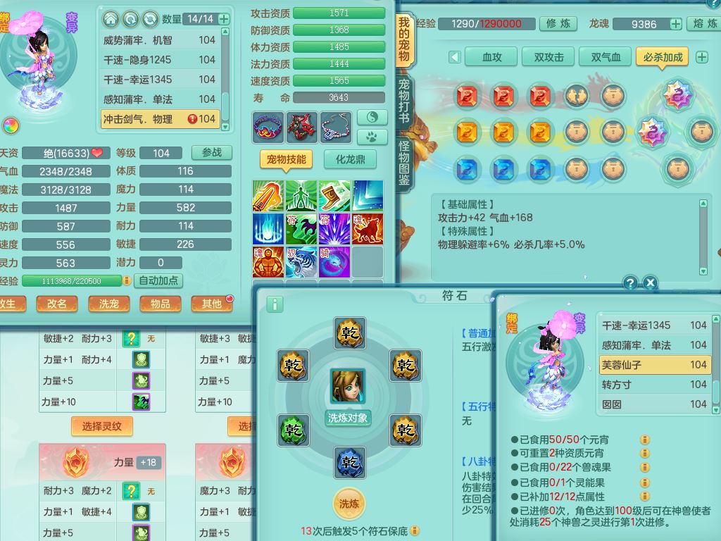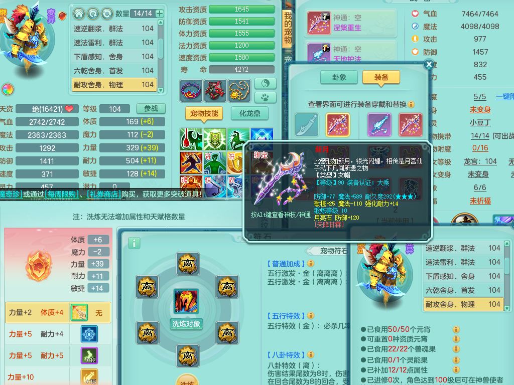 tx10010天下无双99女灵月【潜龙号+西瓜冰】双系精灵,1龙(换)1内1破境1皮,19只满果子13觉醒9个纯6字,8红愤怒5特,强壮双红衣服,单加Y玉清鞋,鼎2.5+42+168,2套符石,157天月卡,庭院187,永久外观精灵皮肤,37内丹碎片,宠排在榜,飞行双人坐骑