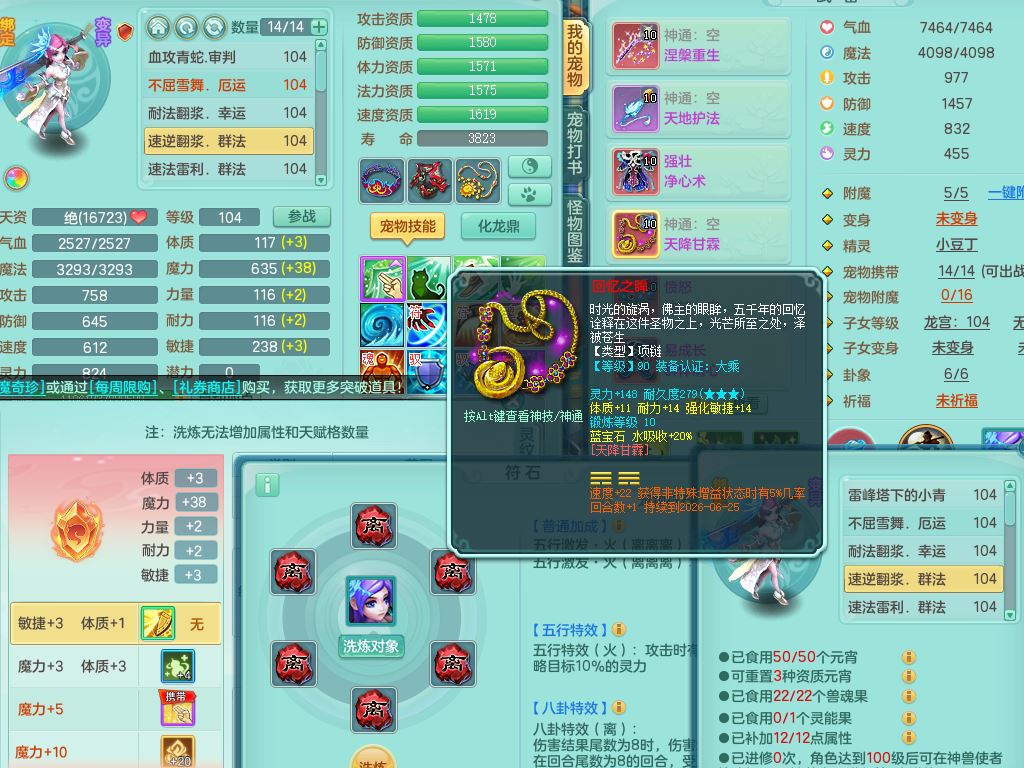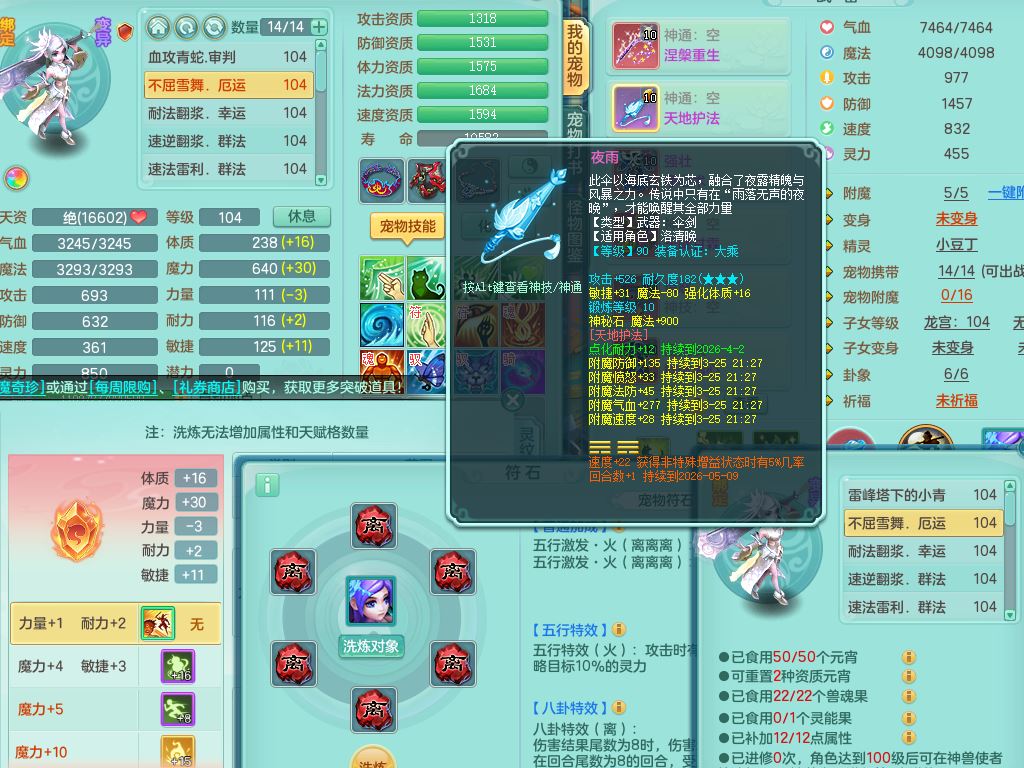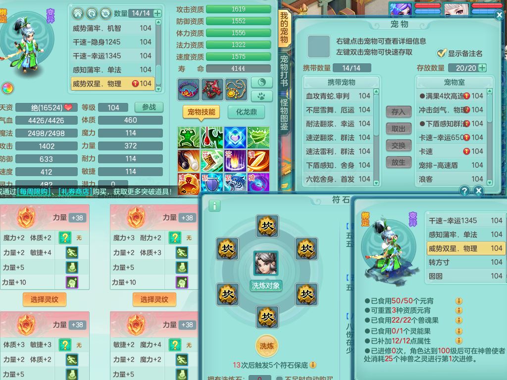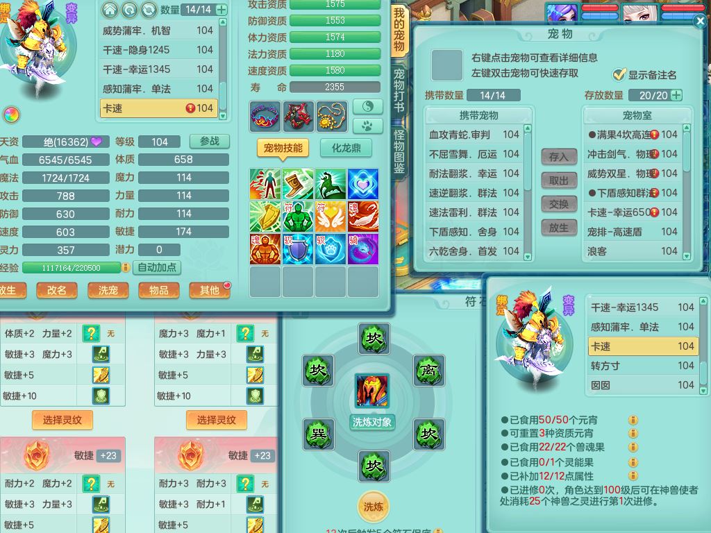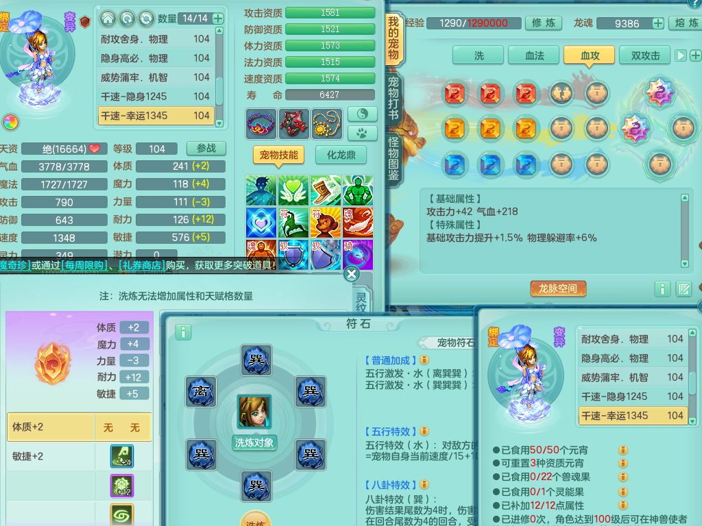 tx10010天下无双99女灵月【潜龙号+西瓜冰】双系精灵,1龙(换)1内1破境1皮,19只满果子13觉醒9个纯6字,8红愤怒5特,强壮双红衣服,单加Y玉清鞋,鼎2.5+42+168,2套符石,157天月卡,庭院187,永久外观精灵皮肤,37内丹碎片,宠排在榜,飞行双人坐骑