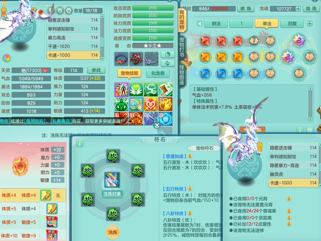 jn10017今年勇109男龙宫【潜龙号+神驹马到成功+暴龙泰坦+火焰之力、西瓜冰】精灵歌+怒,4字靓号,2套星穹,5龙(换)3内(1龙马1青蛇)6破境5皮(1幻灵果)18格子24只满果子13觉醒8个纯6字,12红星辰之拥,全身单加,法爆Y笑里武器,法缭守护衣服,满灵Y神佑3红项链,愤怒Y腰带,五雷鞋,鼎2.5+42+168,2套符石,123天月卡,庭院171房屋166,永久外观精灵皮肤,47内丹碎片,5443金币,宠排在榜,9坐骑(6只双人)带永久称谓